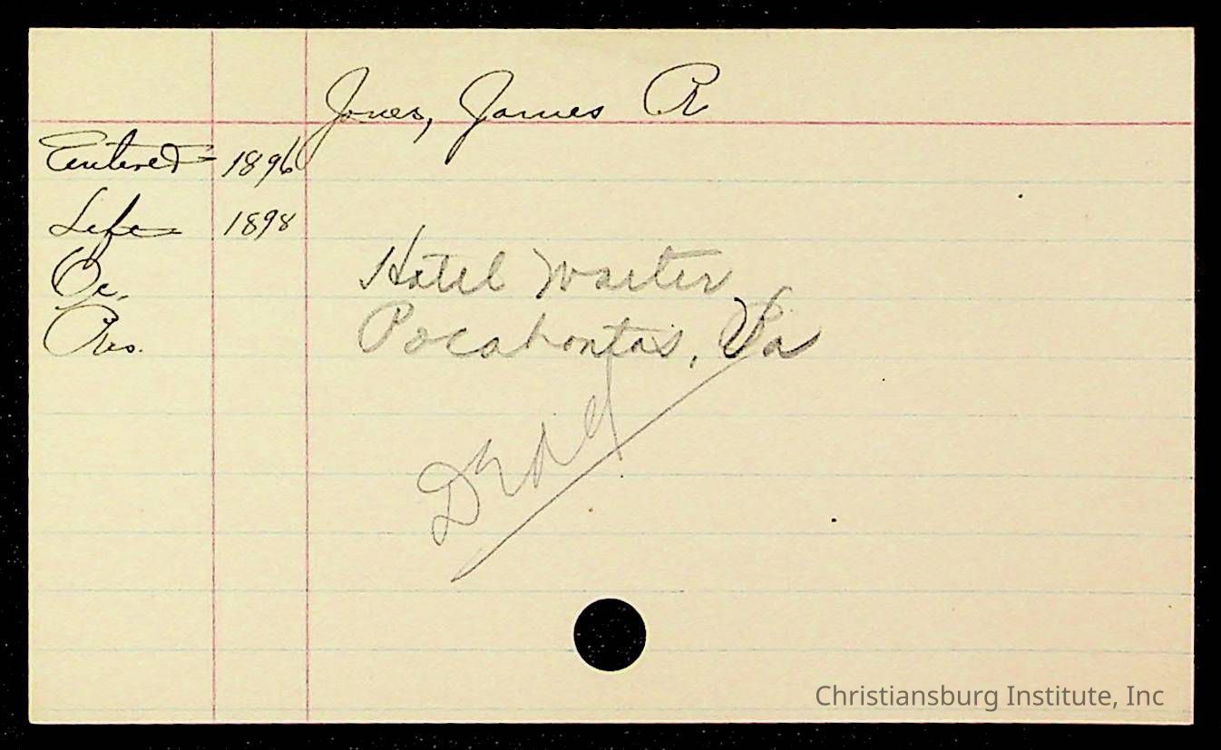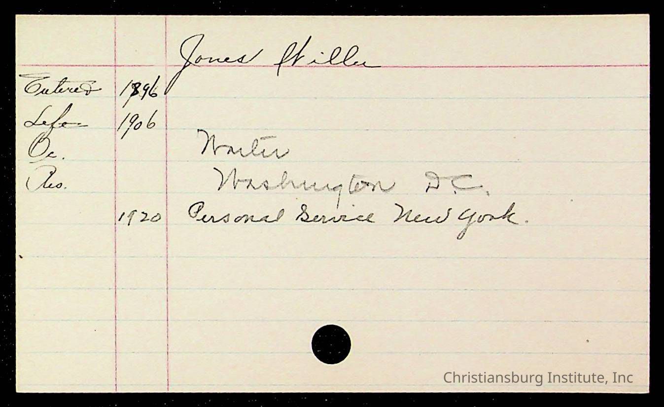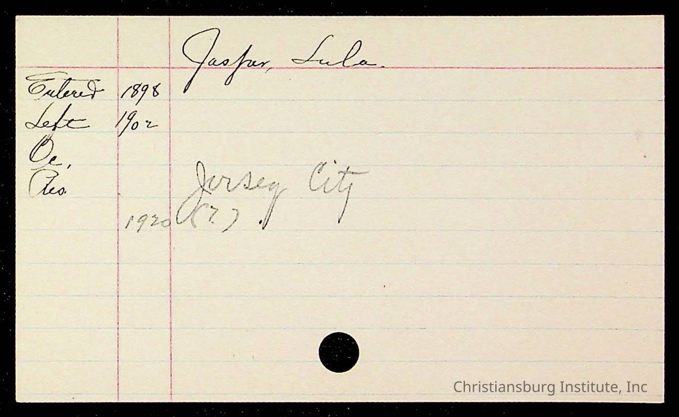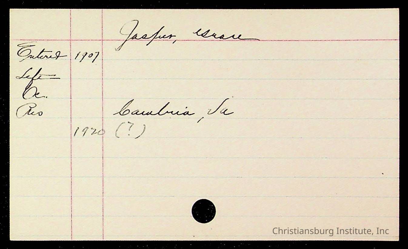 An archive of early Christiansburg Institute student records written on notecards for last names that began with the letter J, 1900s.
