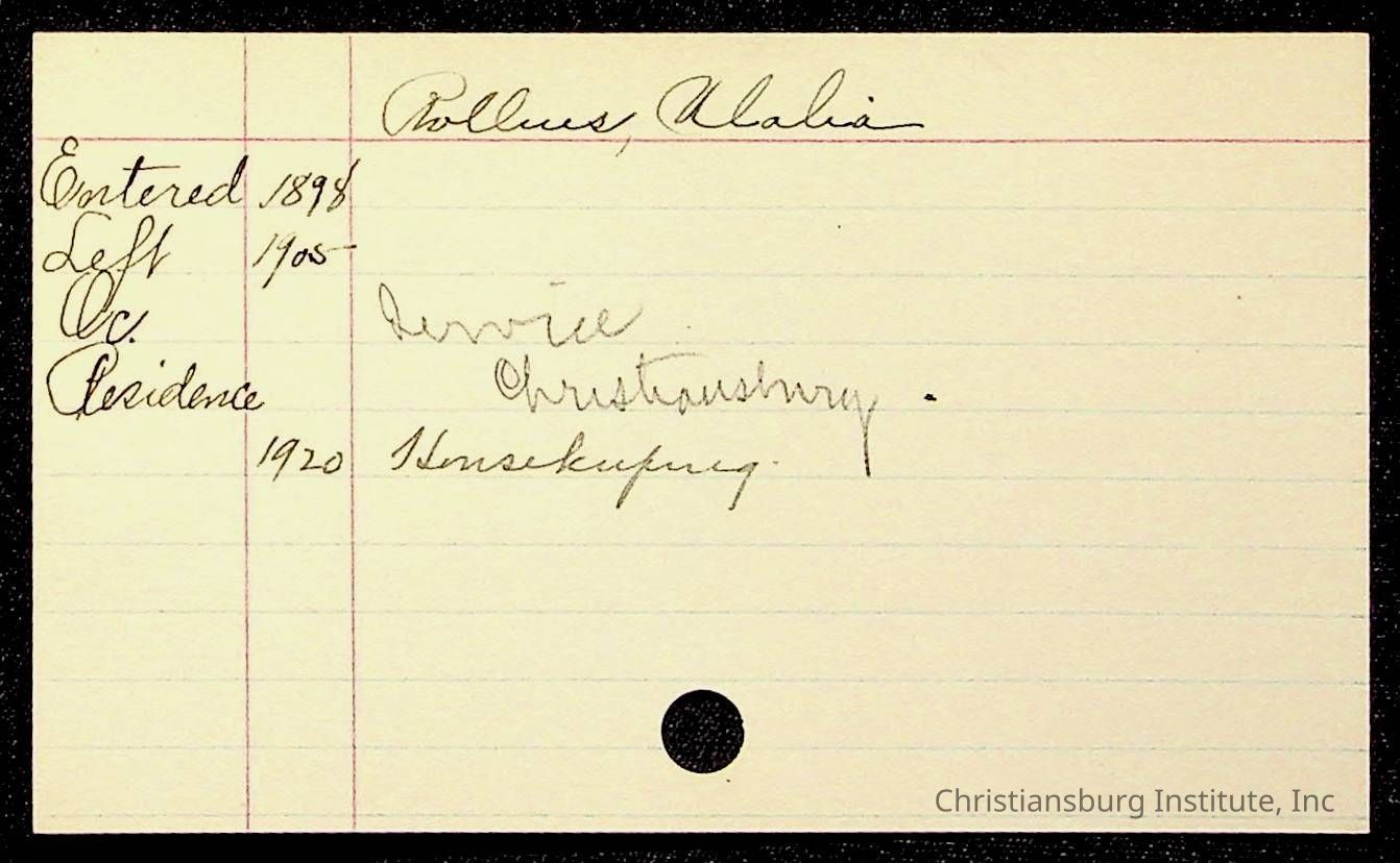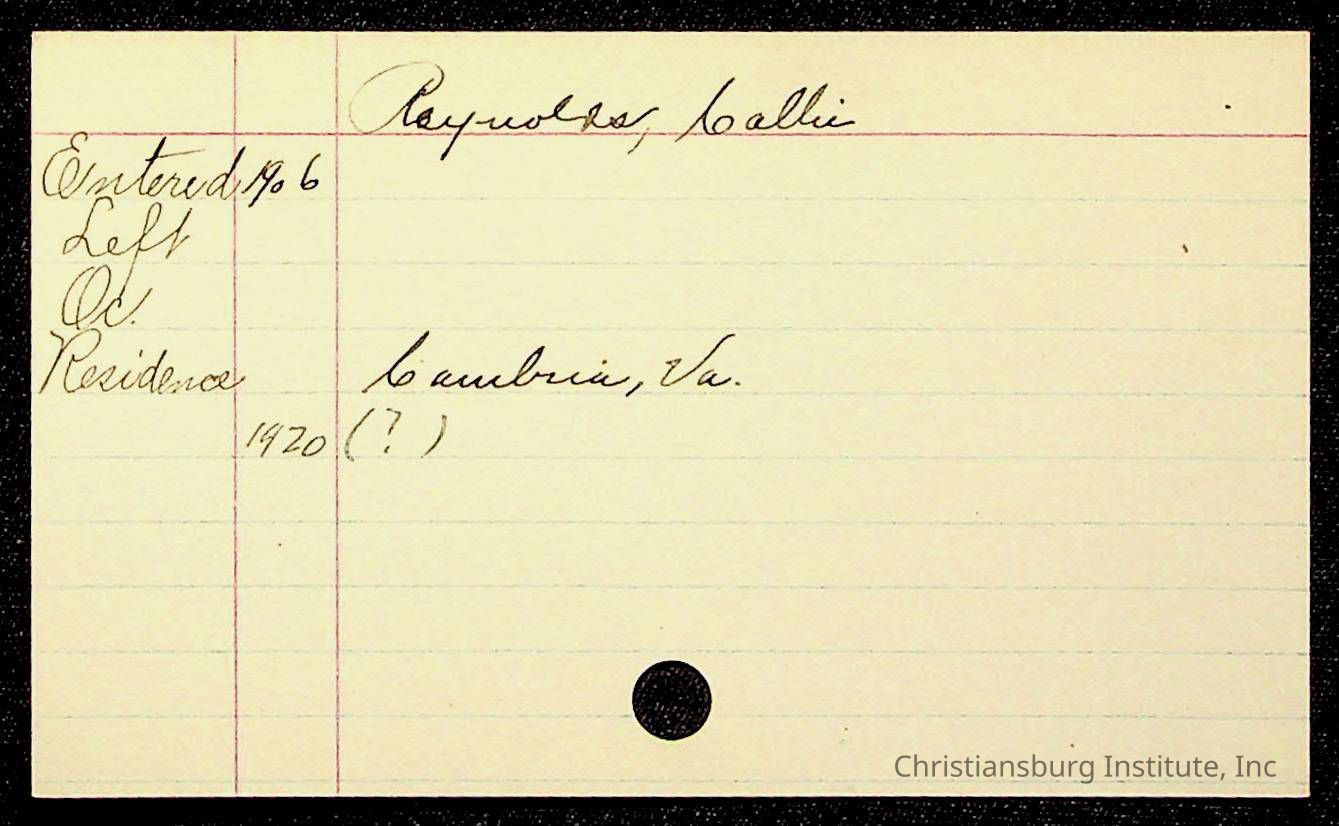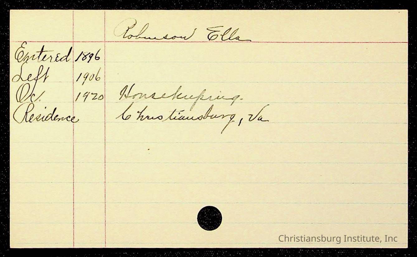 Copyright has been assigned to Christiansburg Institute Museum & Archives by Montgomery County Public Schools. For permission to publish materials created by the donor, contact CIMA@christiansburginstitute.com. Materials not created by Christiansburg Industrial Institute may still be under copyright.