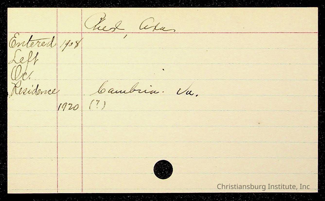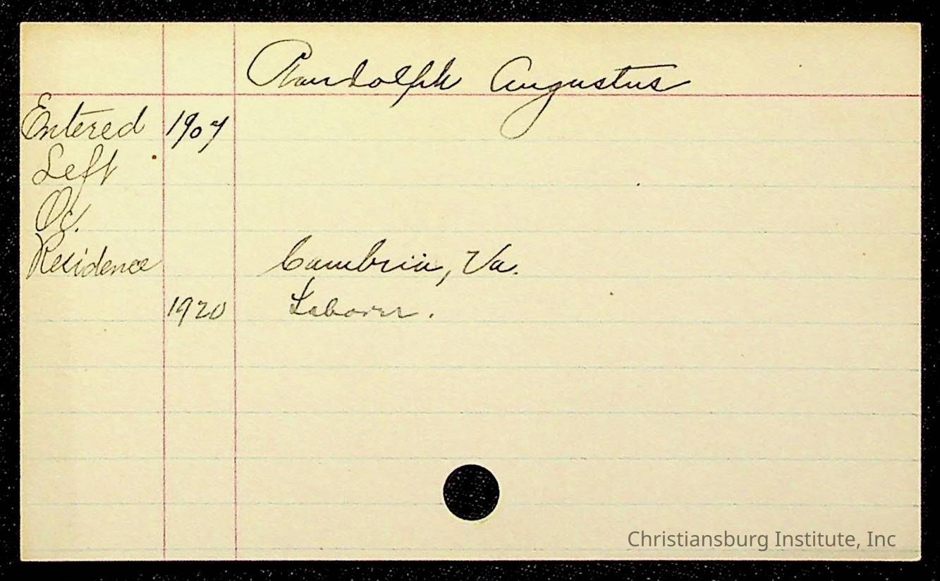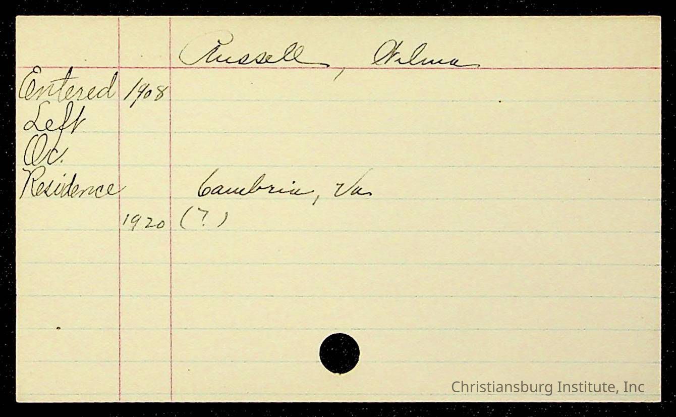 Copyright has been assigned to Christiansburg Institute Museum & Archives by Montgomery County Public Schools. For permission to publish materials created by the donor, contact CIMA@christiansburginstitute.com. Materials not created by Christiansburg Industrial Institute may still be under copyright.