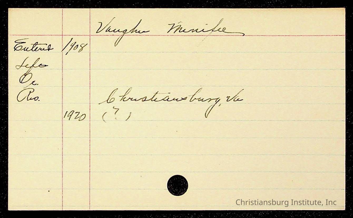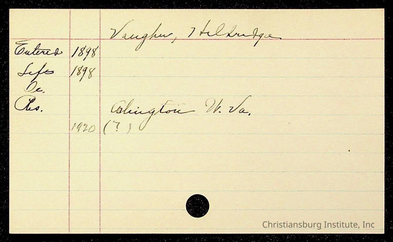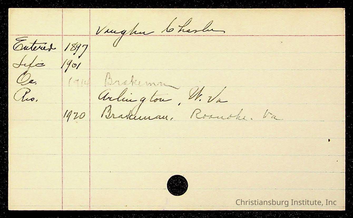 An archive of early Christiansburg Institute student records written on notecards for last names that began with the letter V, 1900s.