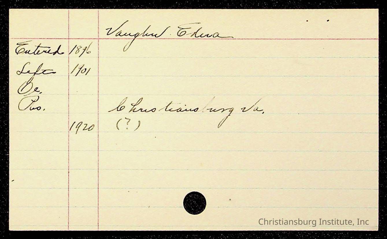Copyright has been assigned to Christiansburg Institute Museum & Archives by Montgomery County Public Schools. For permission to publish materials created by the donor, contact CIMA@christiansburginstitute.com. Materials not created by Christiansburg Industrial Institute may still be under copyright.