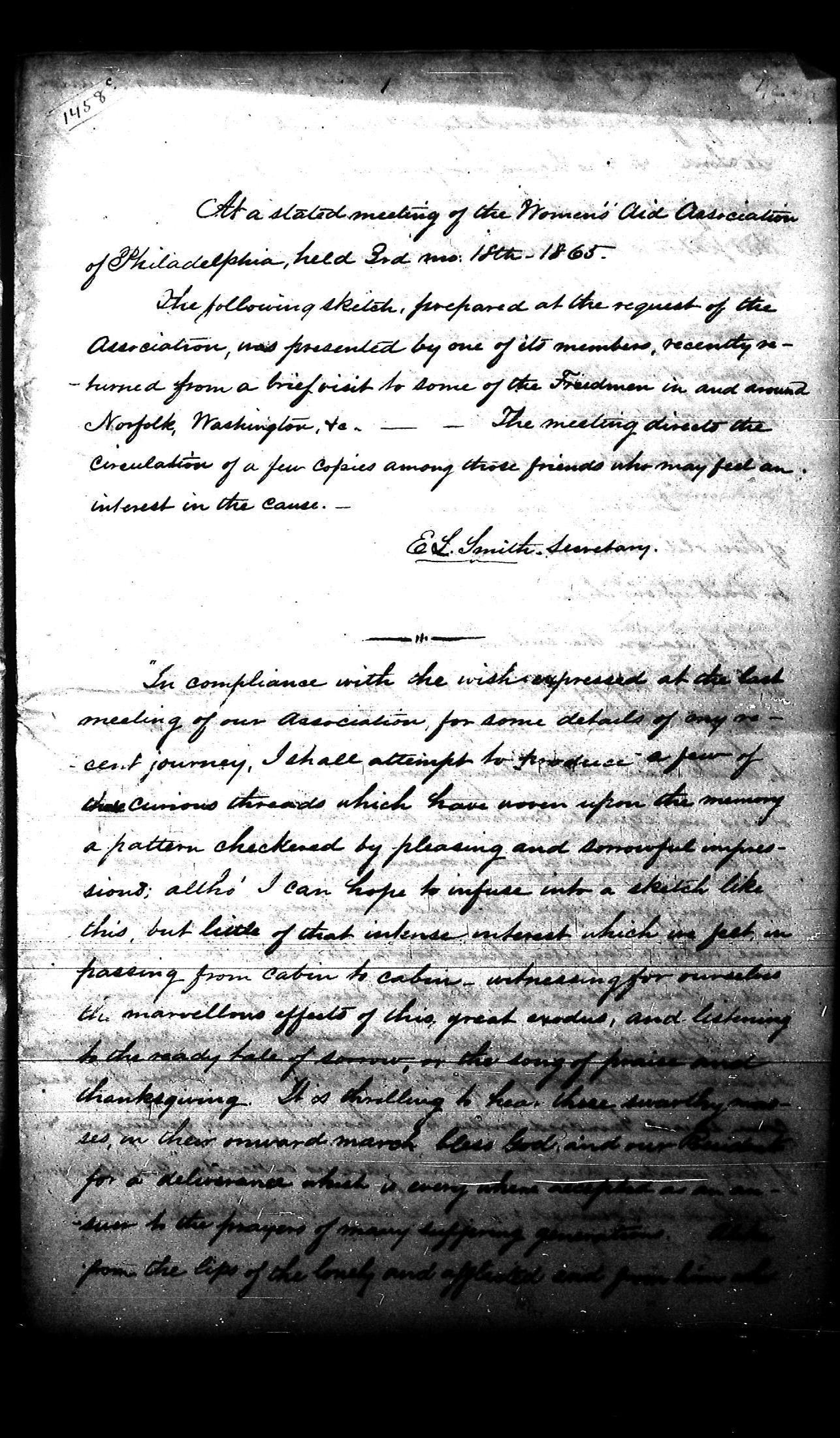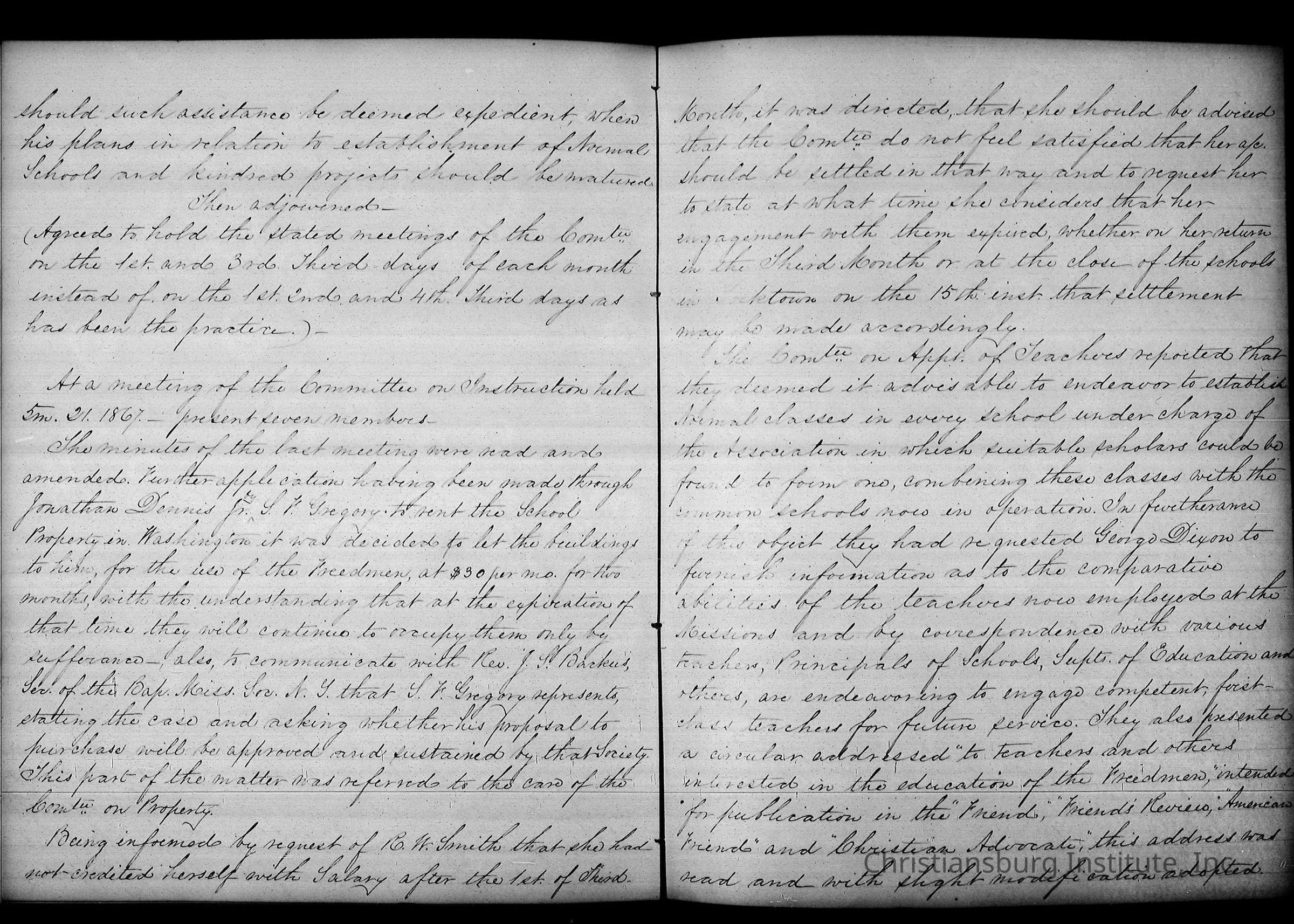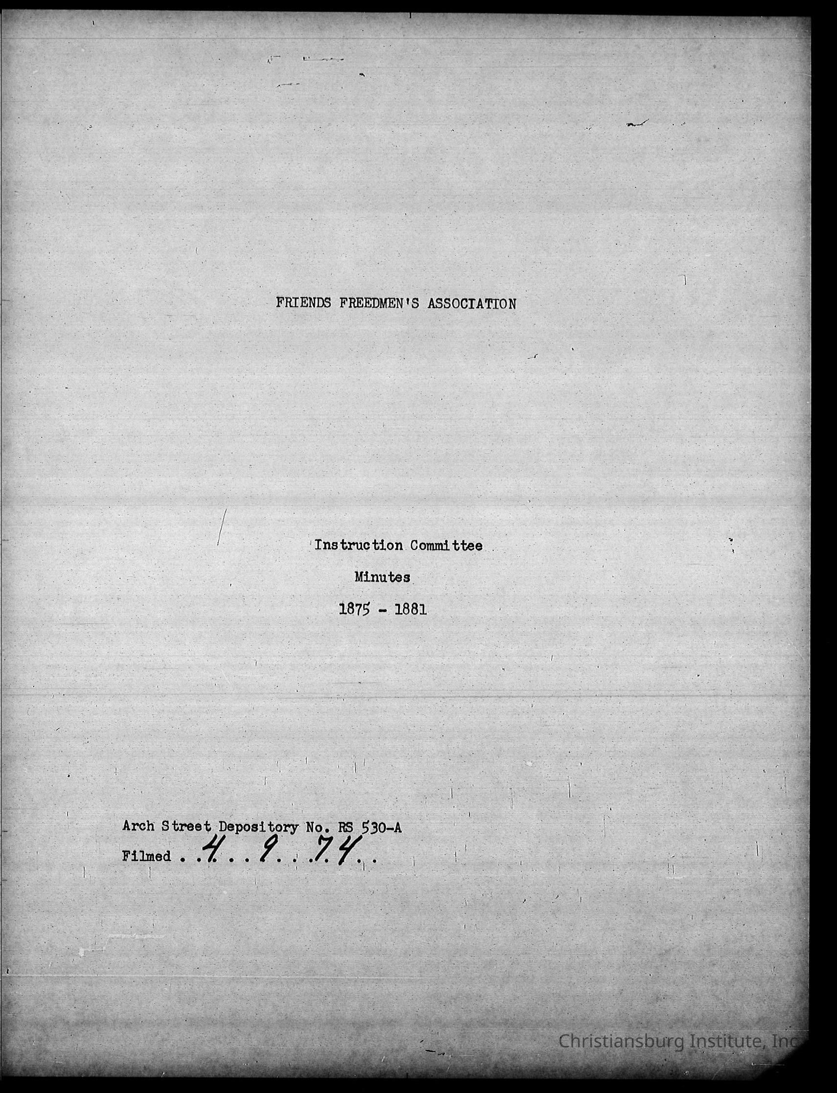 Friends Freedman's Association Reel Five Disk Two: Women's Aid Committee 1862-1864 and Instruction Committee Minutes 1864-1867 & 1875-1882Description