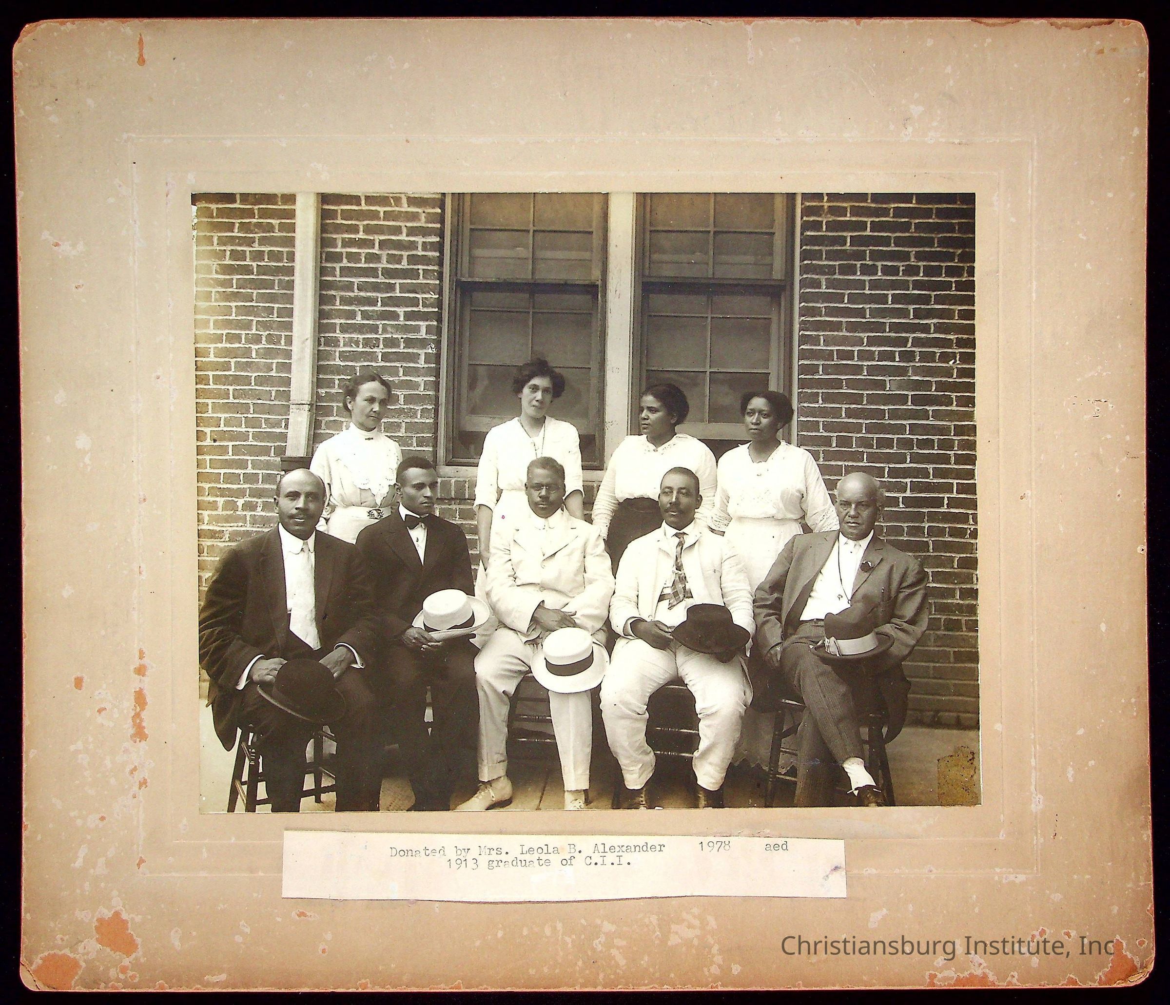 A photograph of the Christiansburg Industrial Institute summer school faculty and Edgar A. Long, undated. This photograph was donated by CII graduate Leola B. Alexander, class of 1913 in the year 1978.