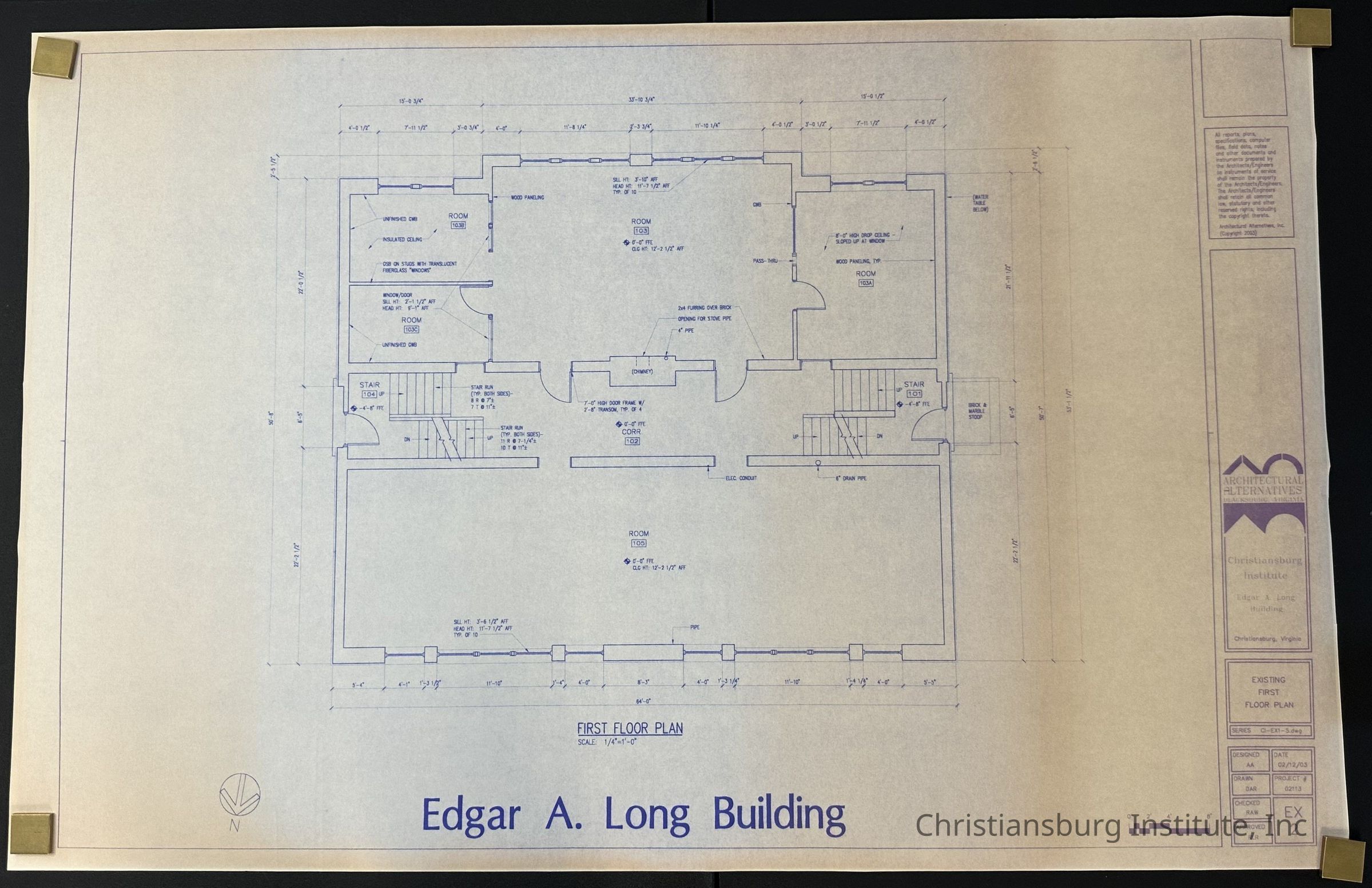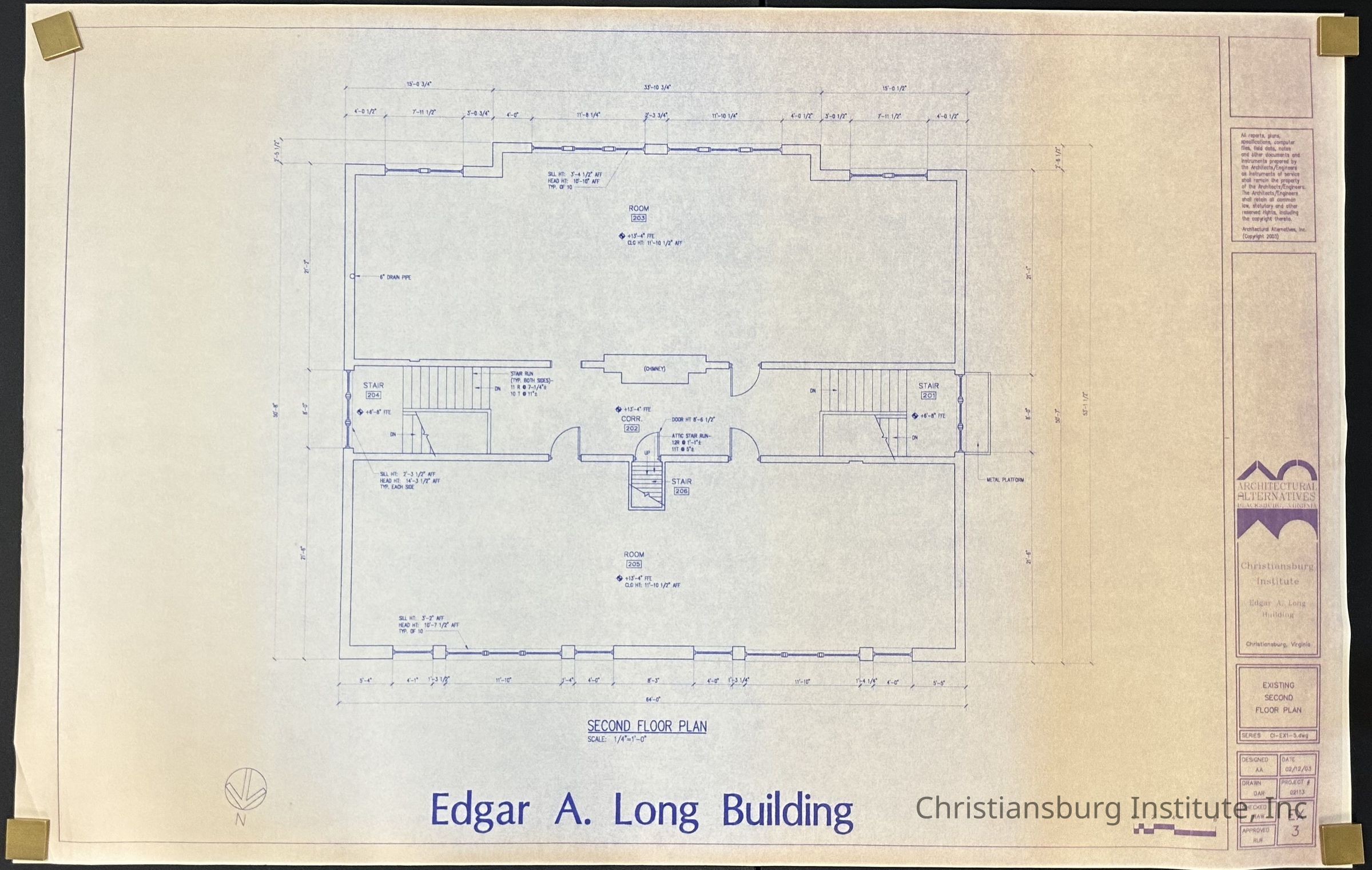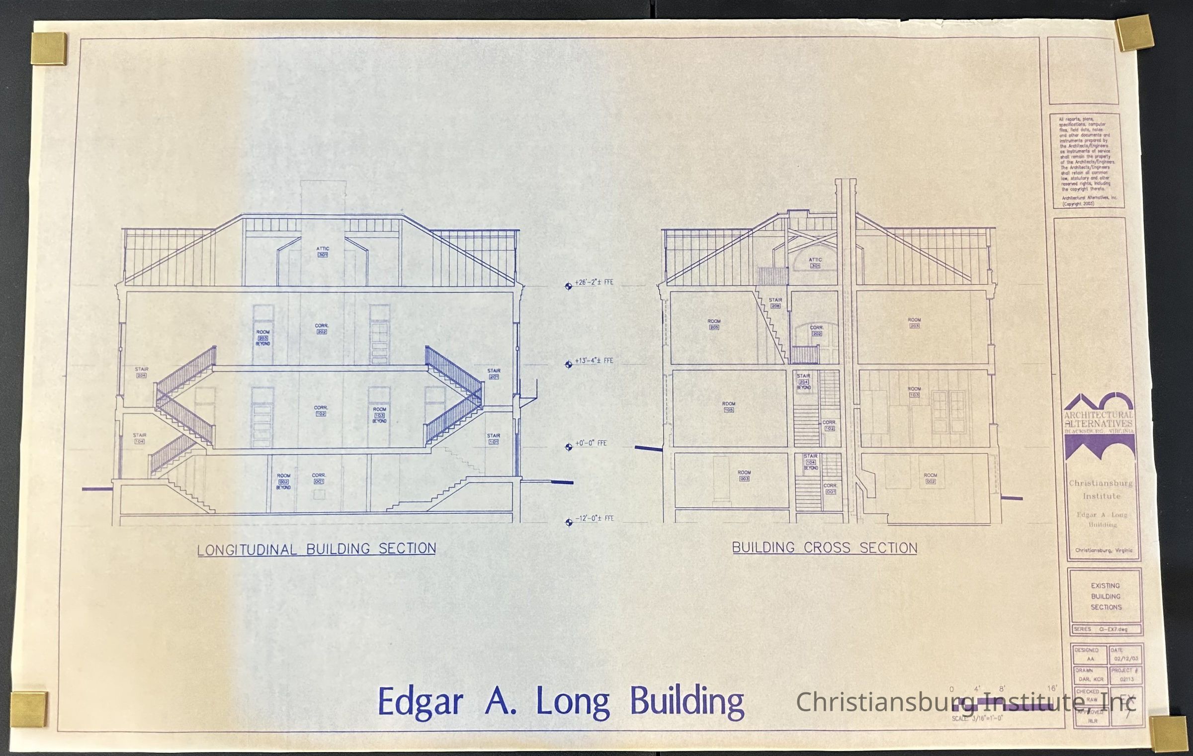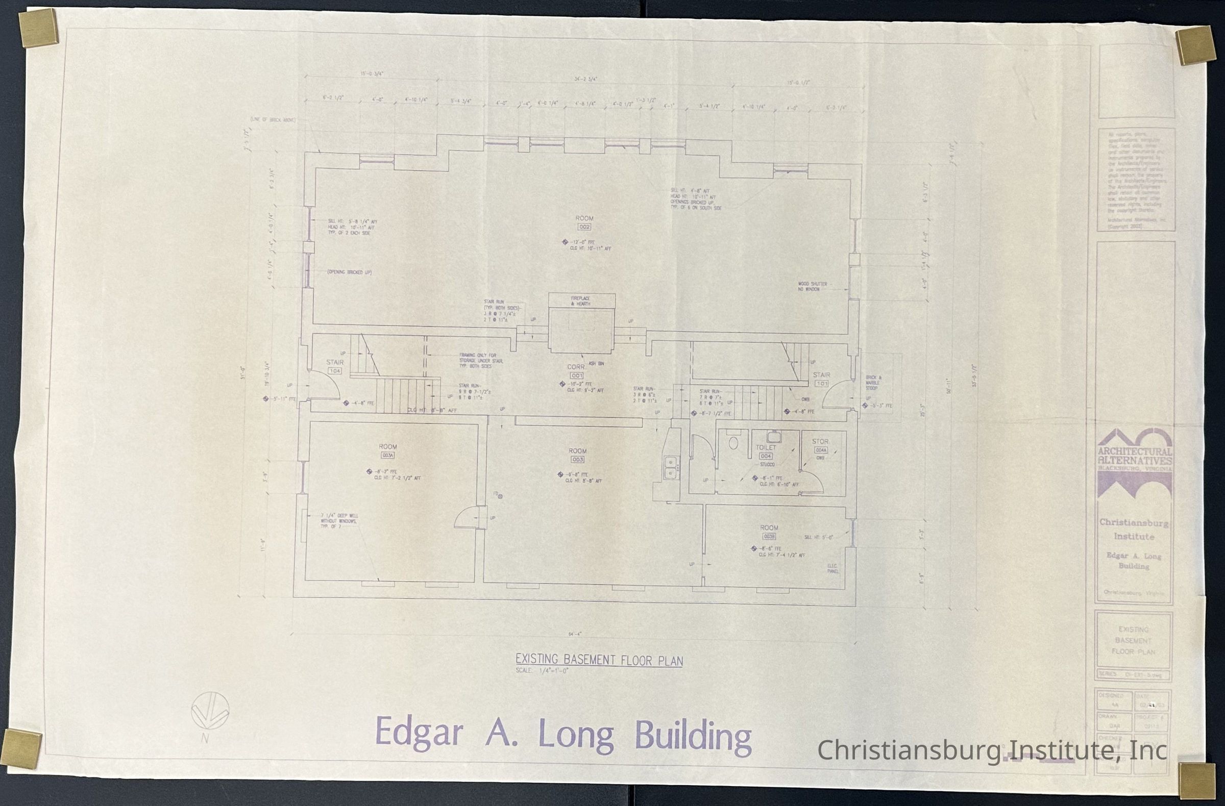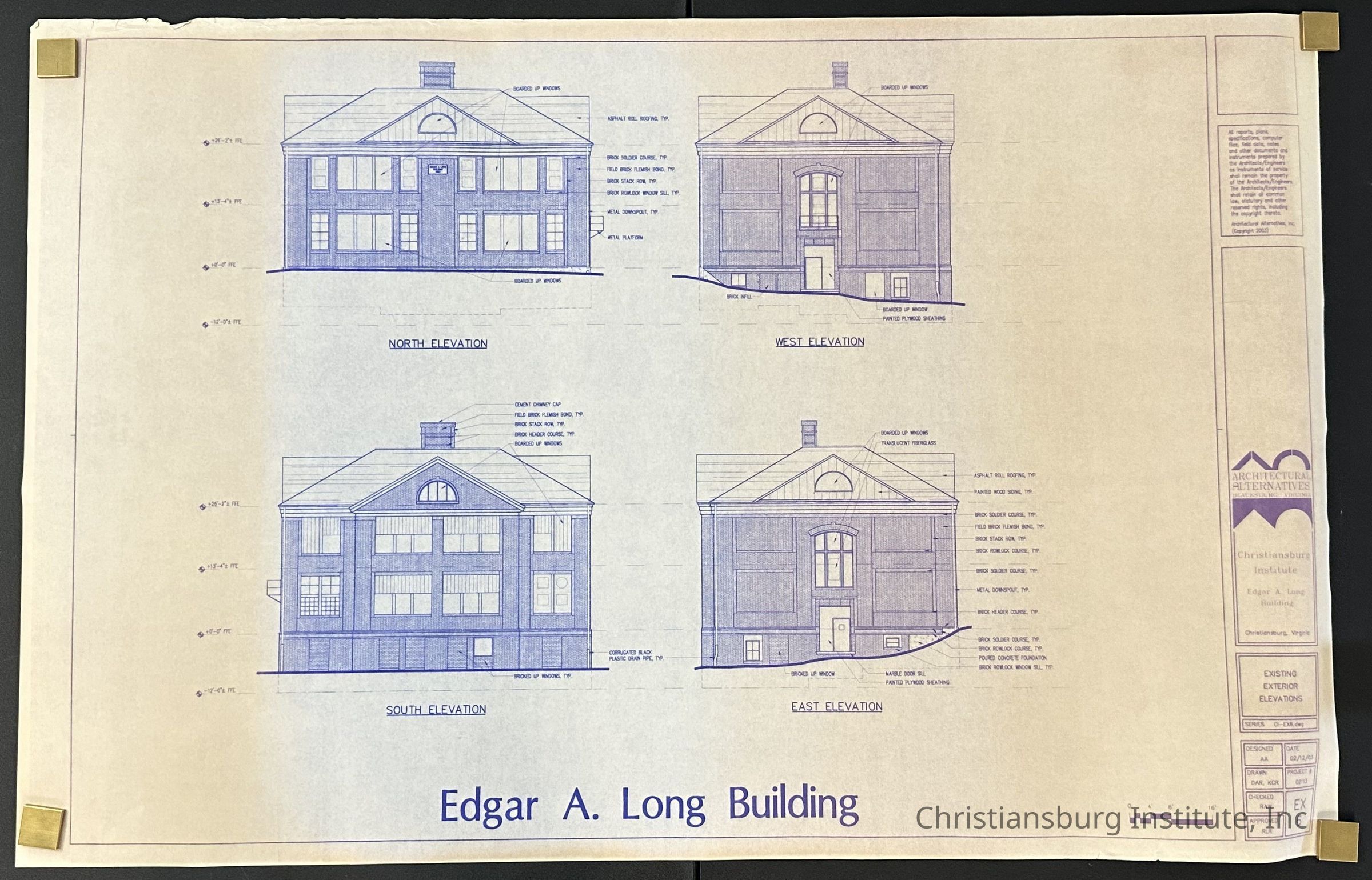The building plans for the Edgar A. Long on the Christiansburg Institute campus made by Architectural Alternatives, dated 2003.
