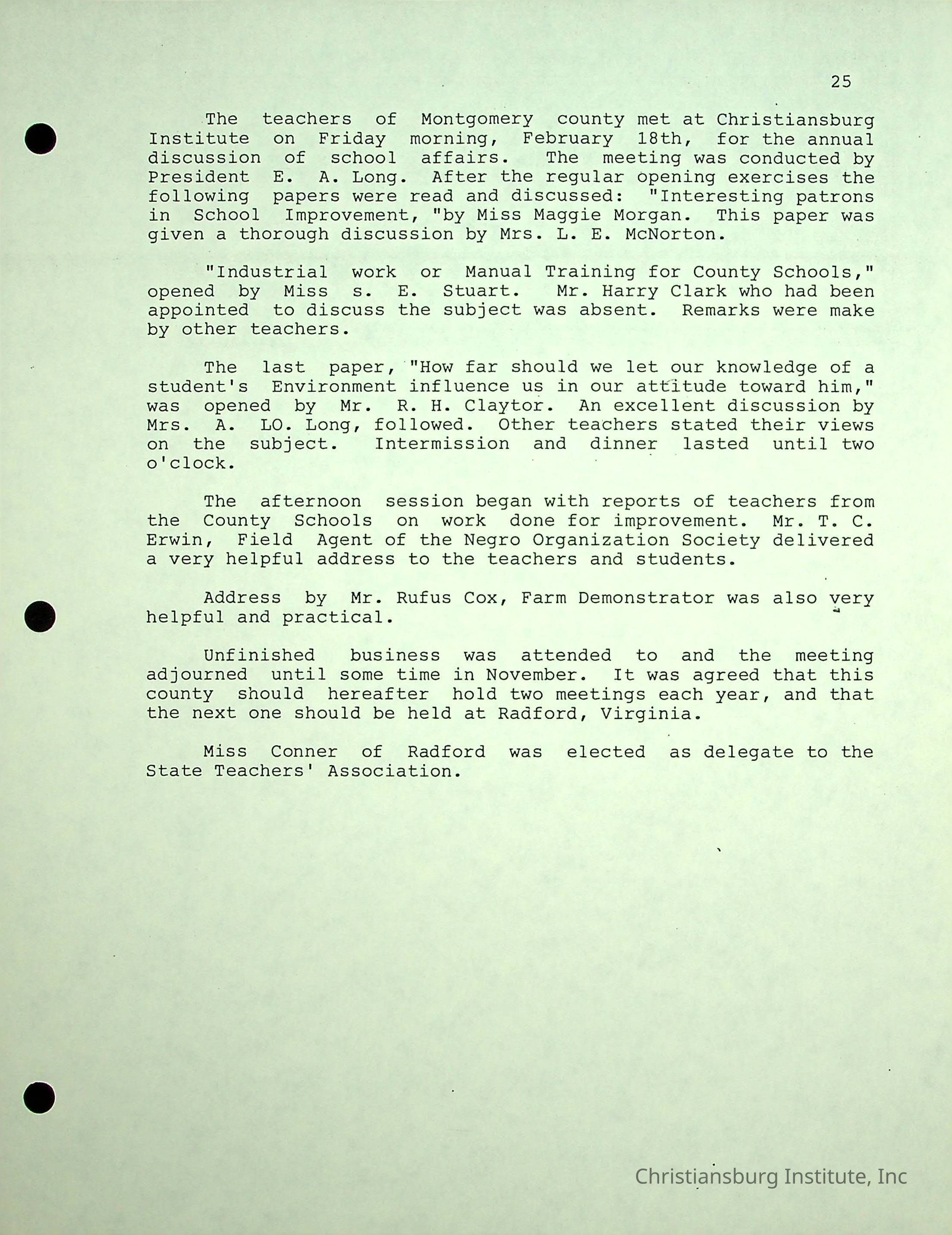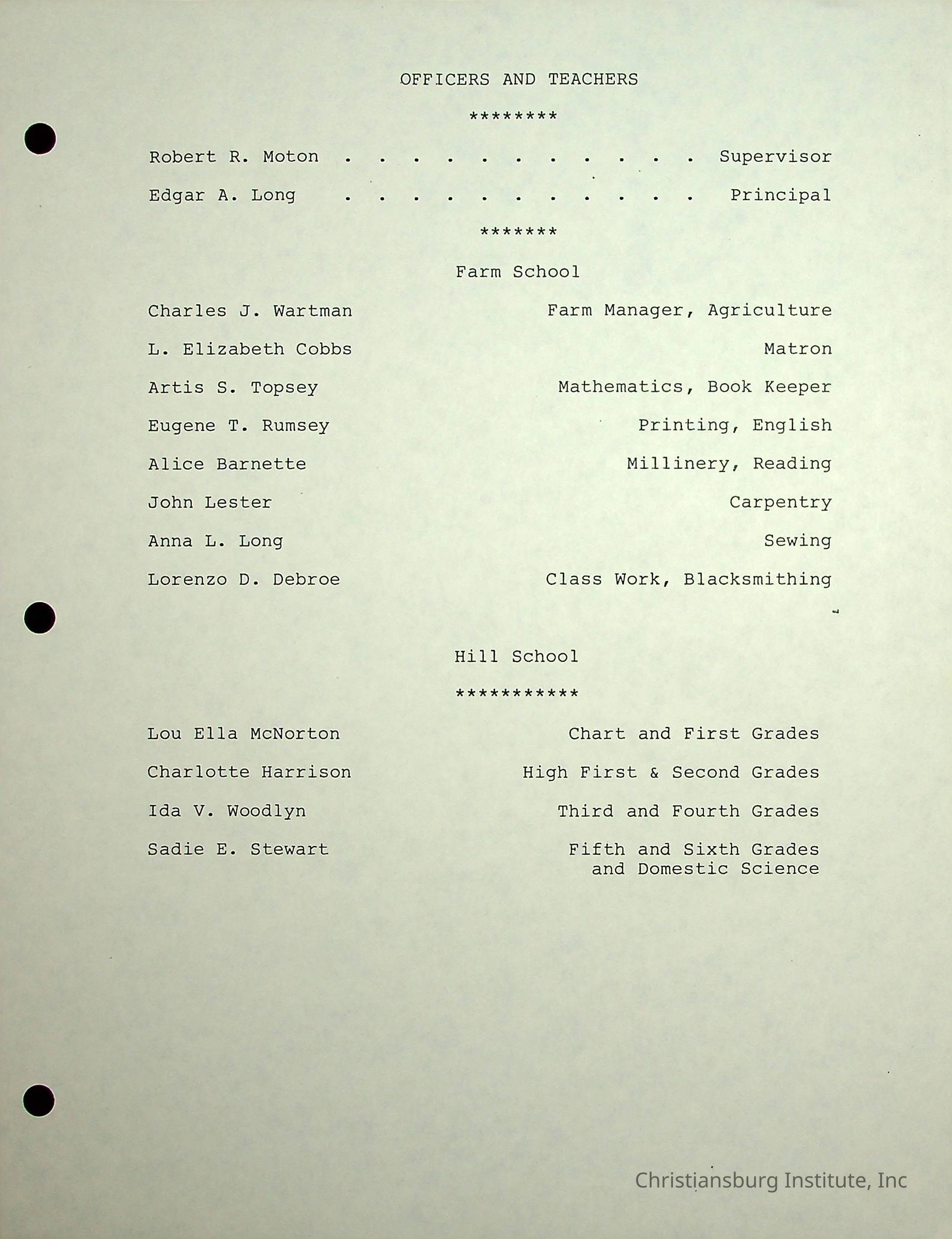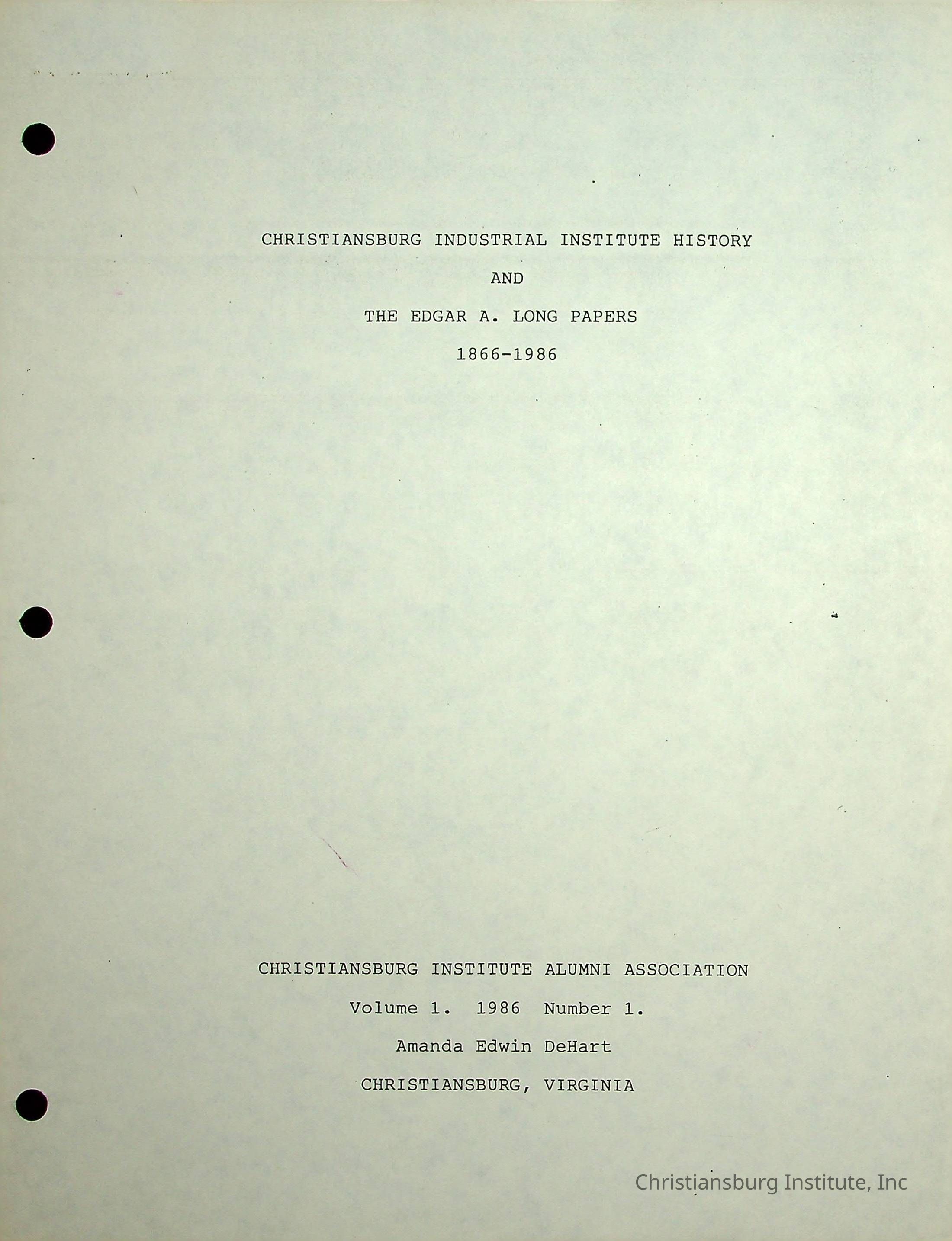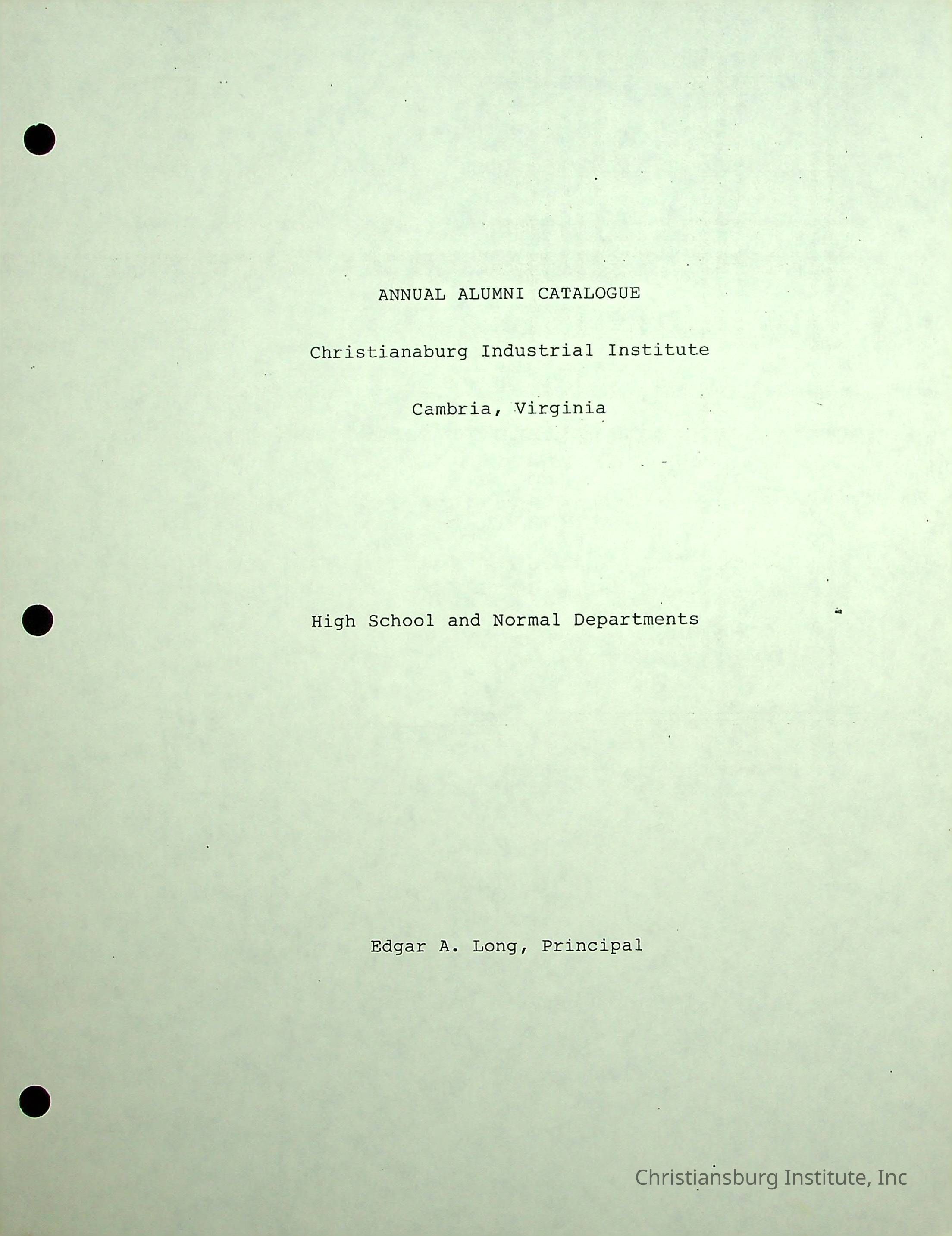 The Christiansburg Industrial Institute faculty file for Edgar A. Long, dated April 11th, 2003. This file contains genealogical information and was recorded by Elaine Dow Carter.Creator