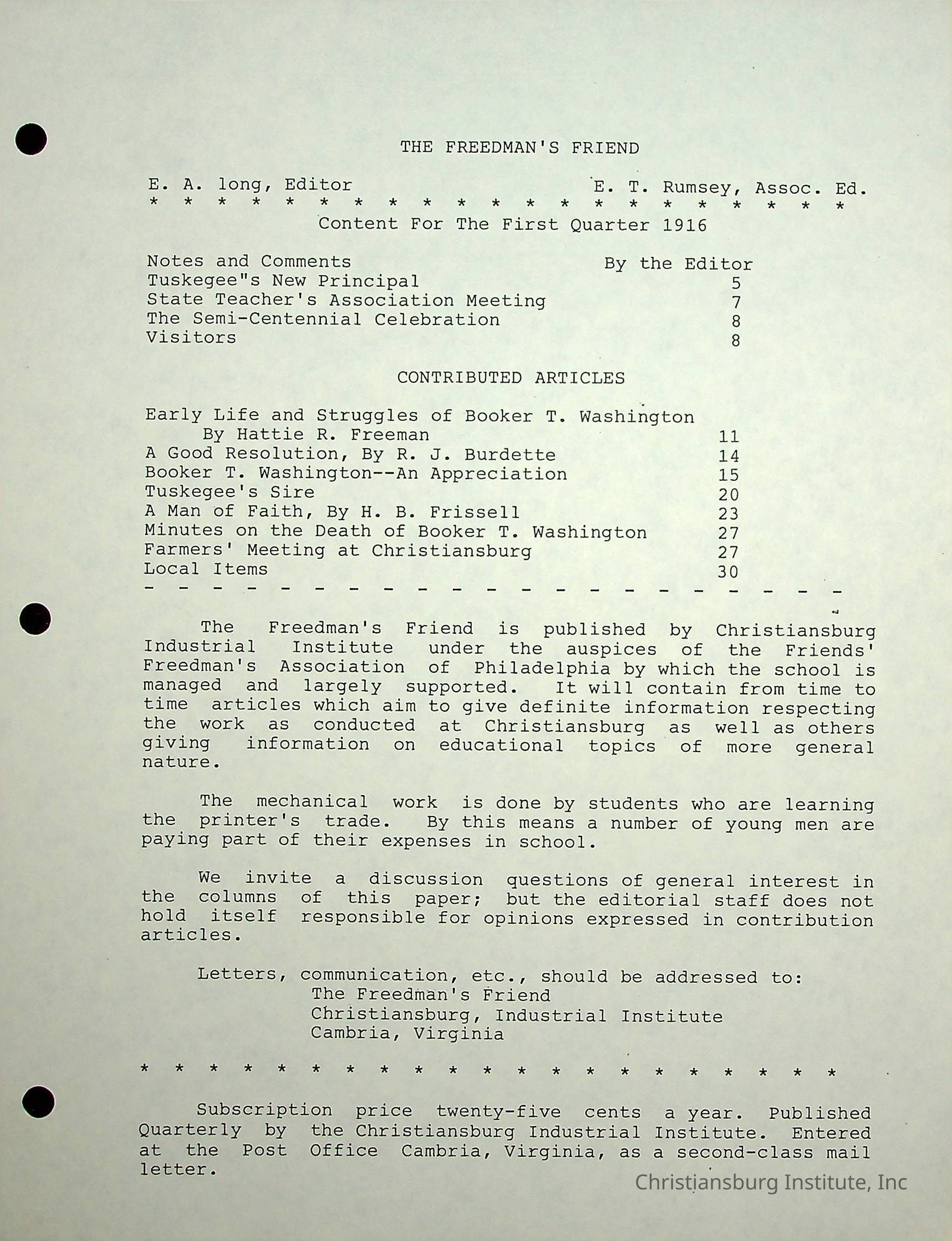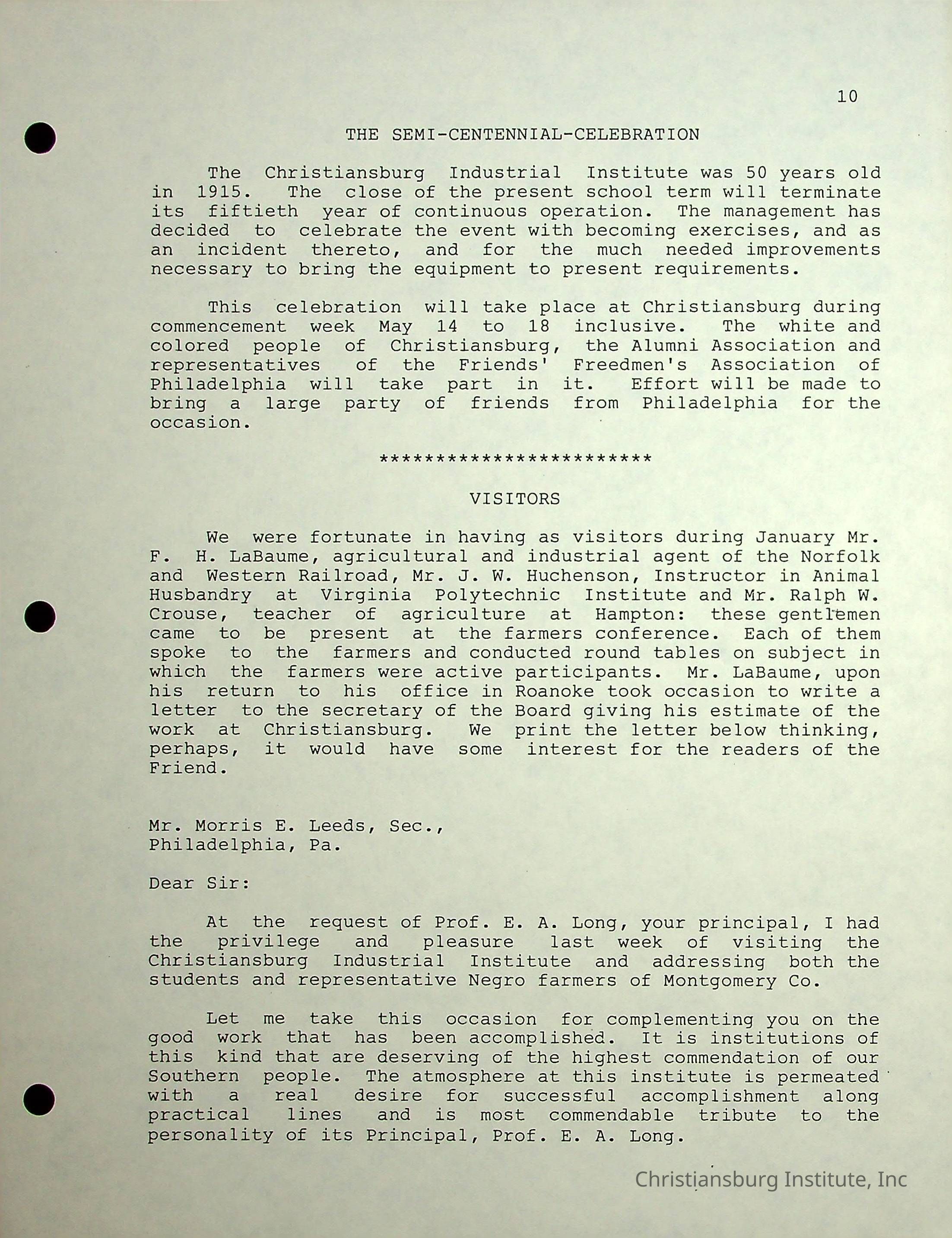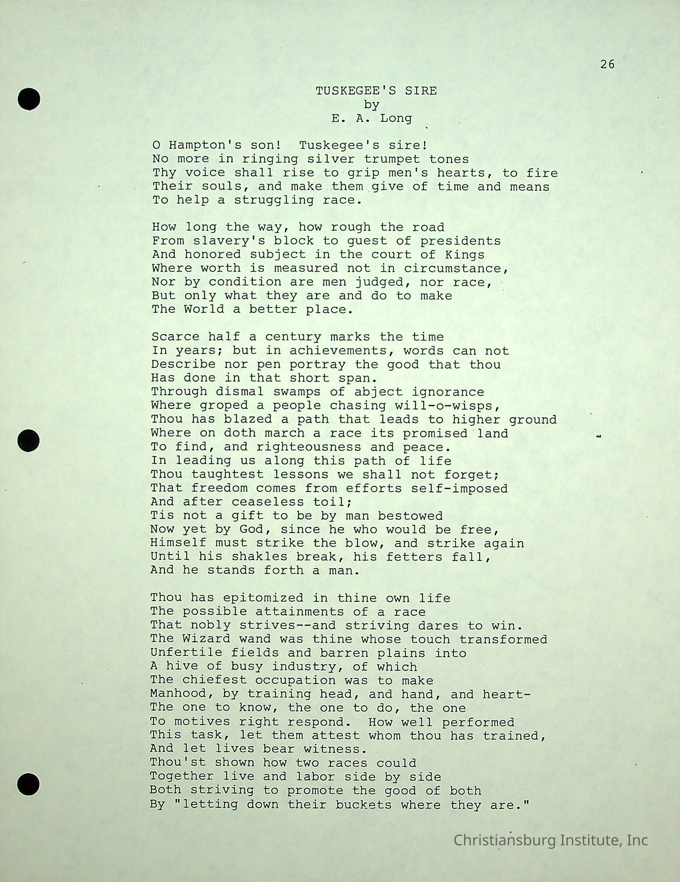 The Christiansburg Industrial Institute faculty file for Edgar A. Long, dated April 11th, 2003. This file contains genealogical information and was recorded by Elaine Dow Carter.Creator