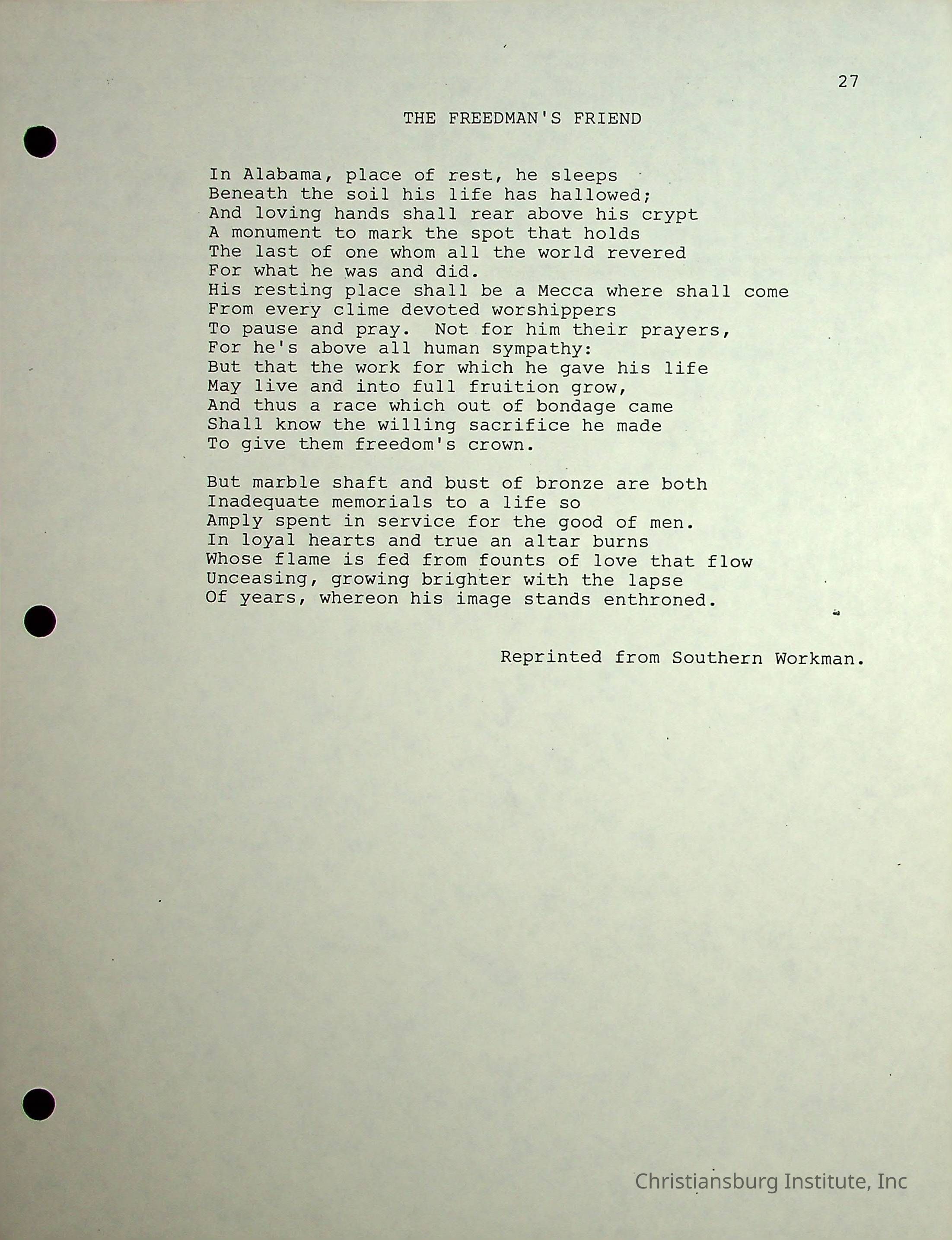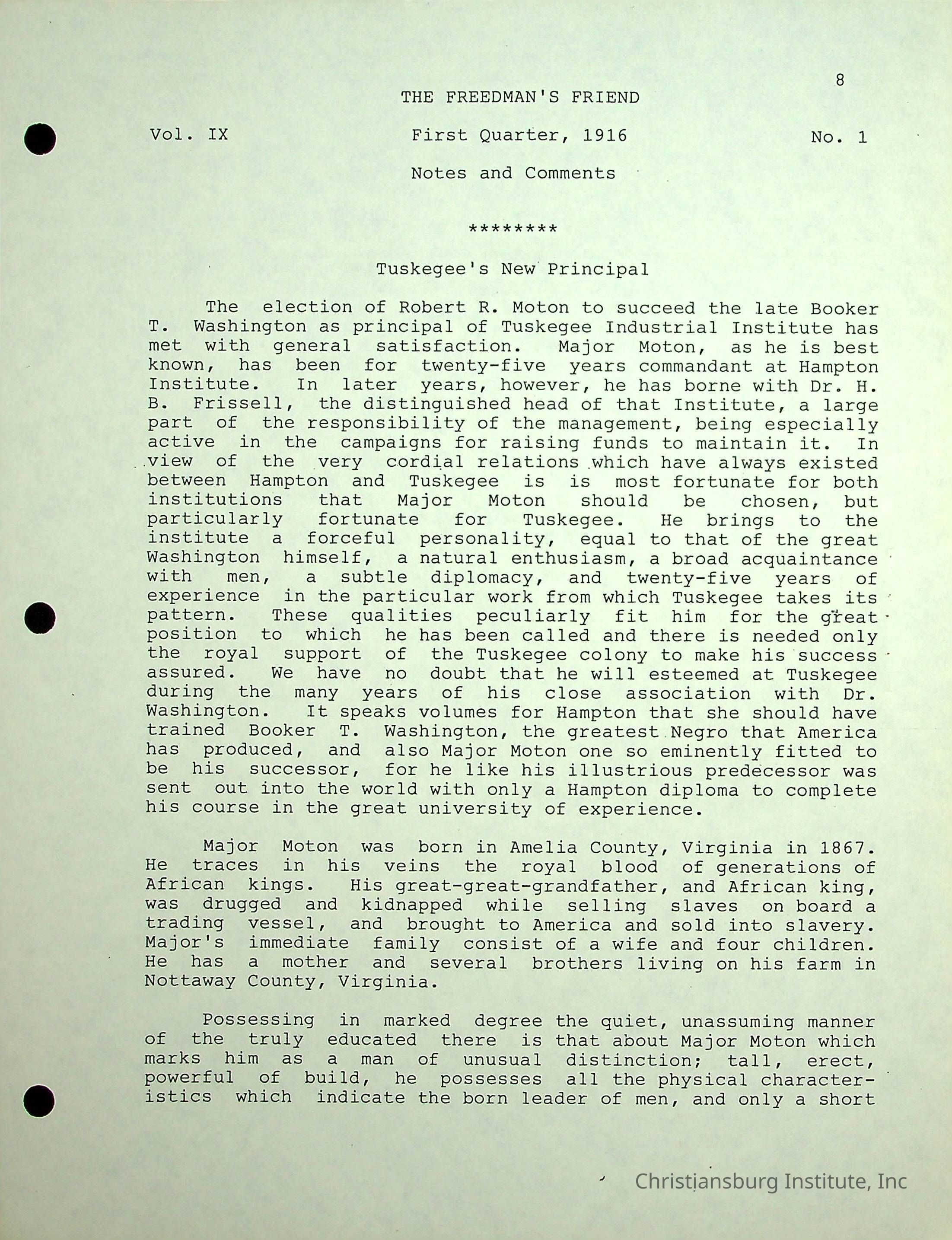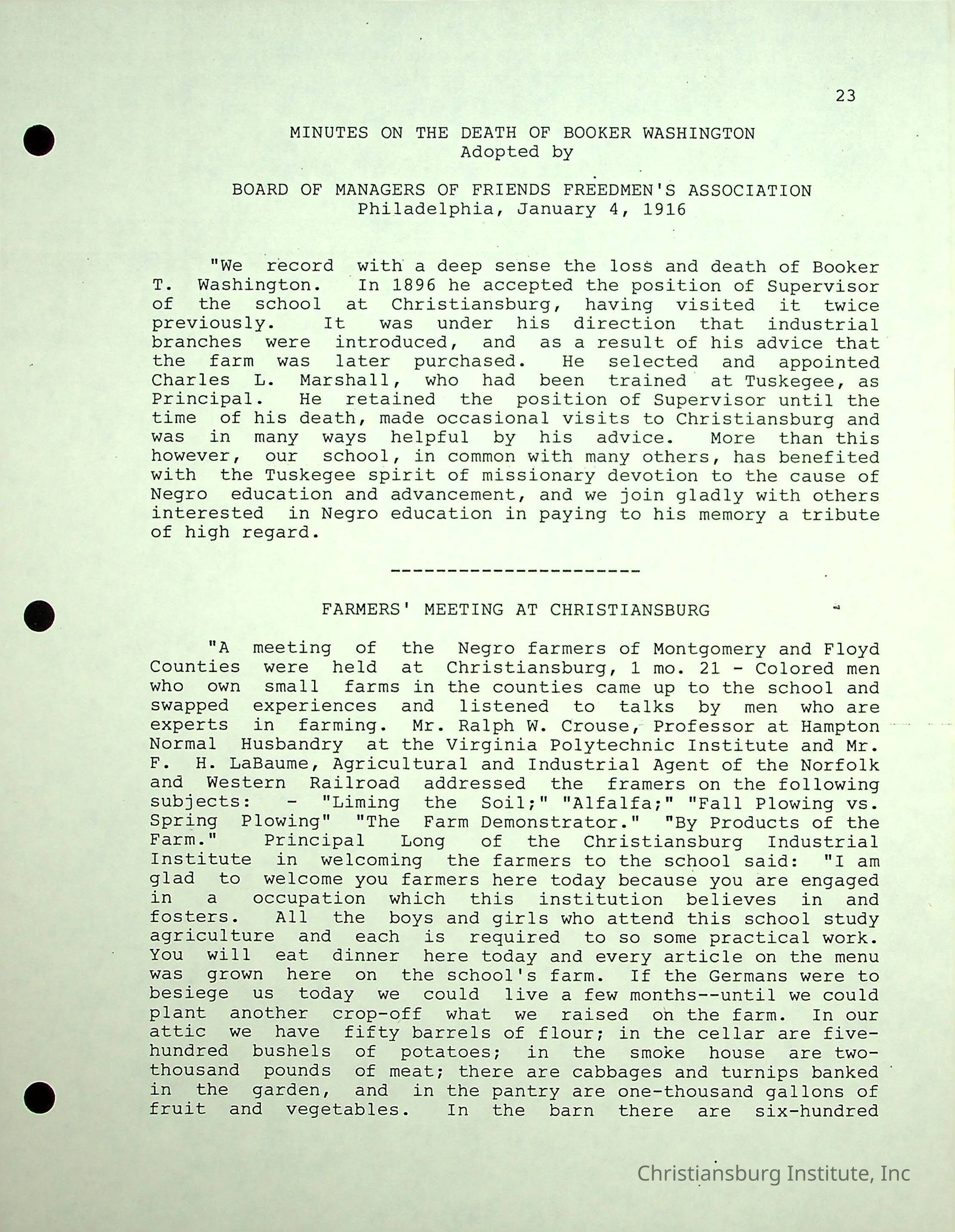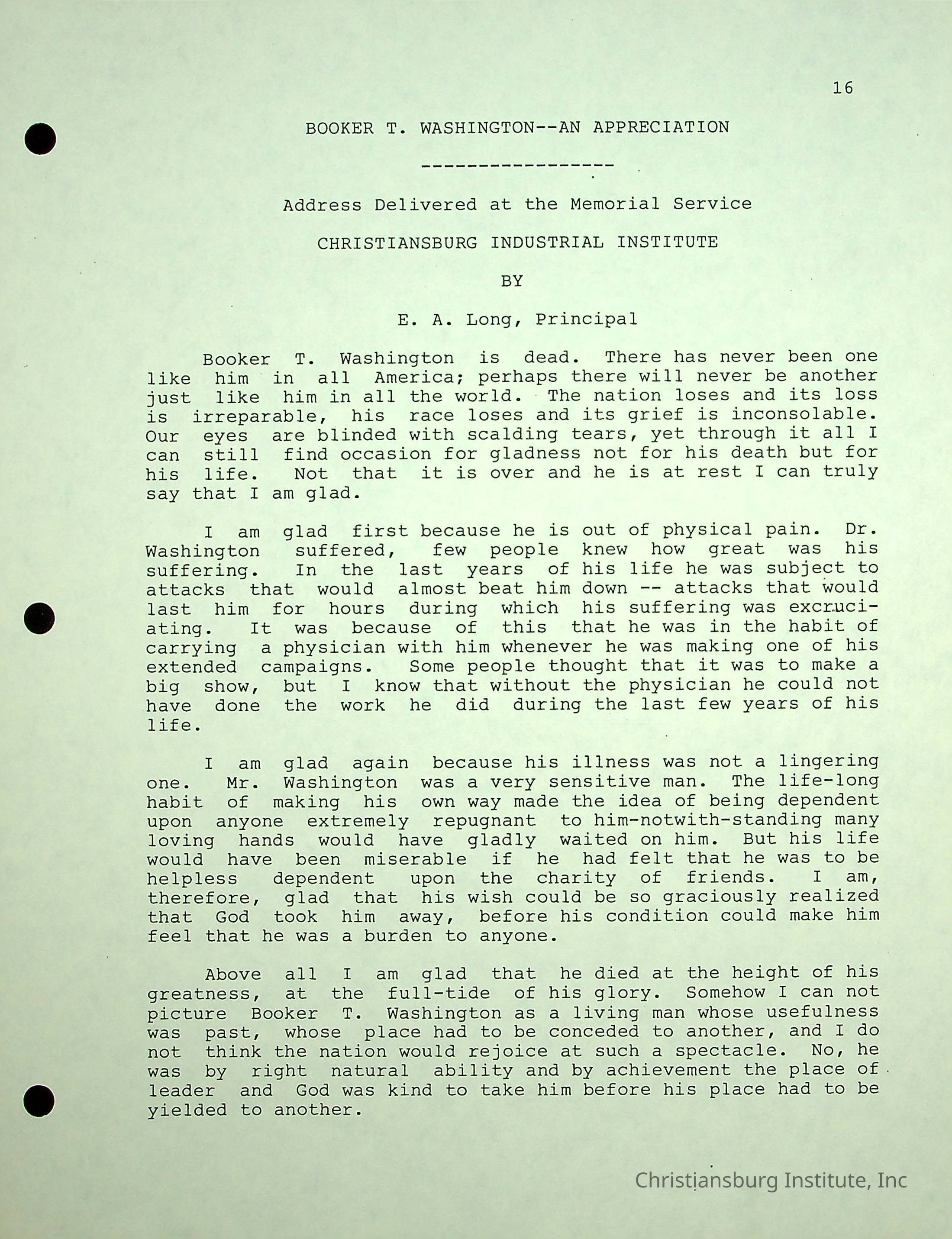 The Christiansburg Industrial Institute faculty file for Edgar A. Long, dated April 11th, 2003. This file contains genealogical information and was recorded by Elaine Dow Carter.Creator