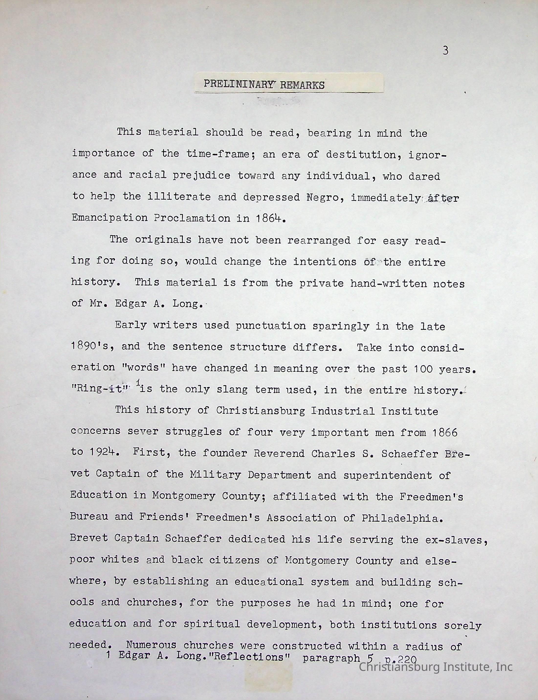 Edgar A. Long Papers: Chapter 1 Preliminary Remarks