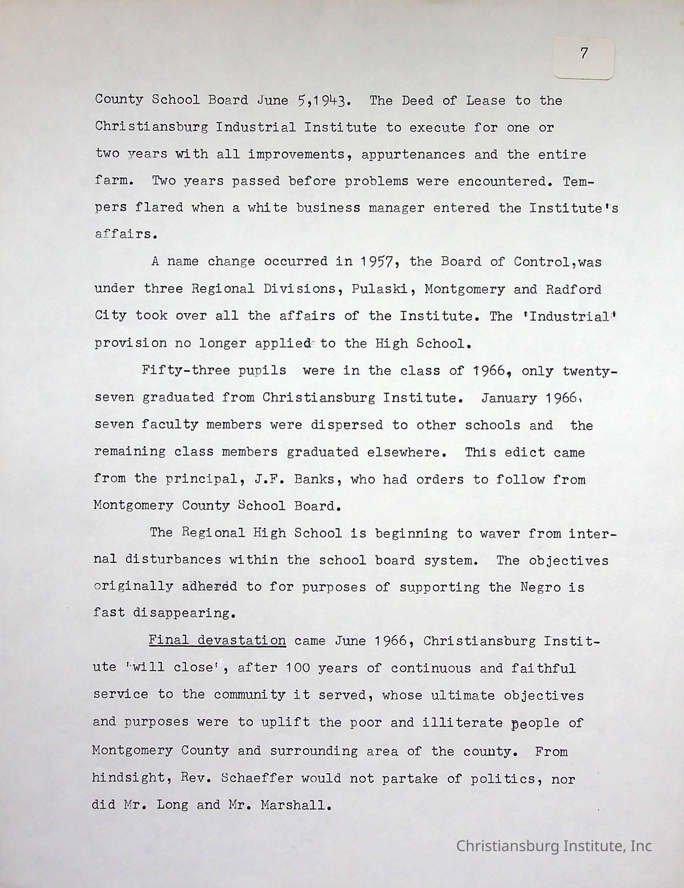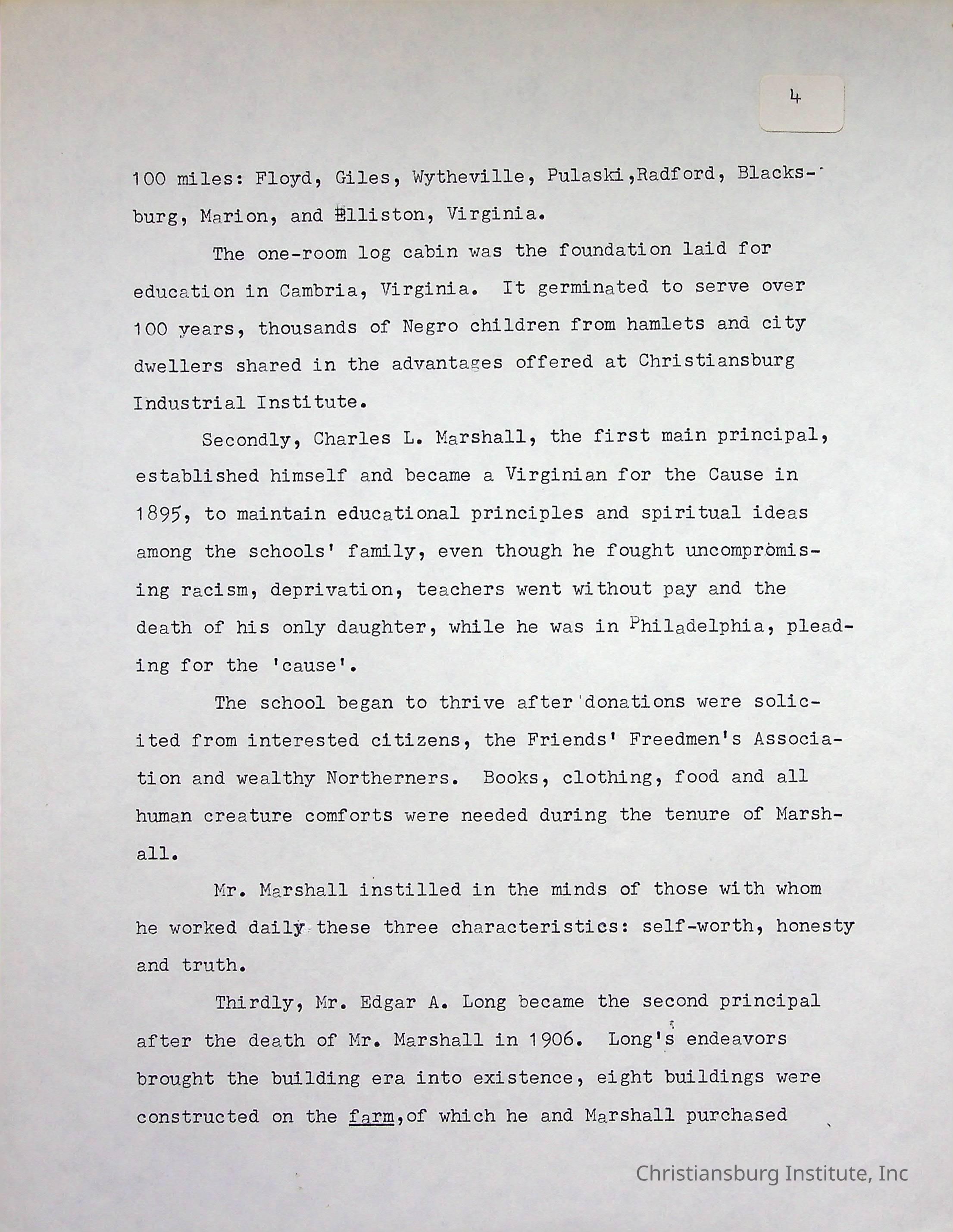 Christiansburg Industrial Institute, Long, Edgar A., DeHart, Amanda