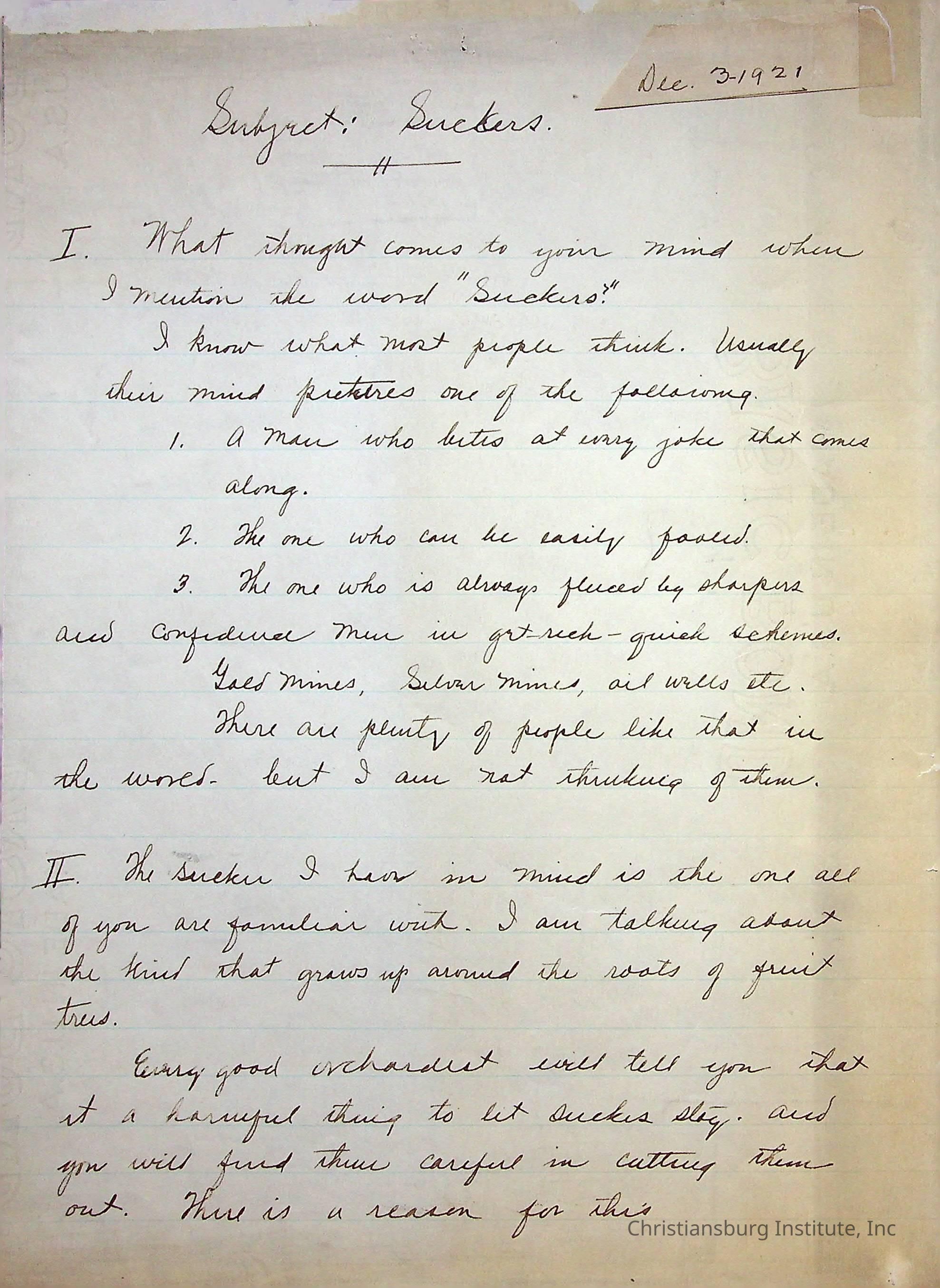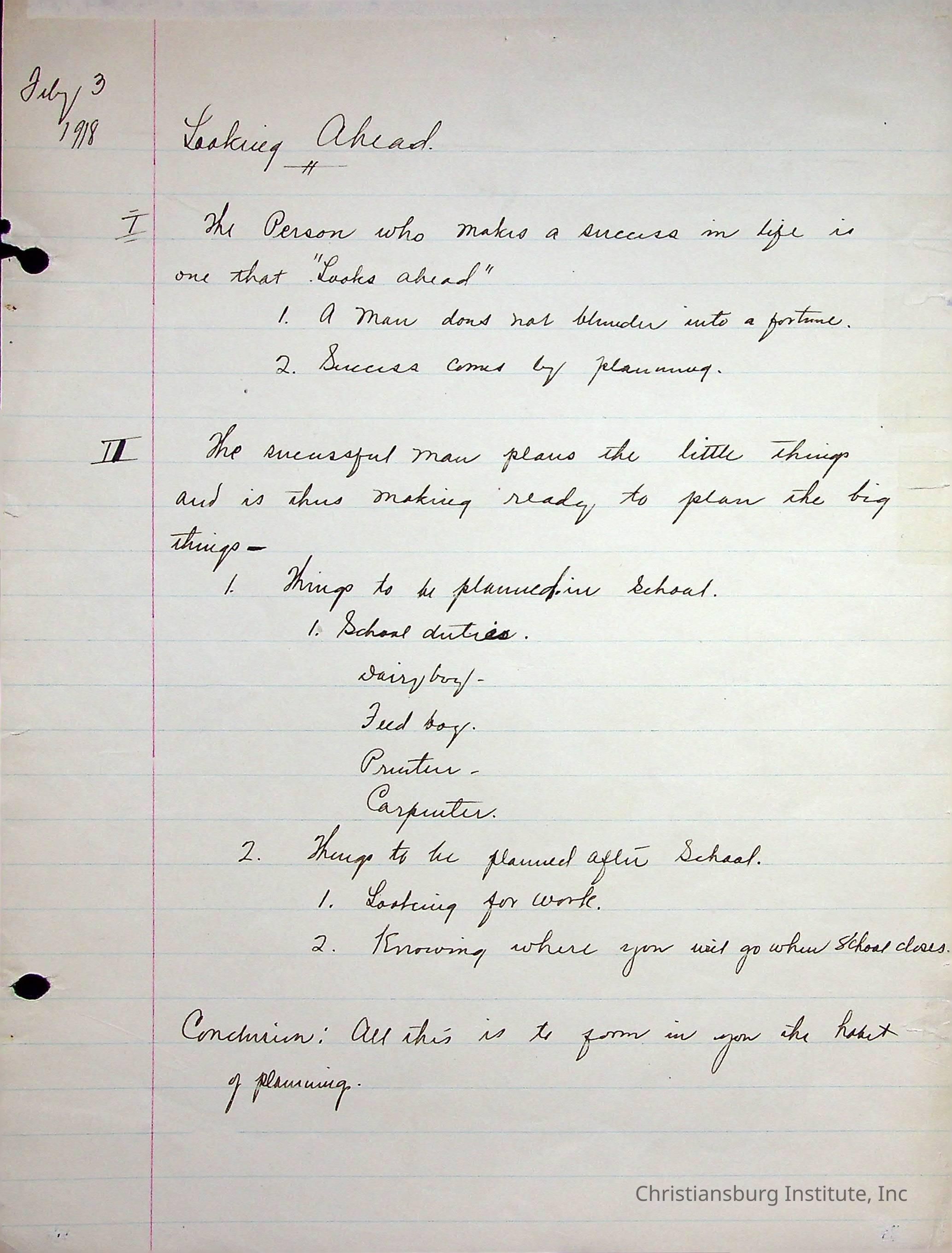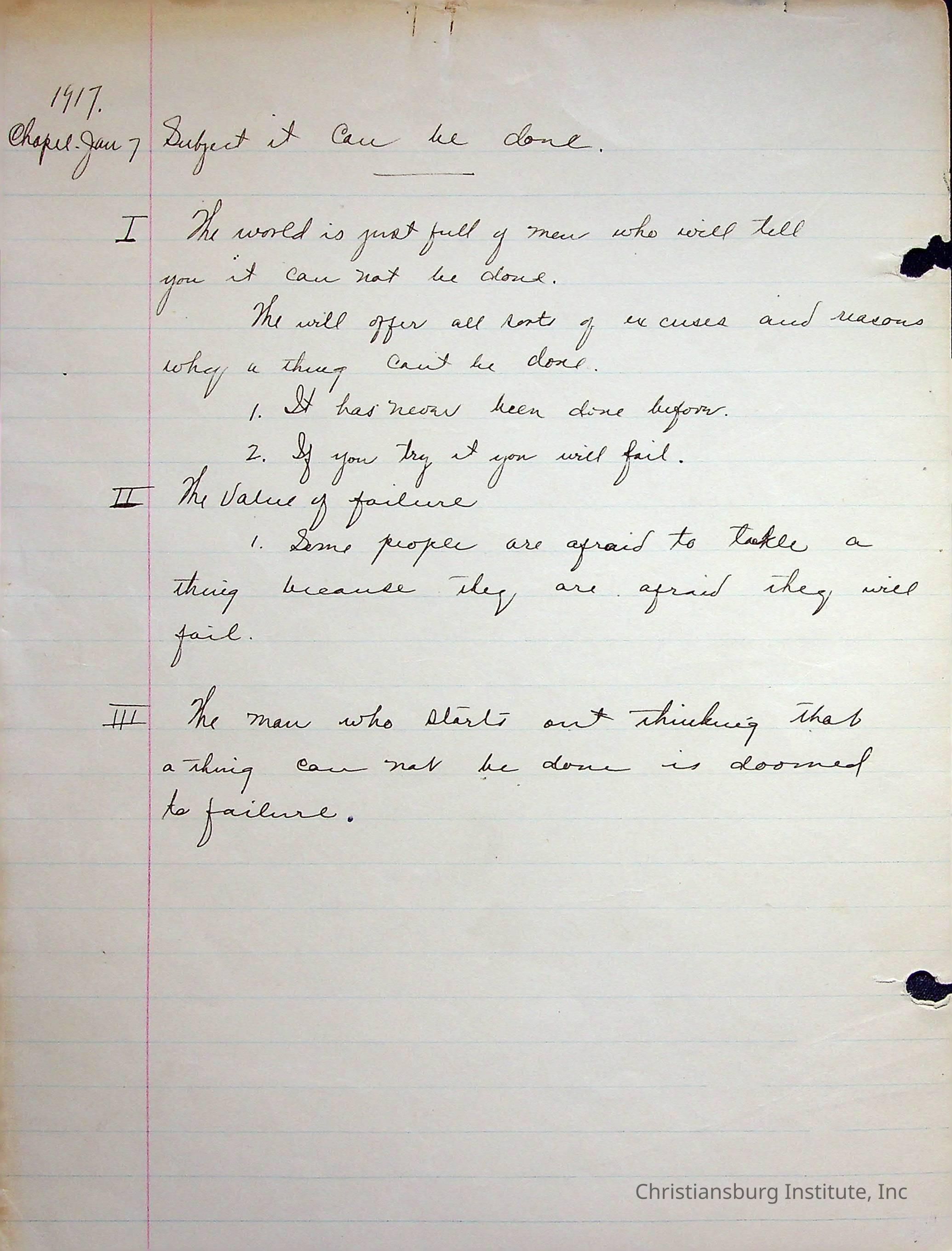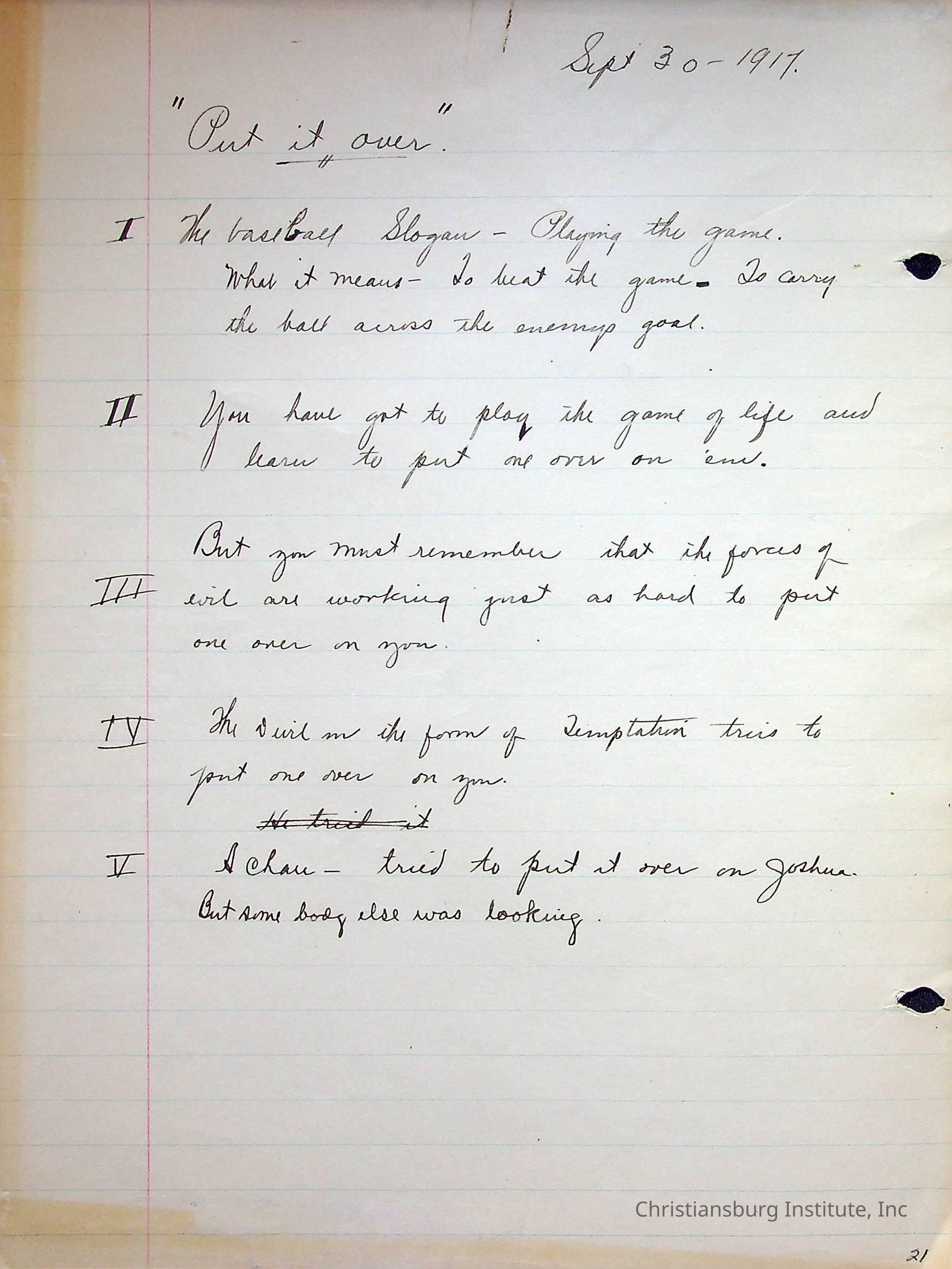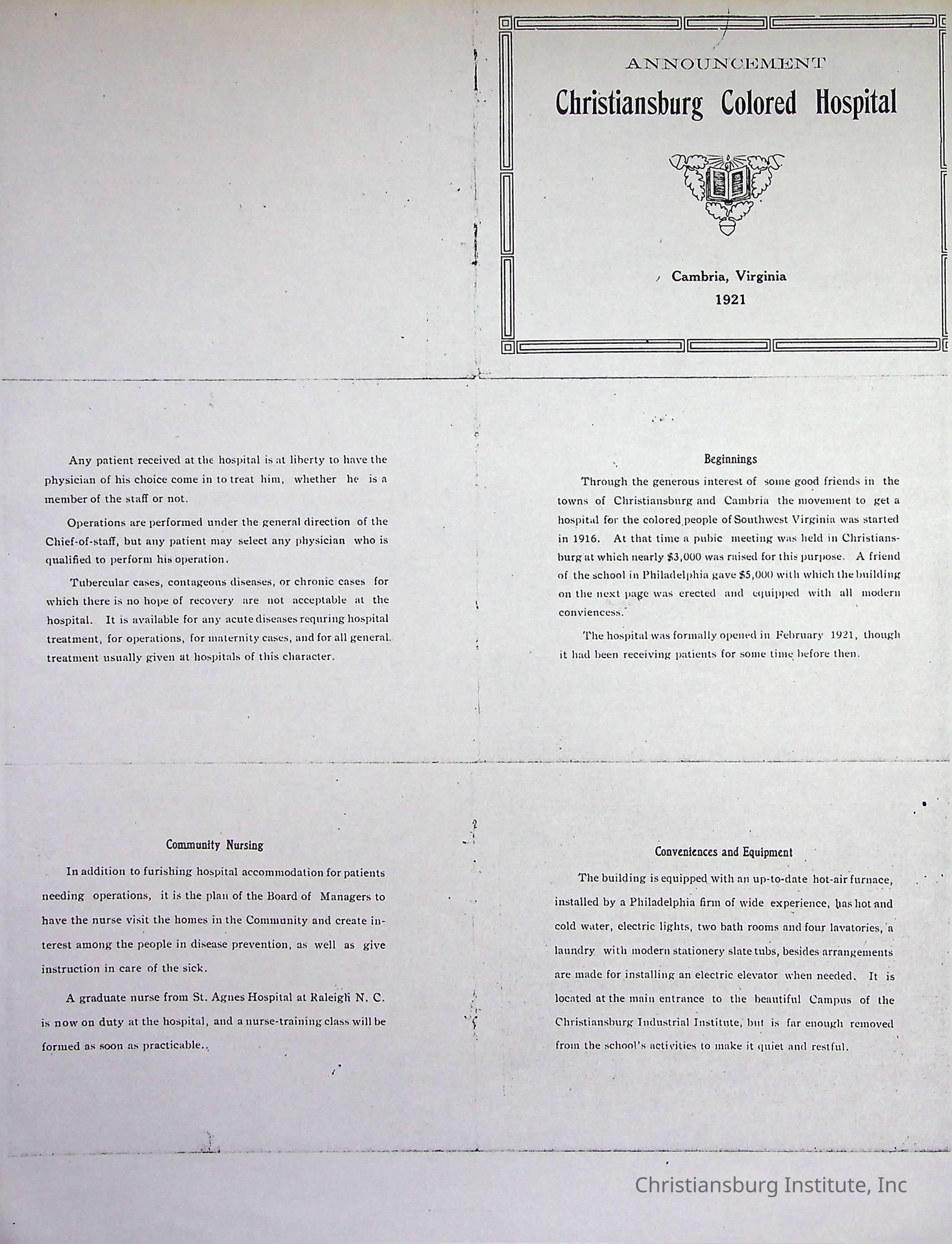 Copyright has been assigned to Christiansburg Institute Museum & Archives. For permission to publish materials created by the donor, contact CIMA@christiansburginstitute.com.