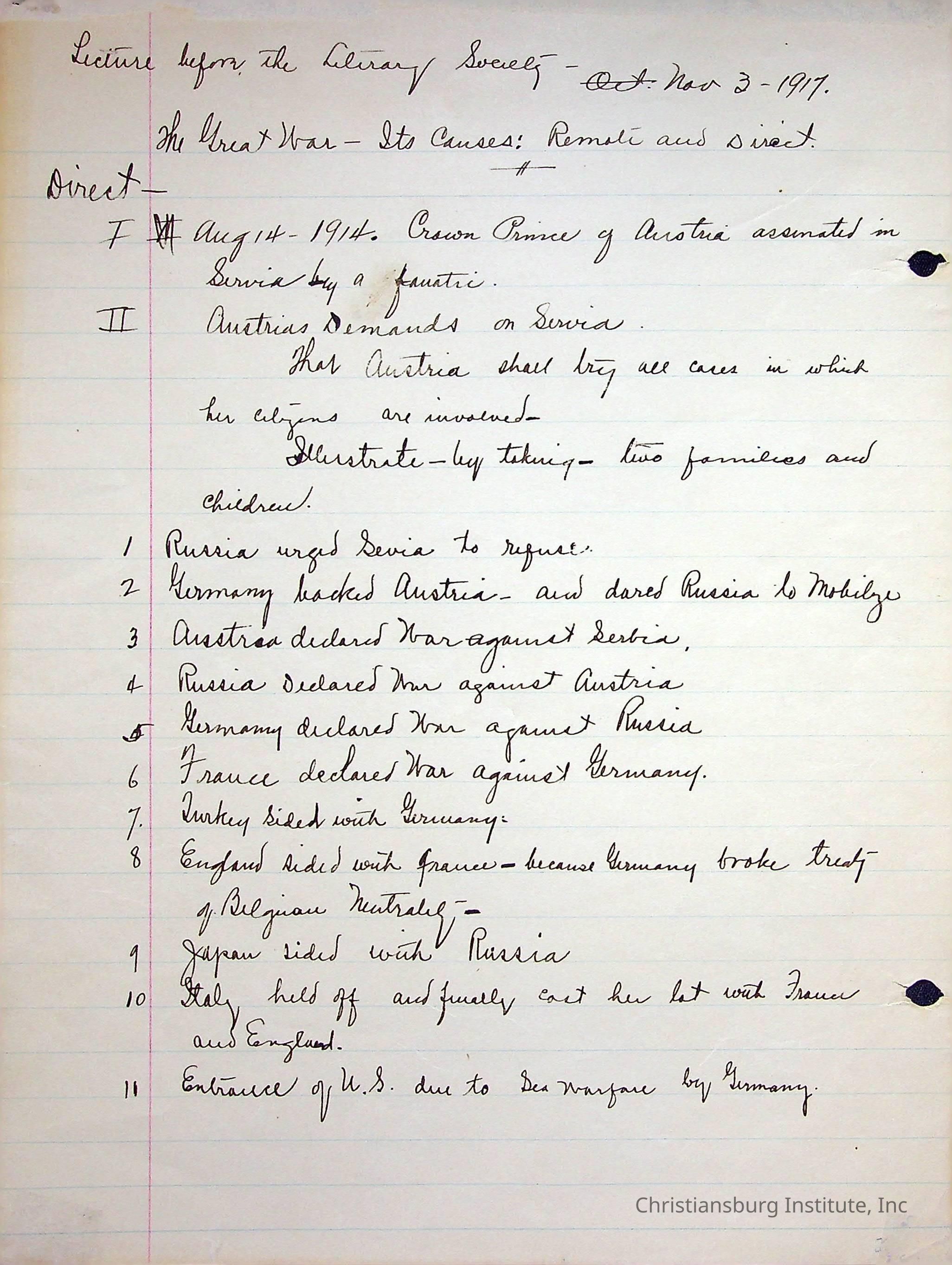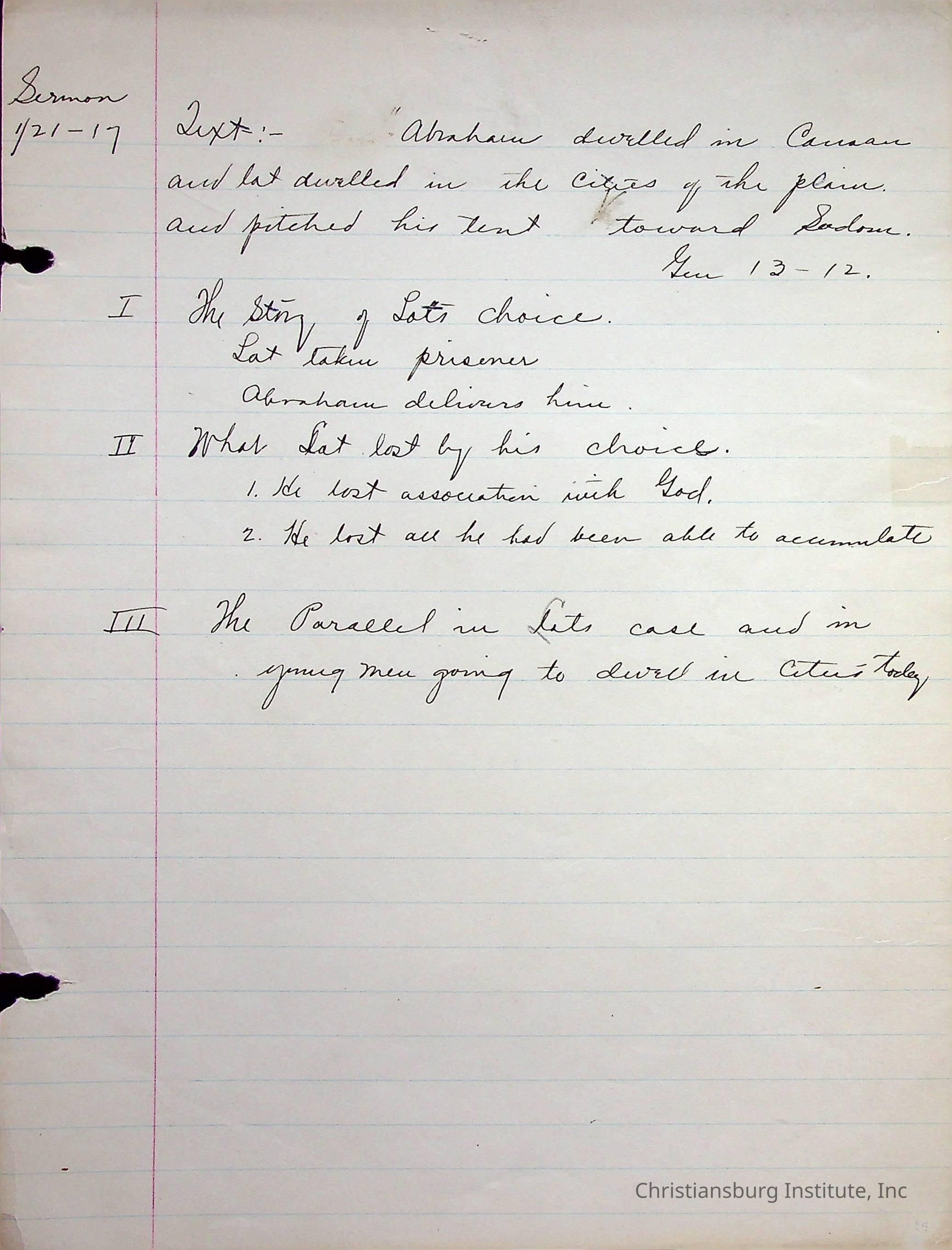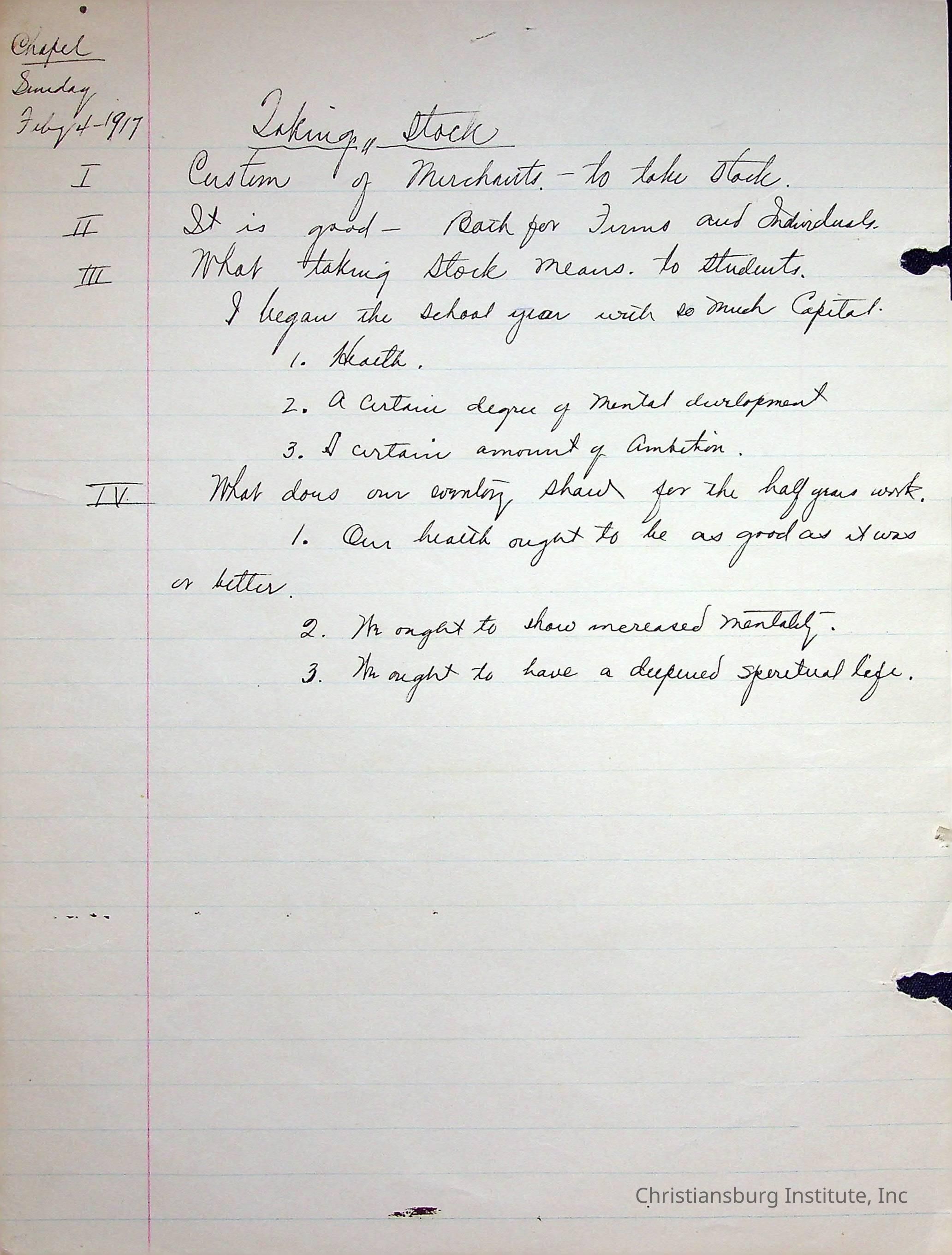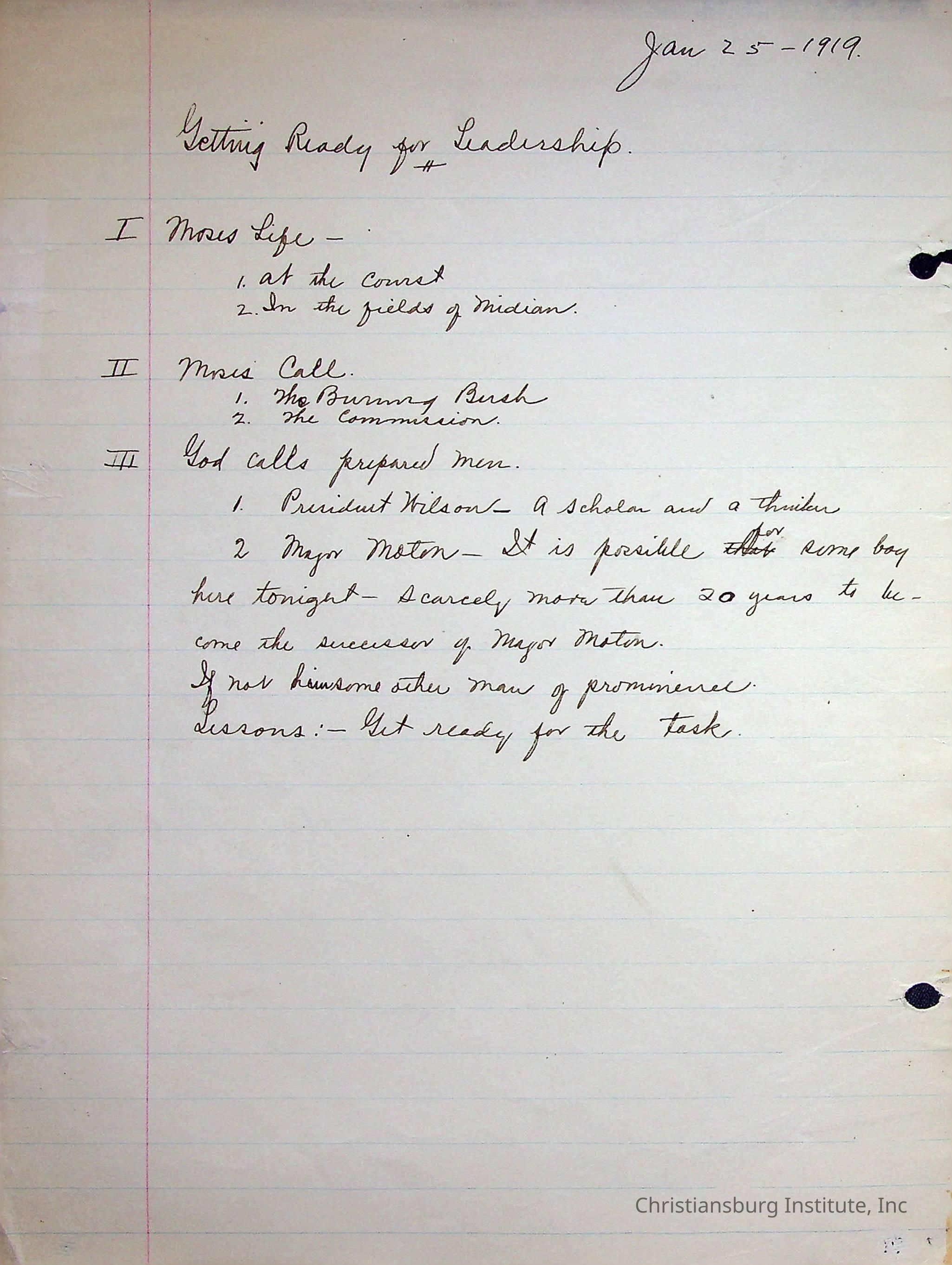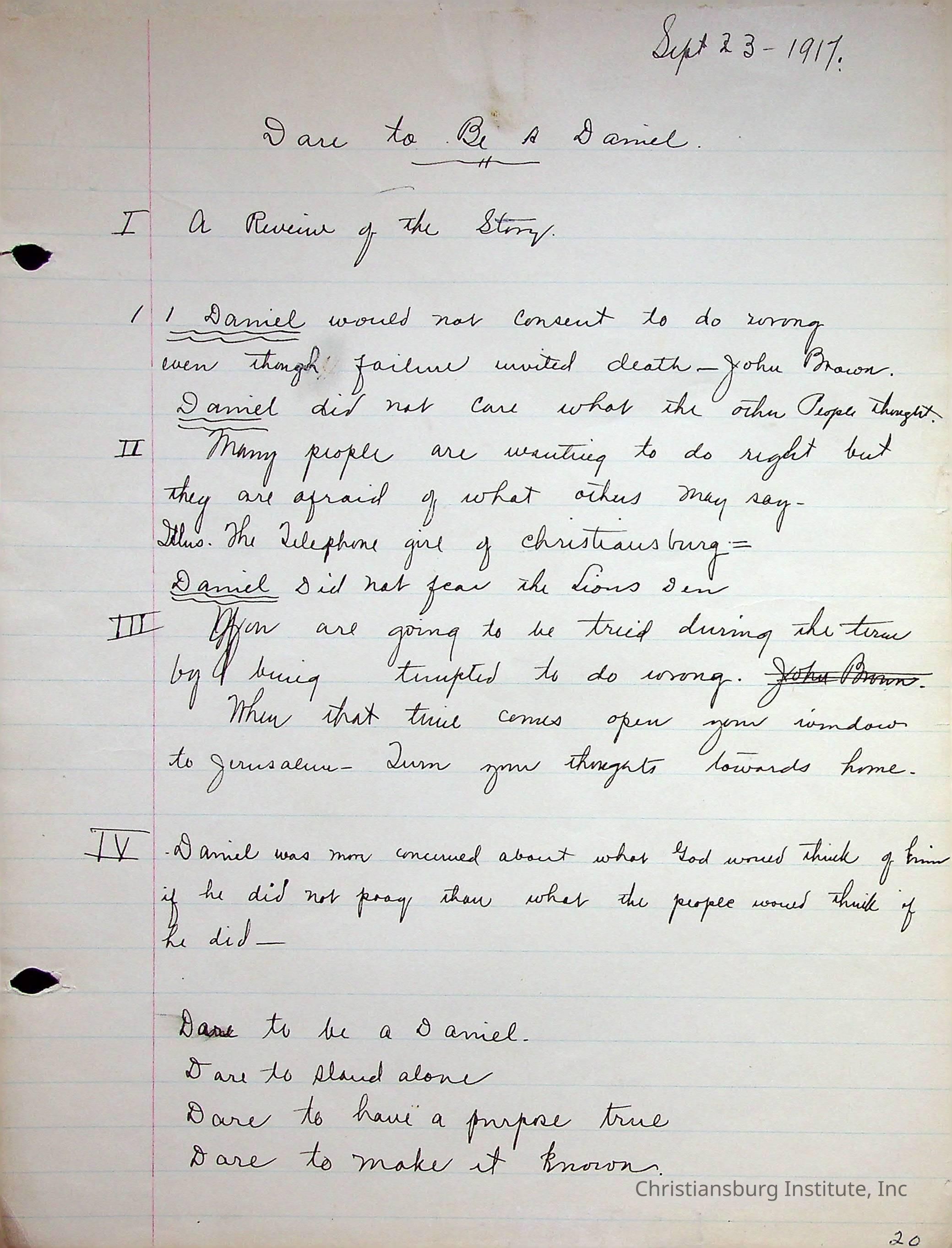 Edgar A. Long Papers: Chapter 4 Bible Lectures Section B. 1917-1921