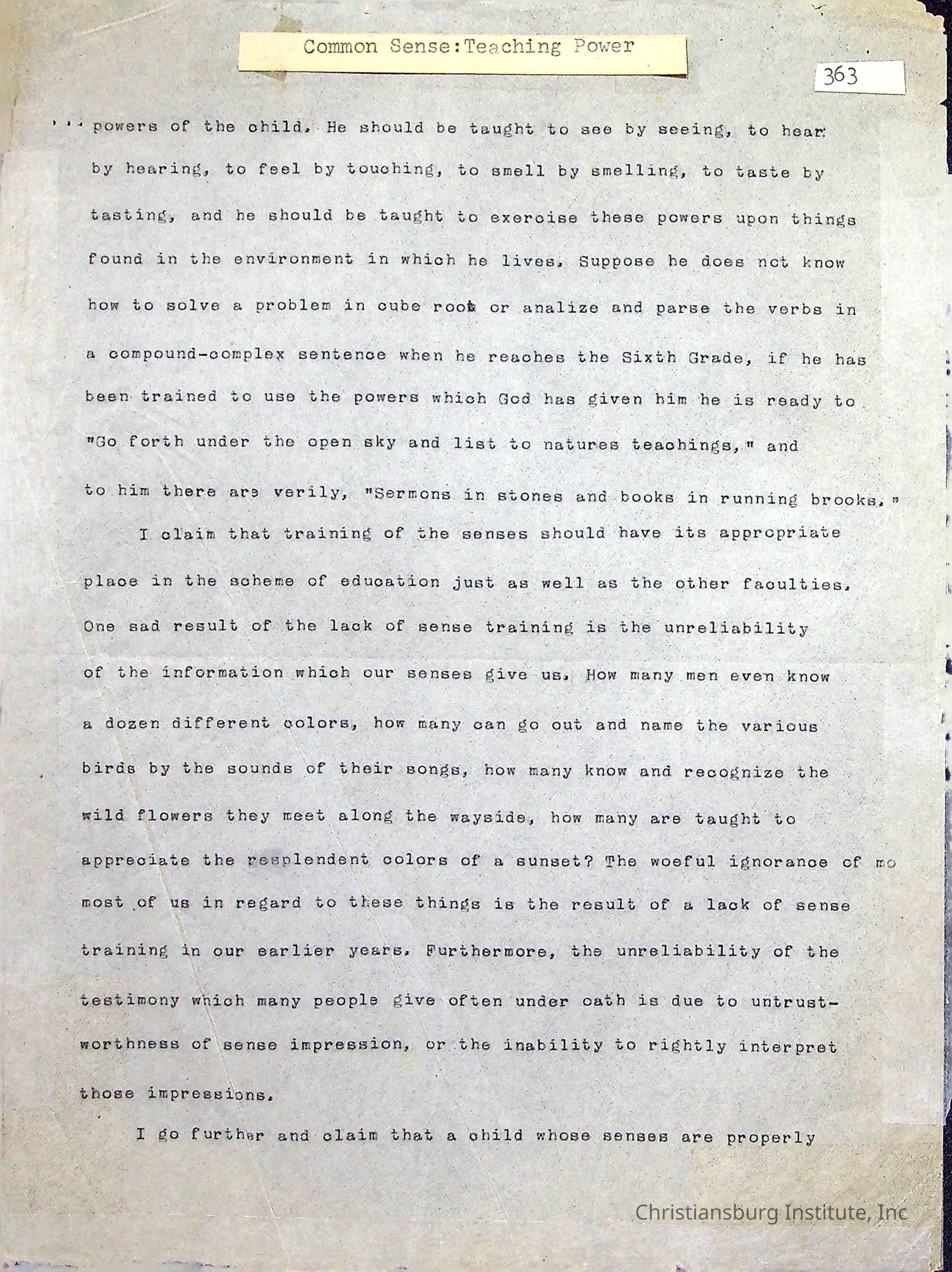 Edgar A. Long Papers: Chapter 8 Common Sense: Teaching Power (excerpts) and PrincipalsDescription