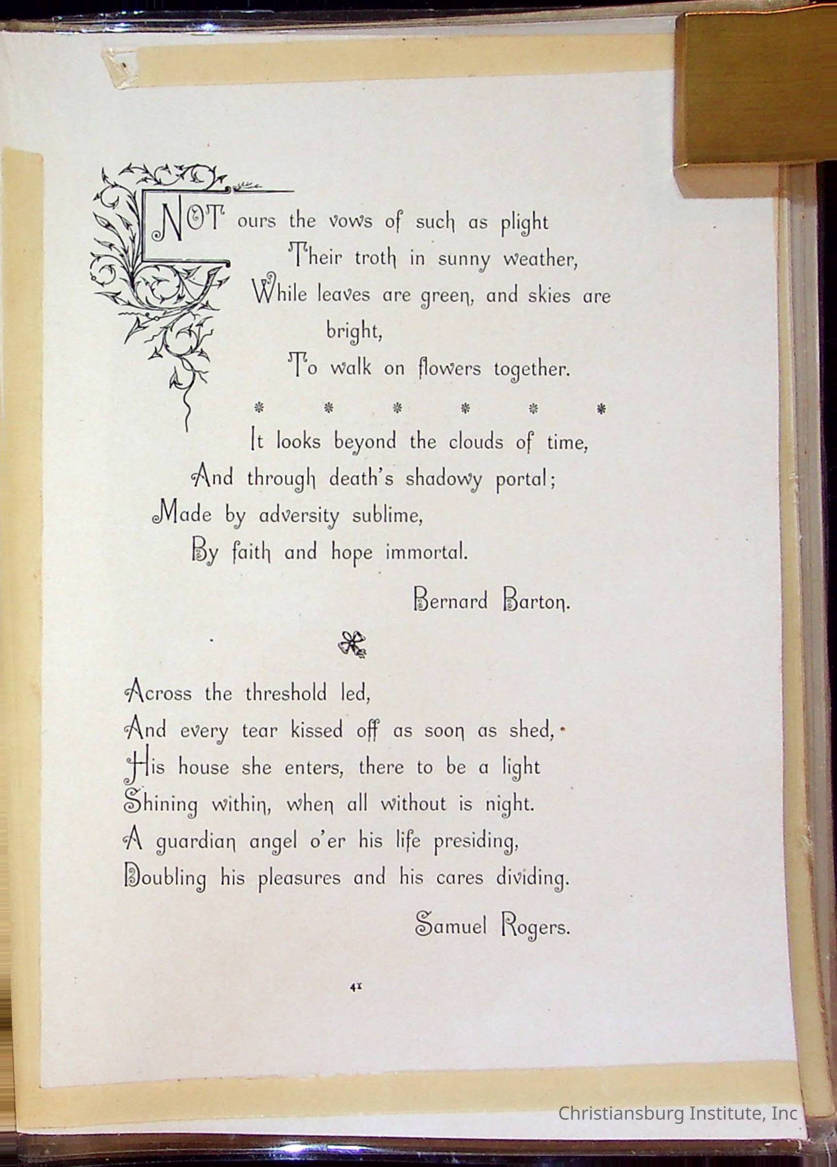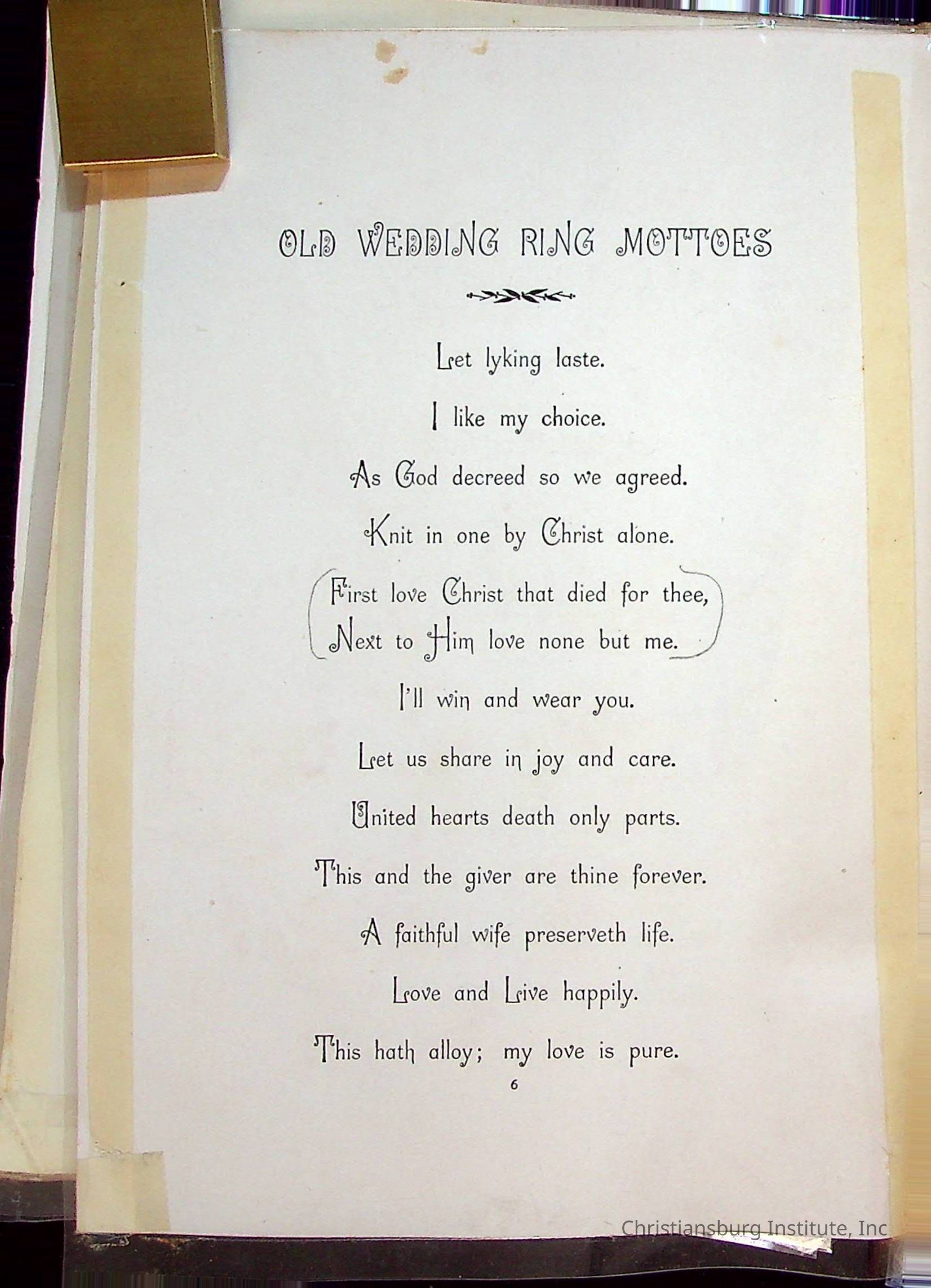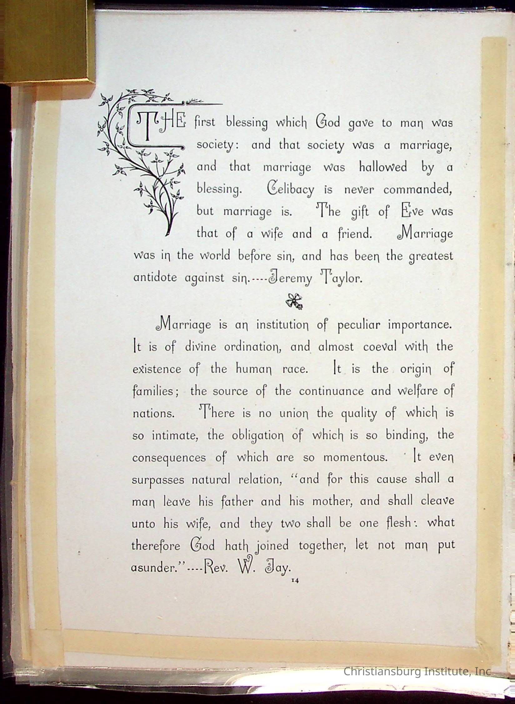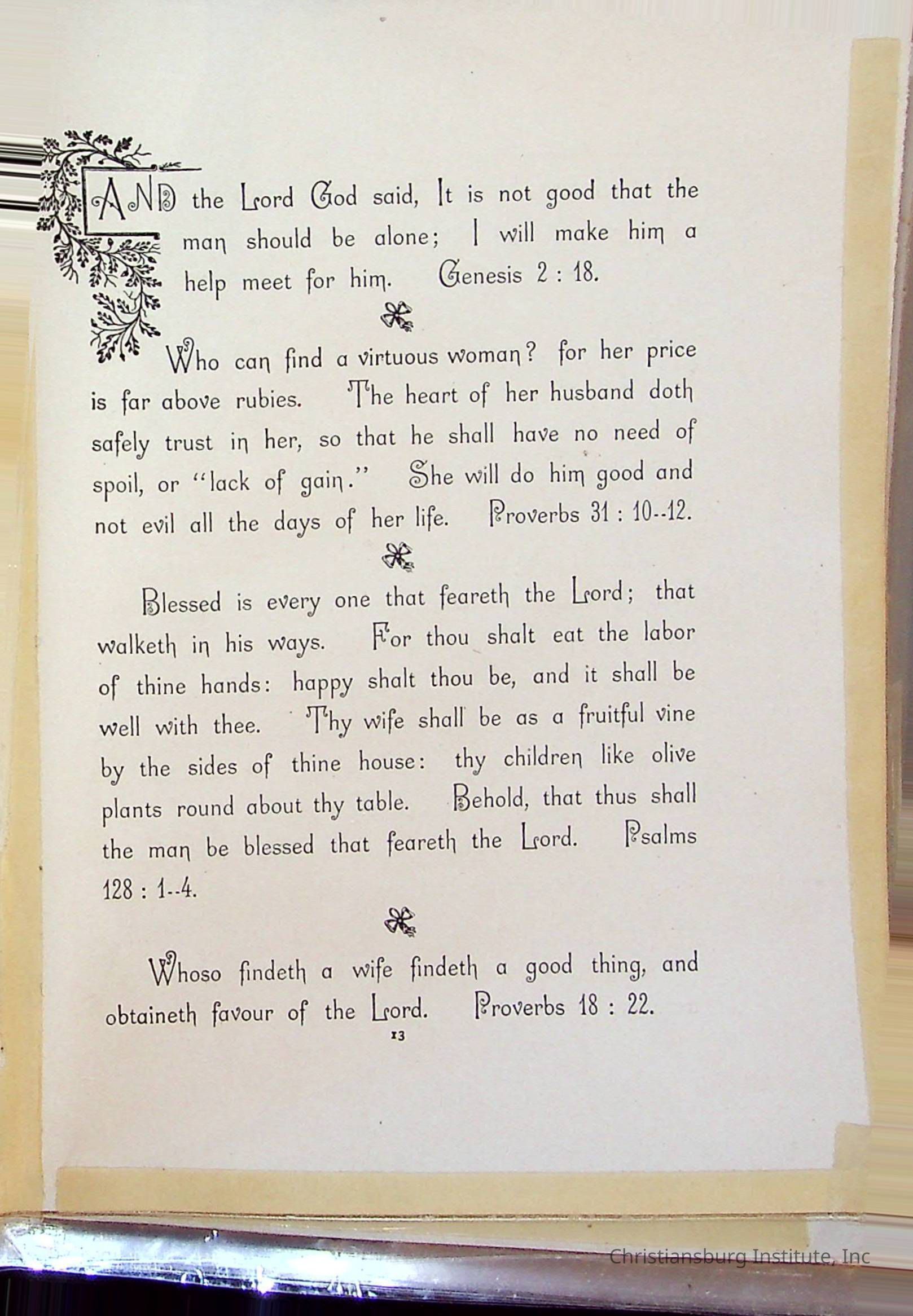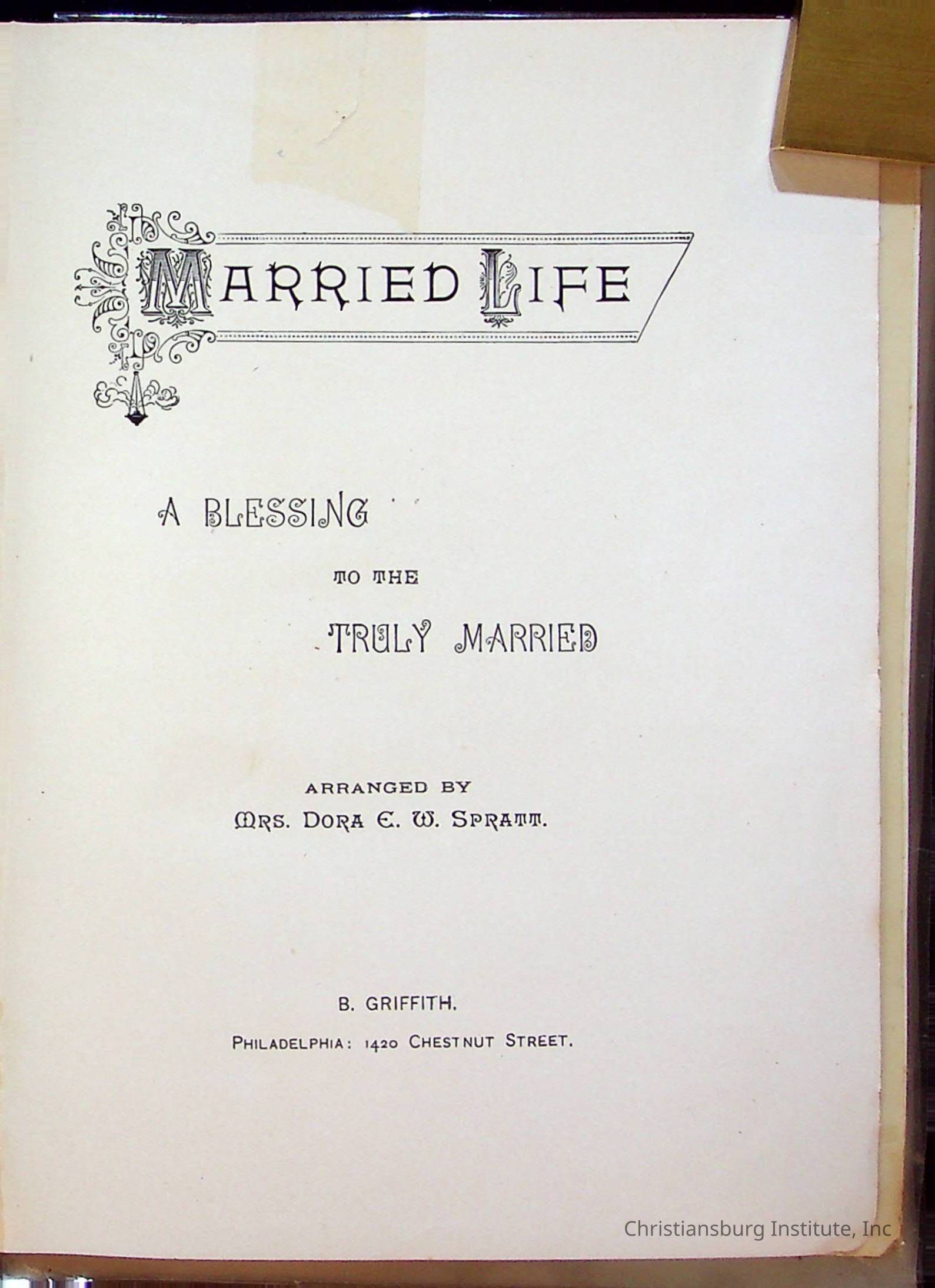 The wedding bible of Edgar A. Long and Anna L. Patterson who were married on December 23rd, 1897 in Christiansburg, Virginia. This wedding bible was arranged by Dora E. W. Spratt and published by B Griffith in the year 1893.