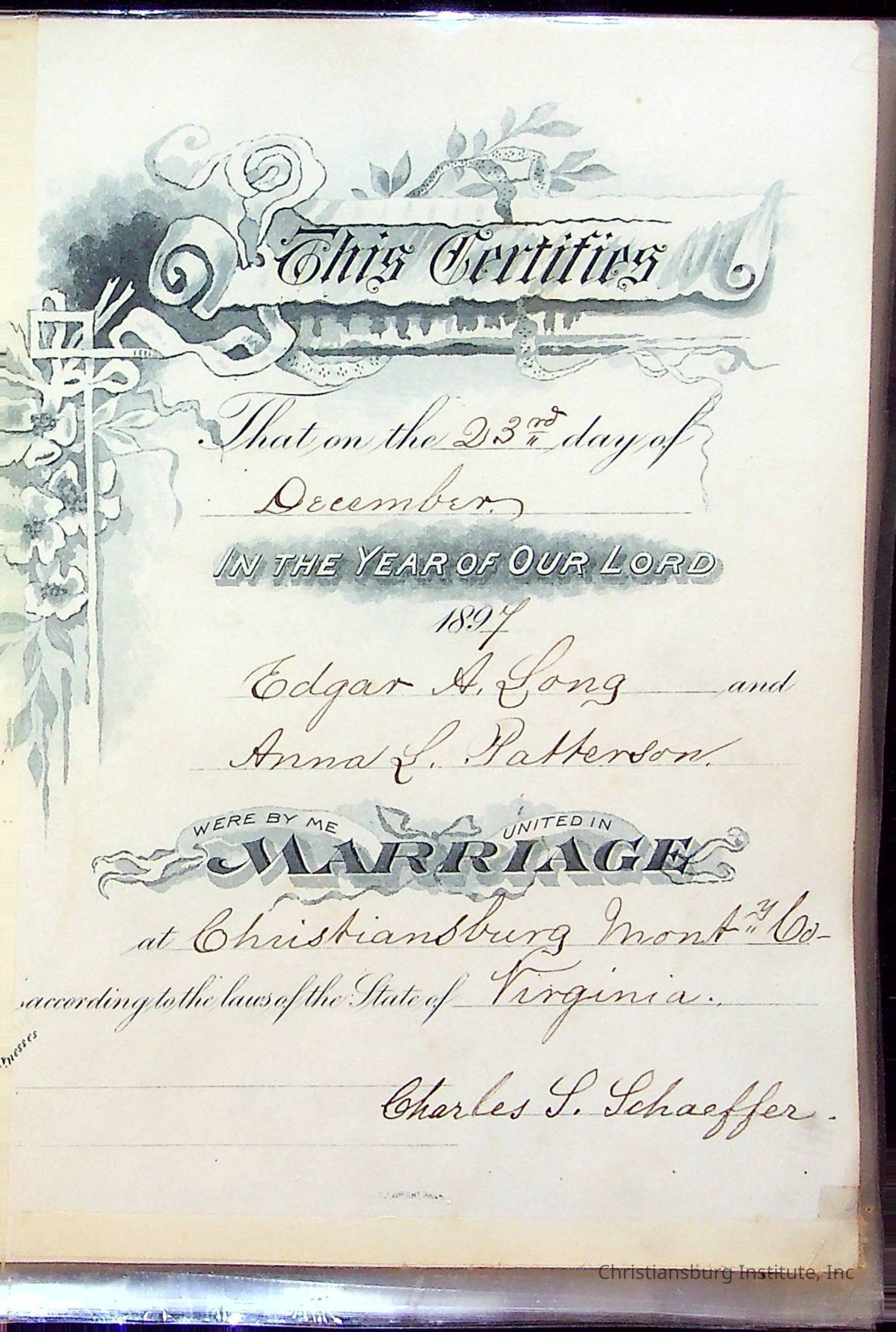 Edgar A. Long Wedding Bible, 1897