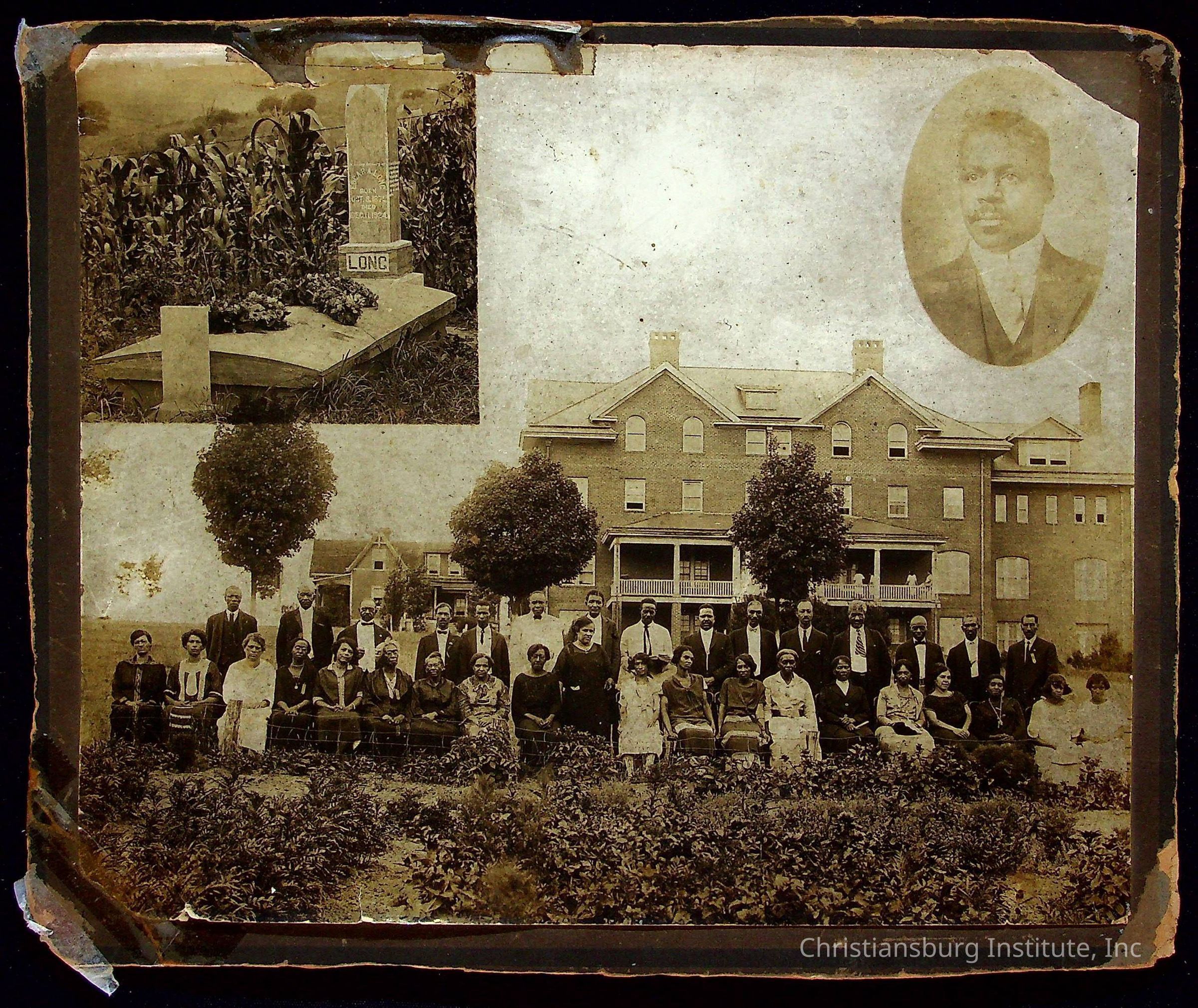 A photograph of Edgar A. Long's funeral and his grave at the Christiansburg Industrial Institute principal cemetery, undated.