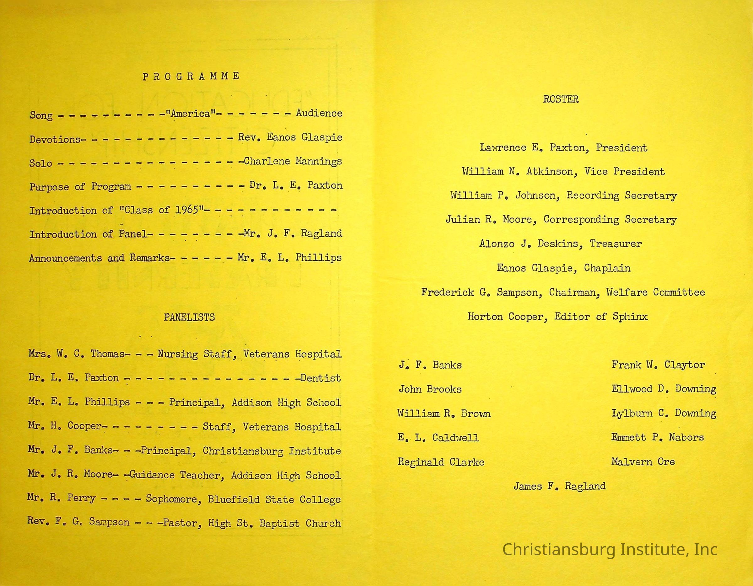 An event program for the "Education For Citizenship" Alpha Pi Alpha event at Lucy Addison High School in Roanoke, Virginia on April 24th, 1959.Creator