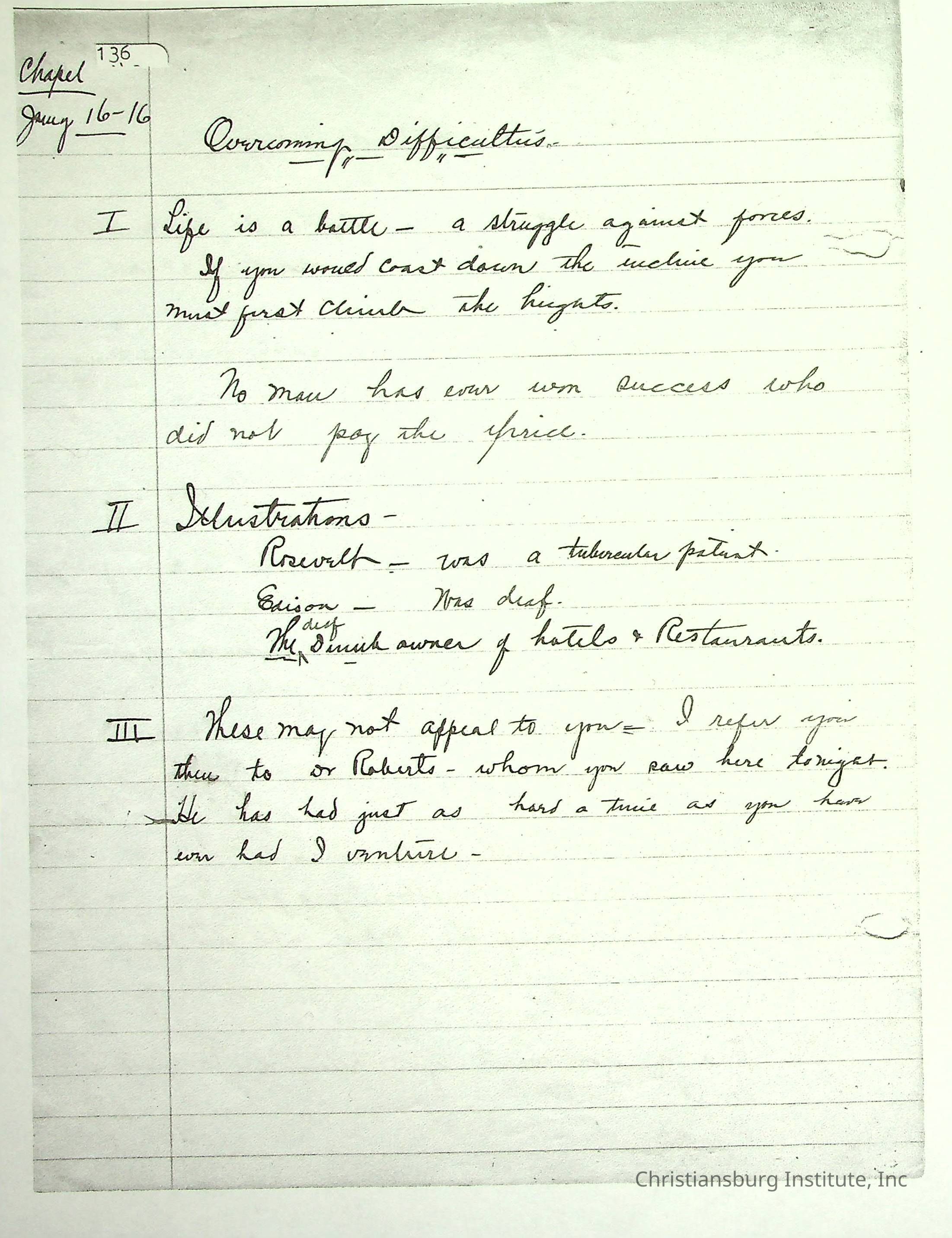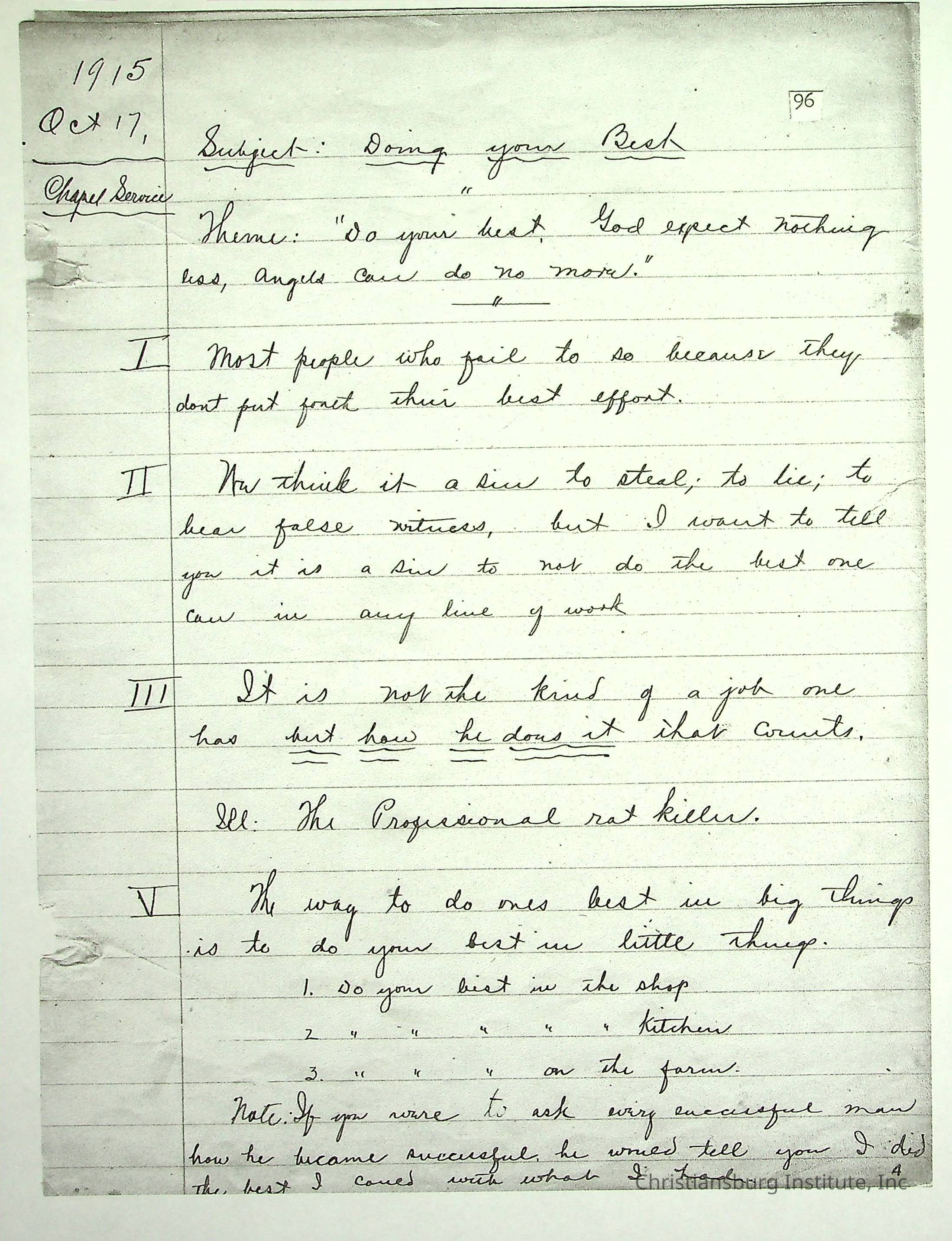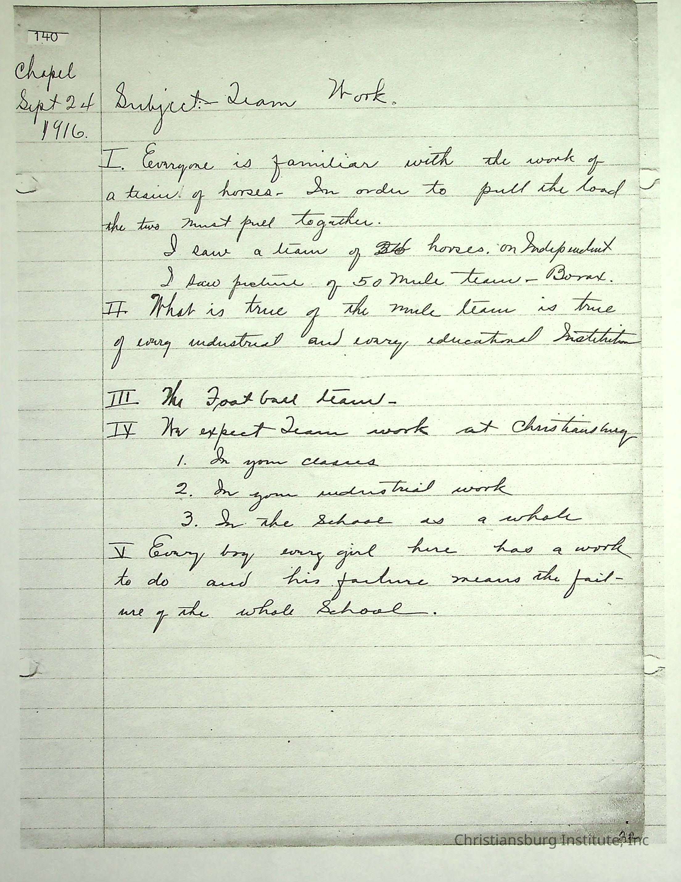 Copyright has been assigned to Christiansburg Institute Museum & Archives. For permission to publish materials created by the donor, contact CIMA@christiansburginstitute.com. Materials not created by Christiansburg Institute Museum and Archives may still be under copyright.