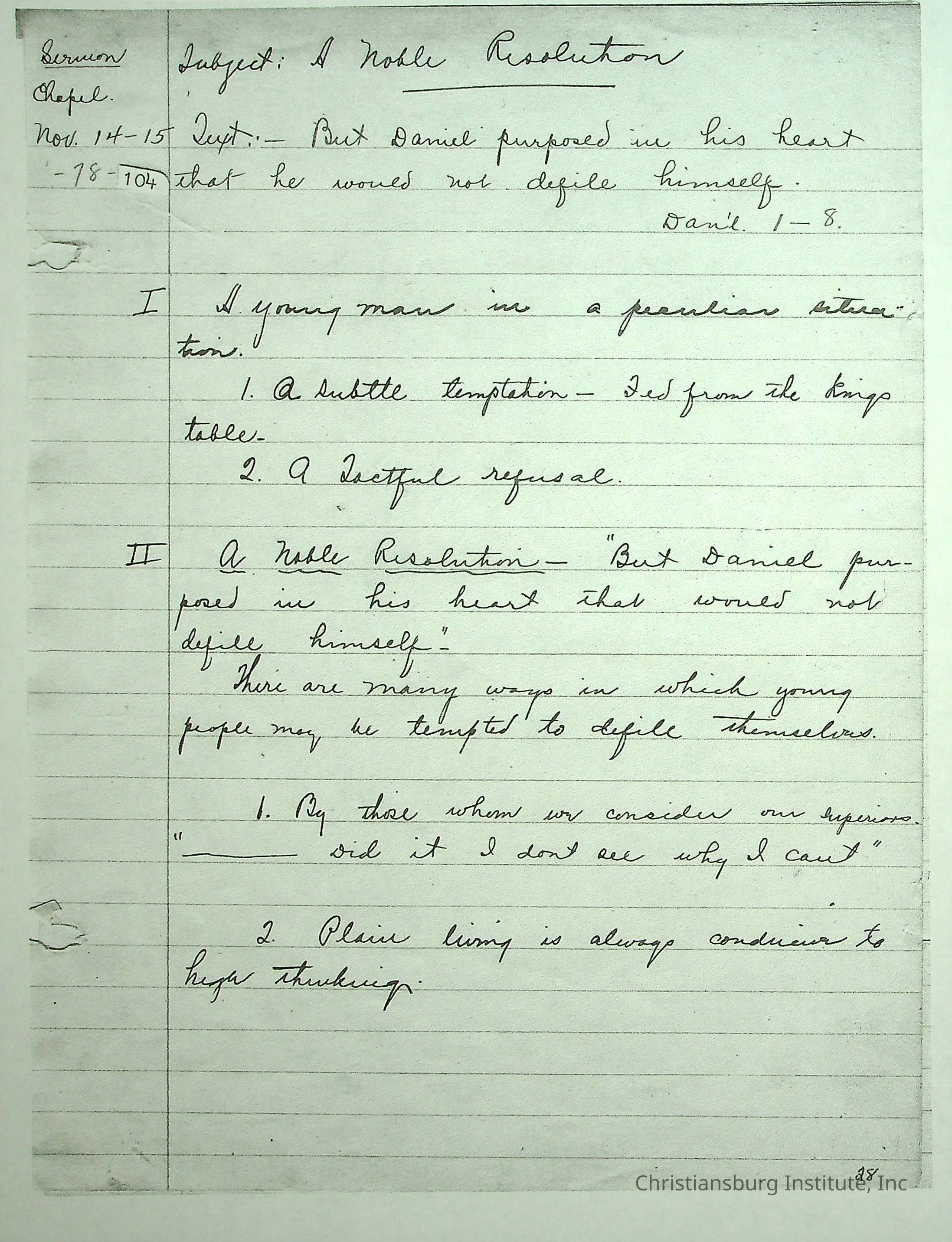 Bible Lectures, Edgar A. Long, 1915 (photocopy)Scope and Content