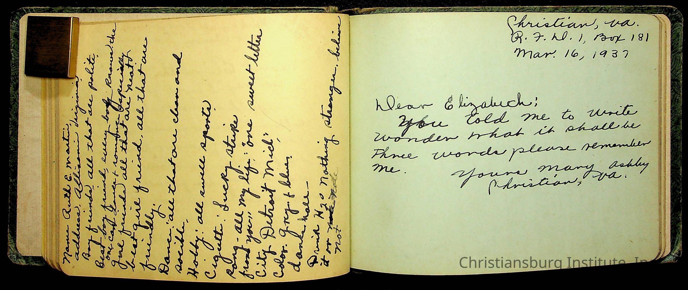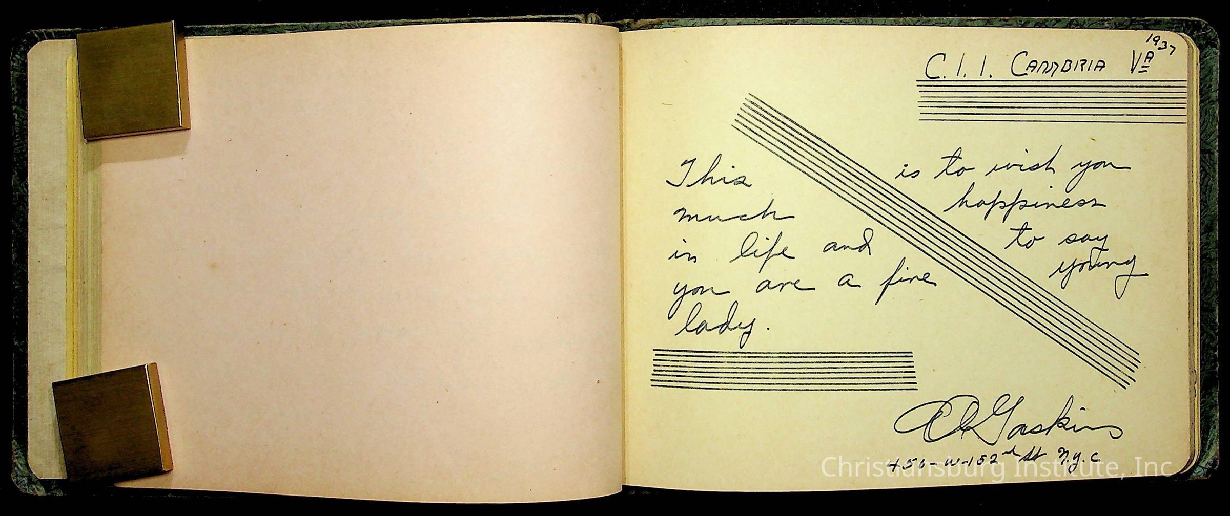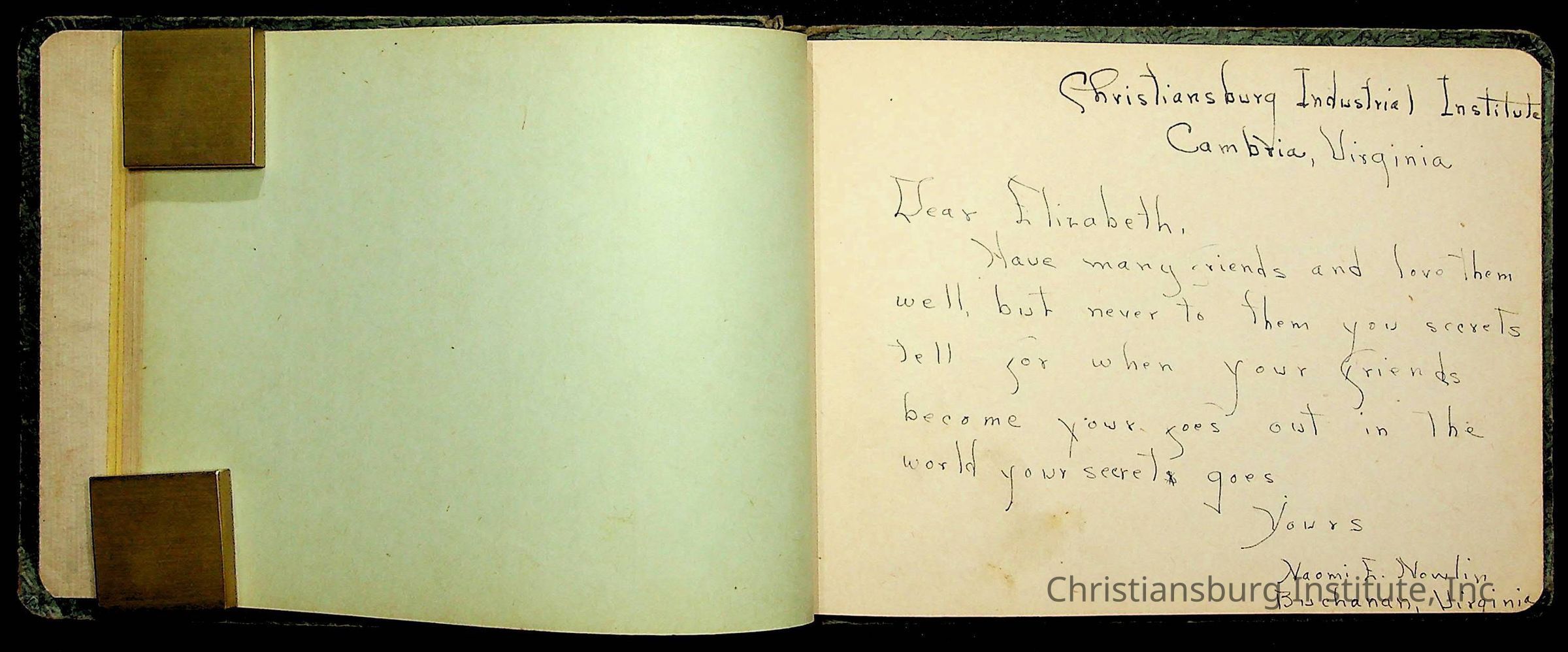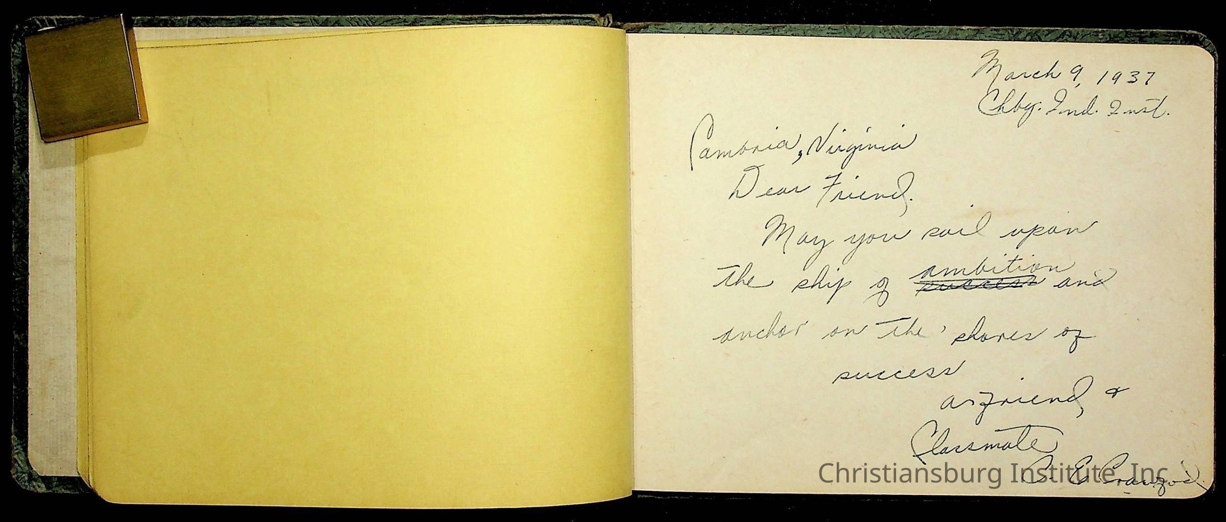 A Christiansburg Industrial Institute autograph book for Elizabeth Toliver, class of 1937.