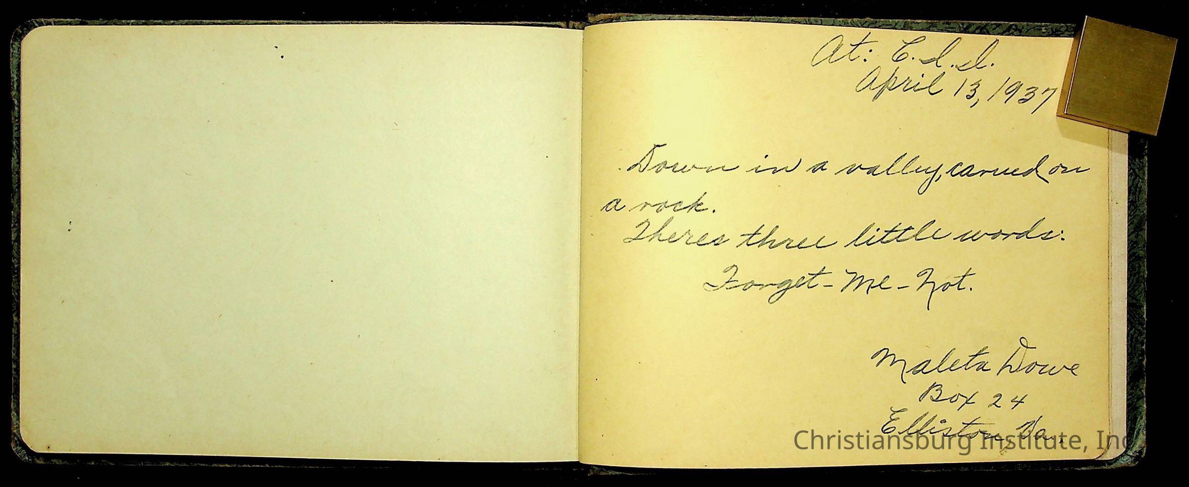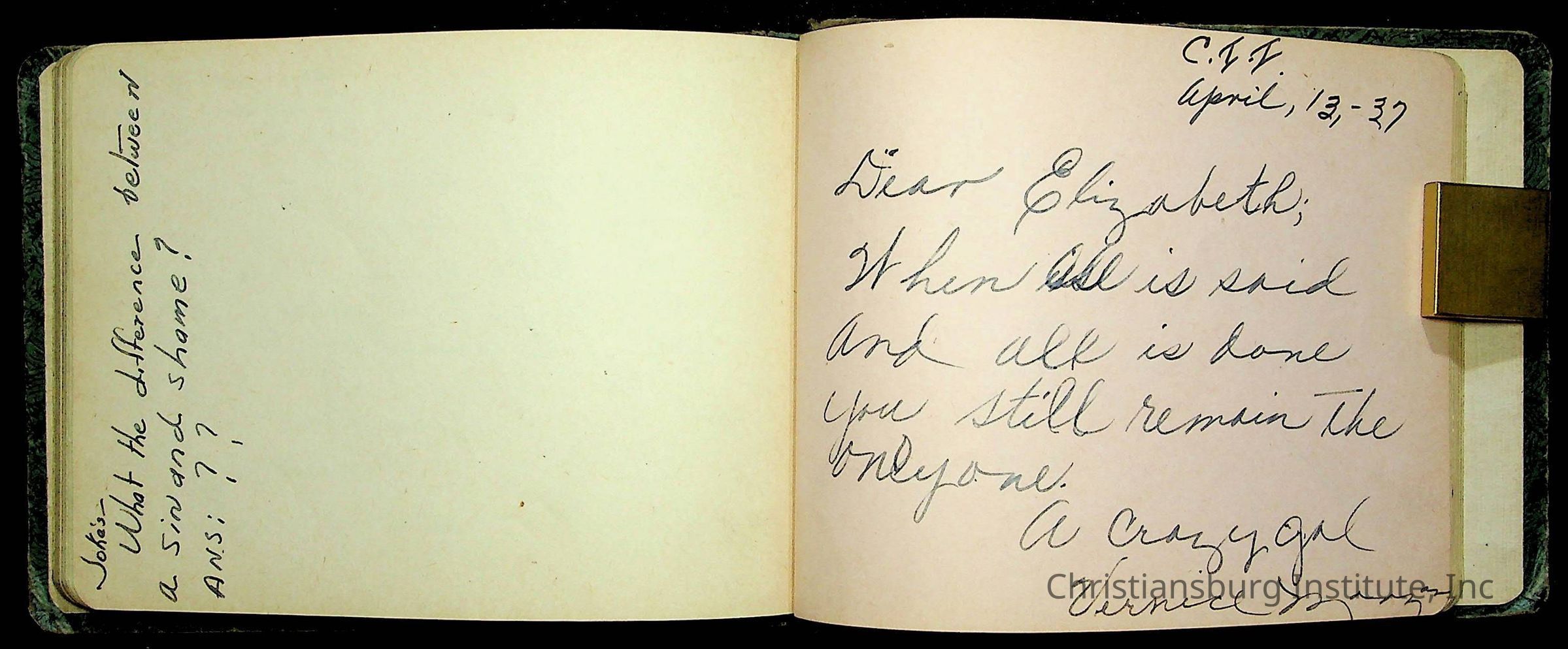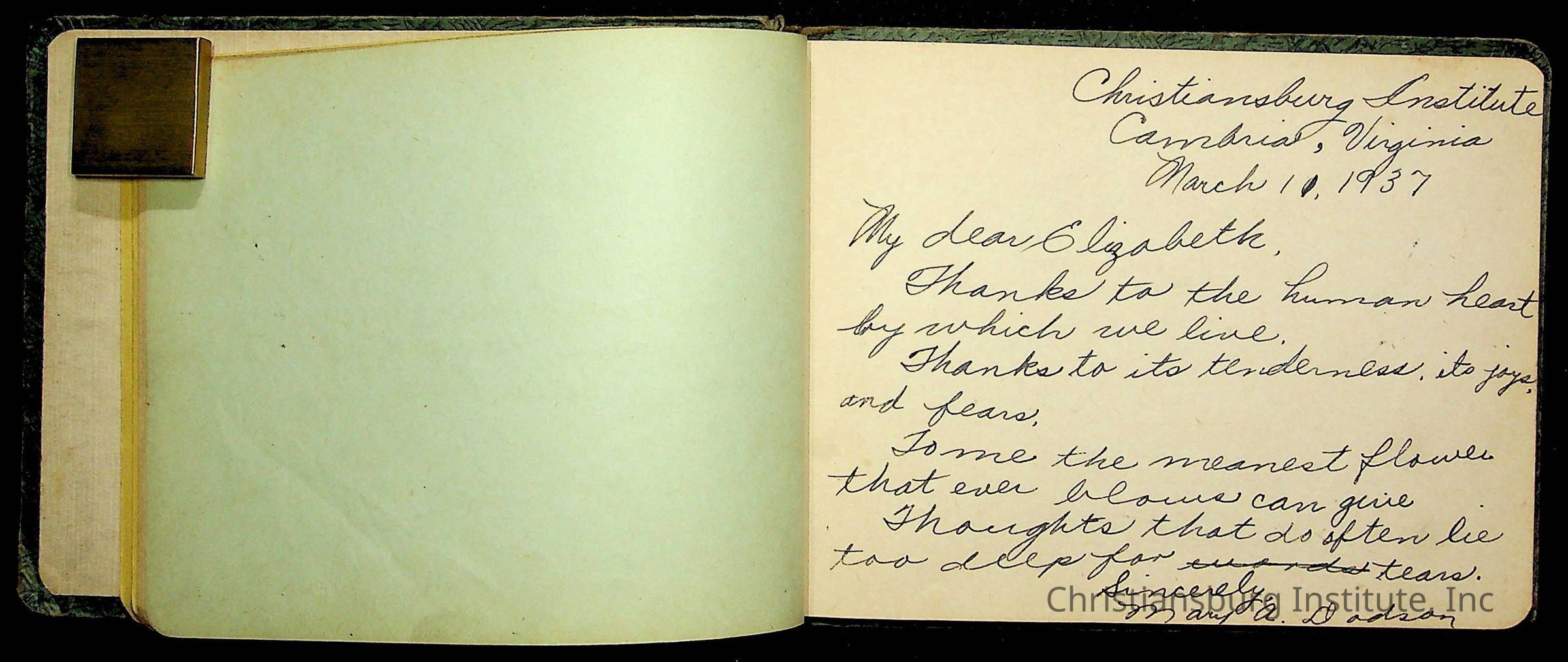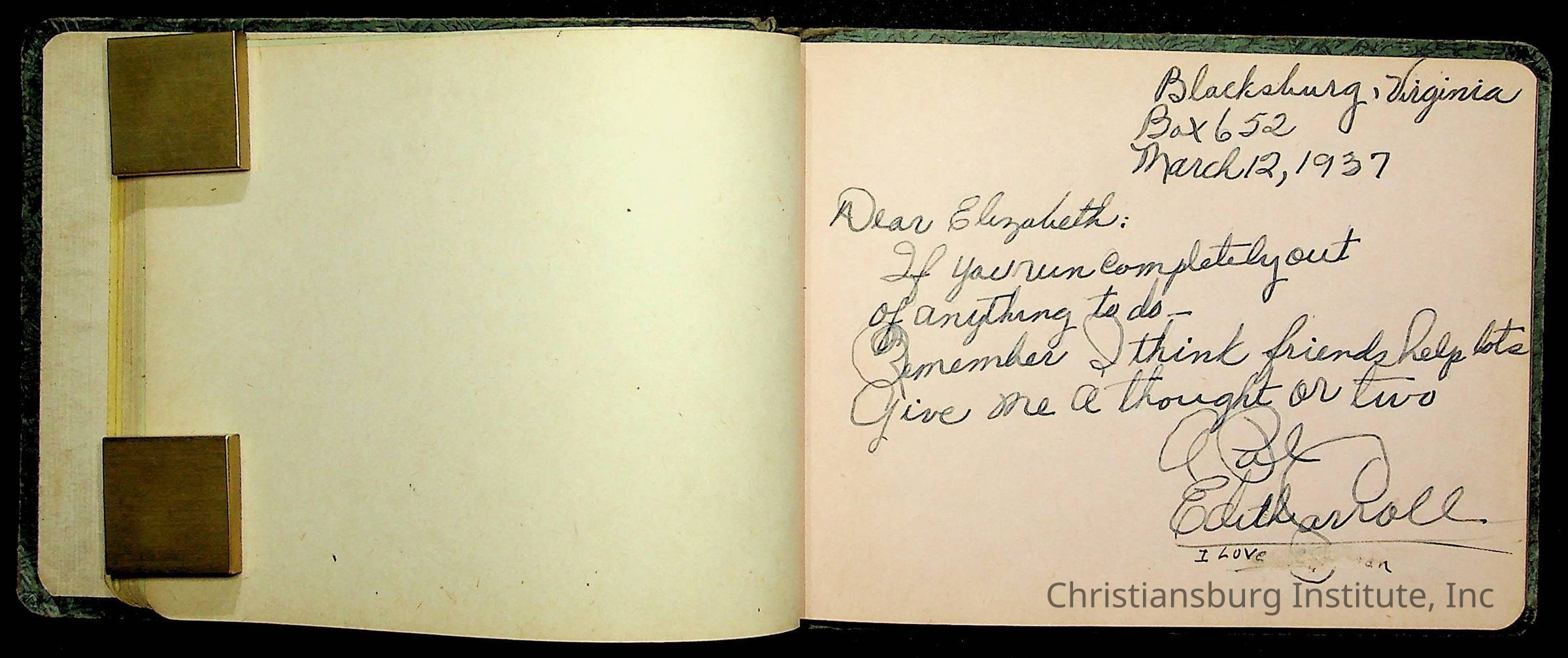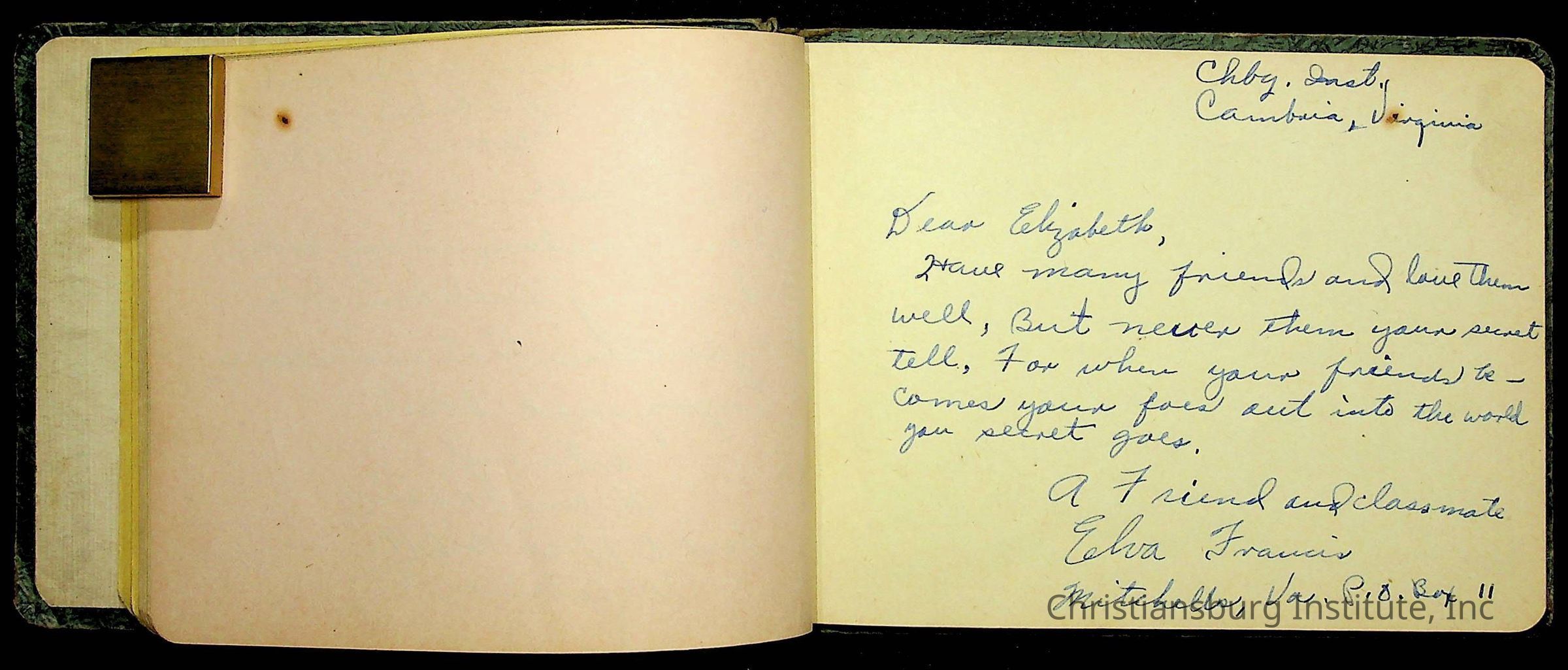 A Christiansburg Industrial Institute autograph book for Elizabeth Toliver, class of 1937.