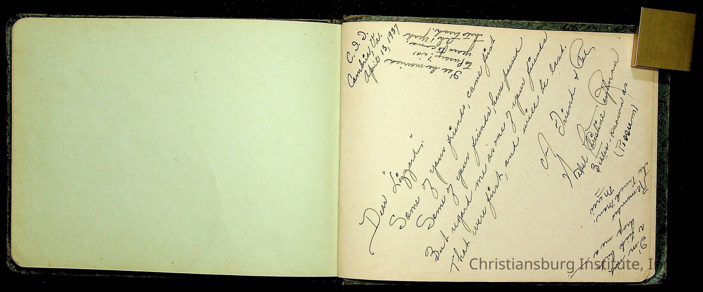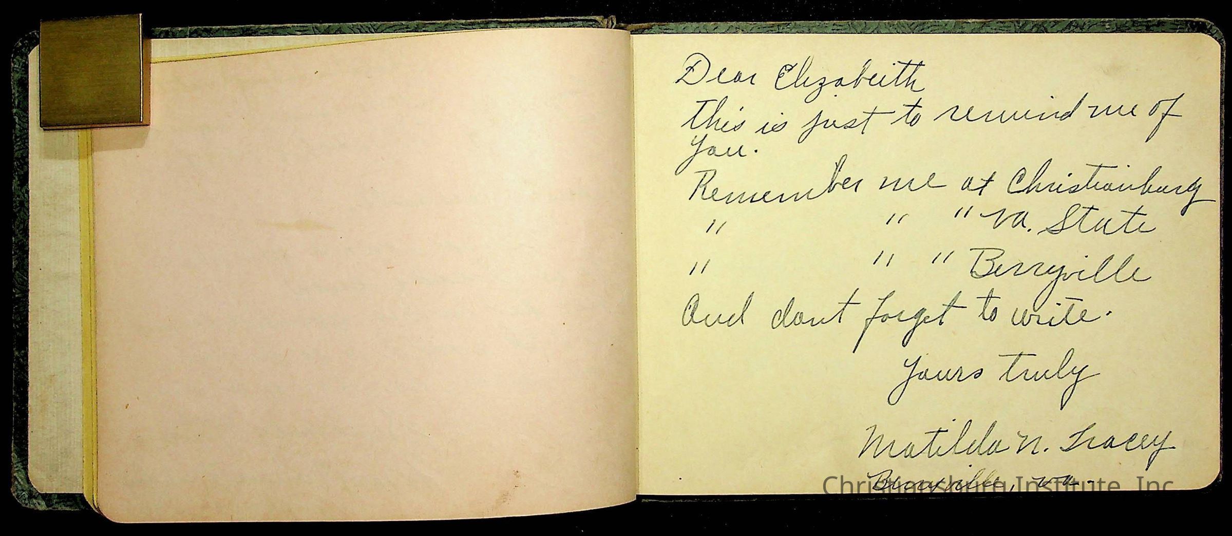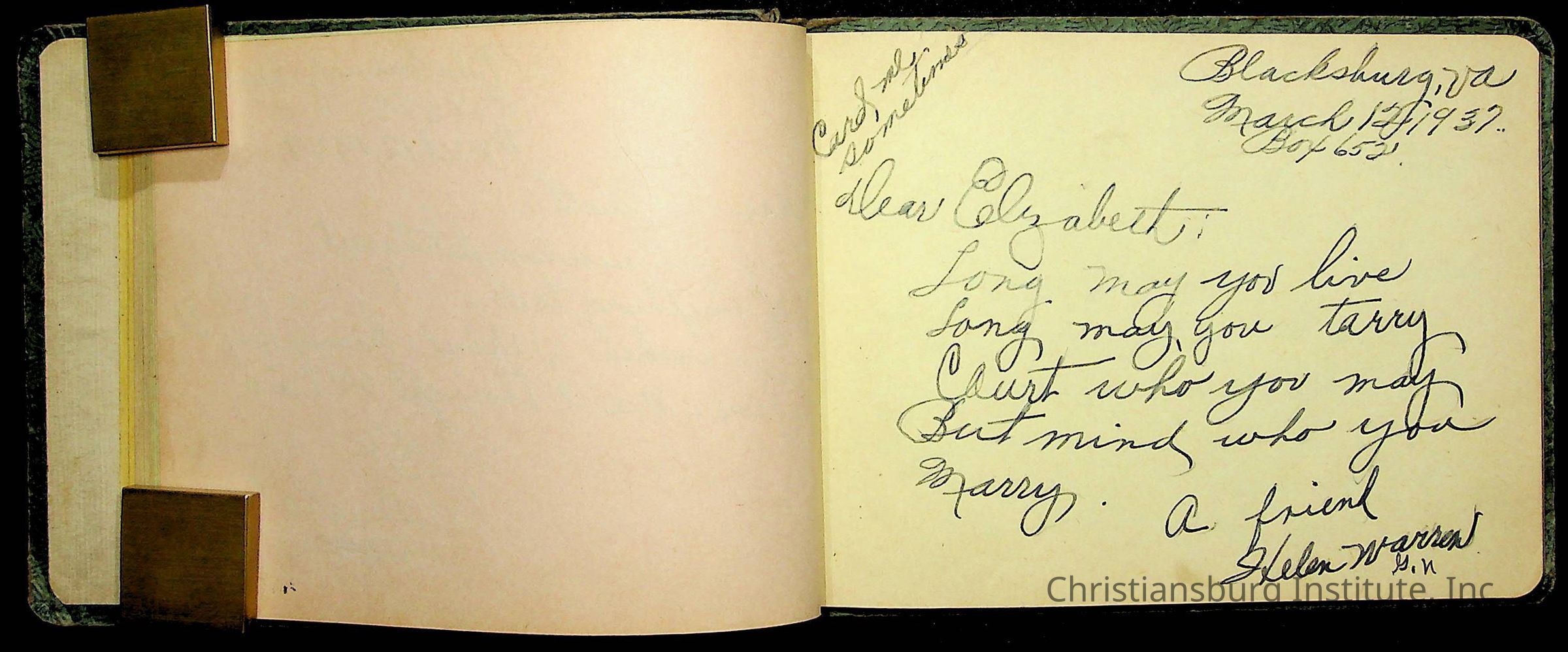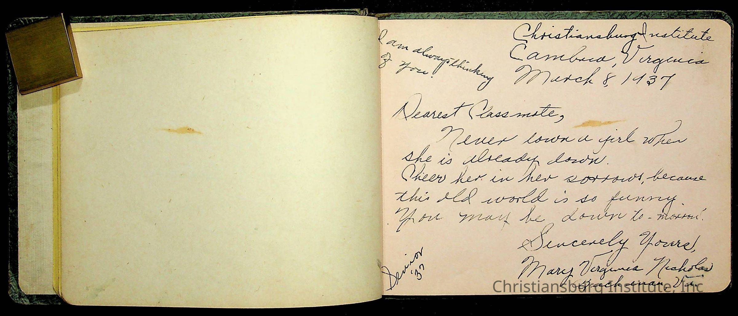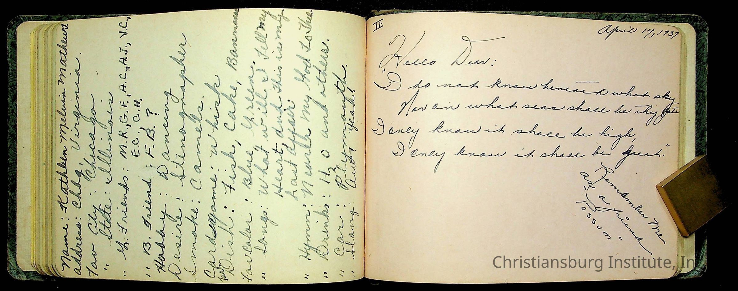 A Christiansburg Industrial Institute autograph book for Elizabeth Toliver, class of 1937.