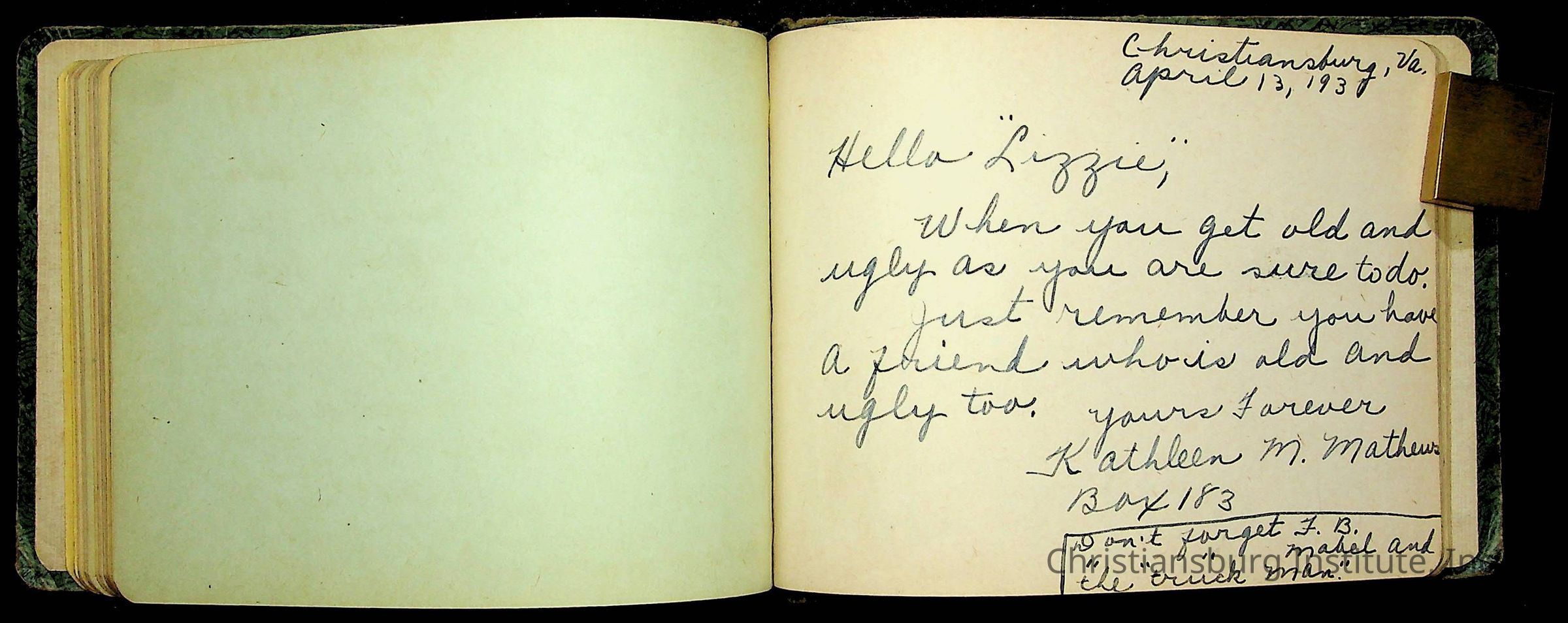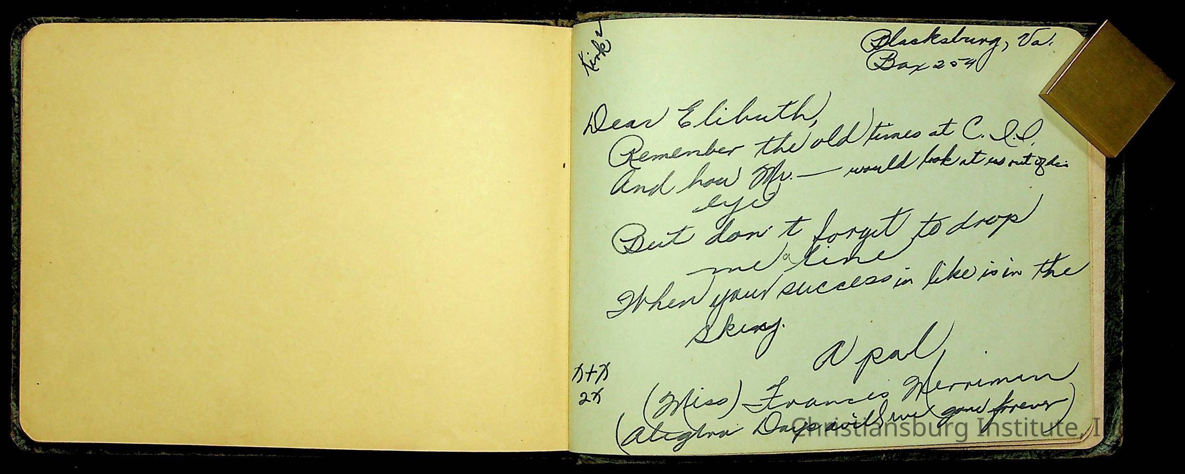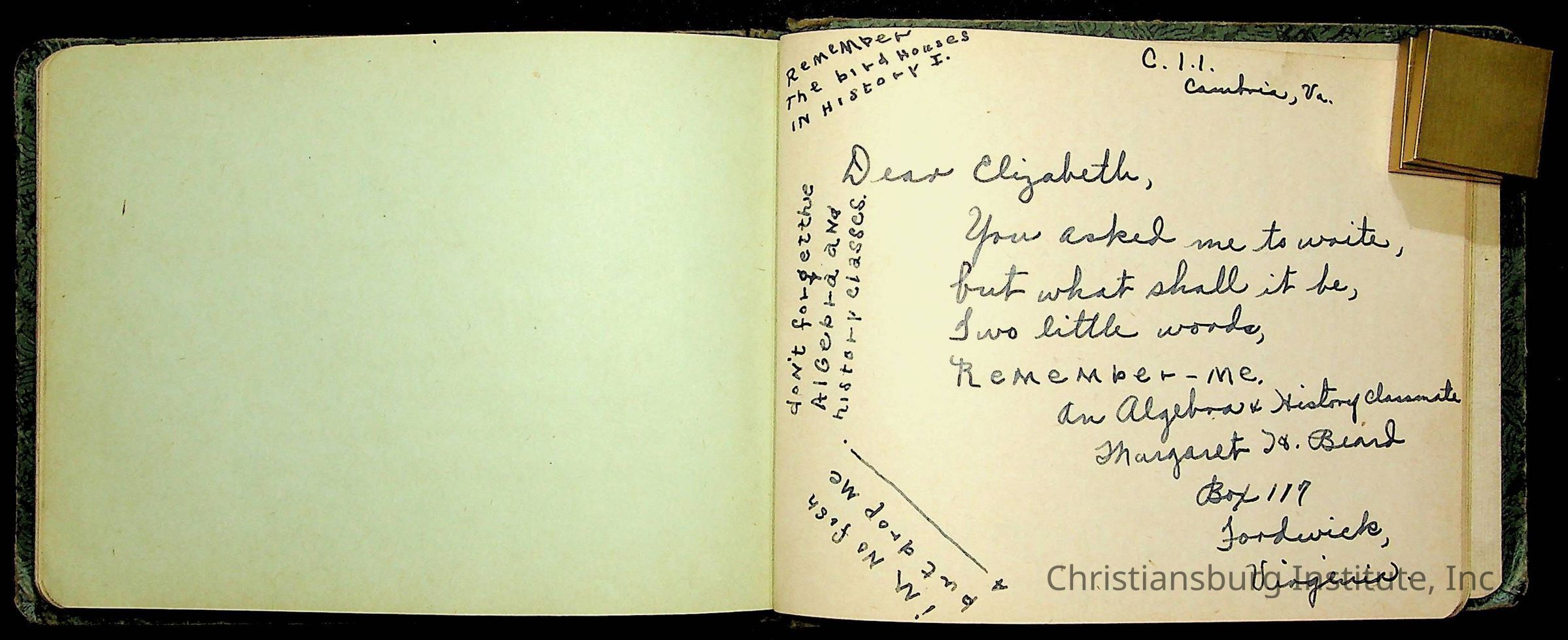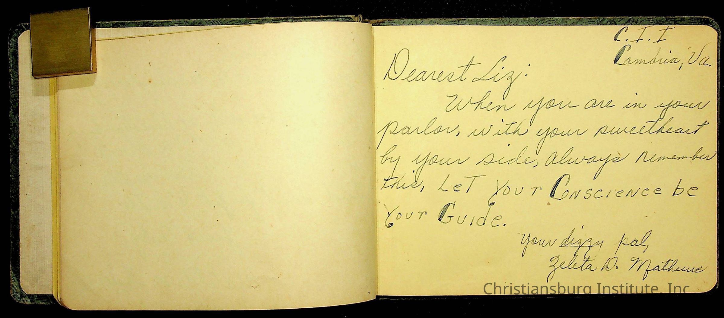 A Christiansburg Industrial Institute autograph book for Elizabeth Toliver, class of 1937.
