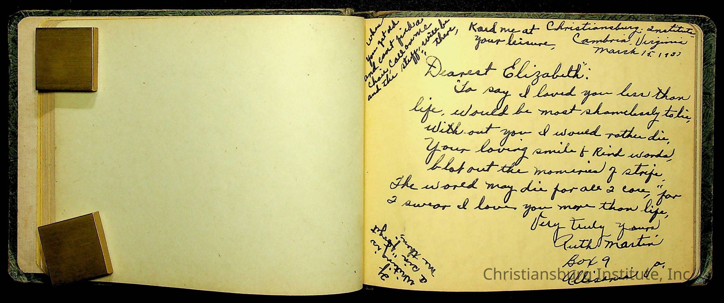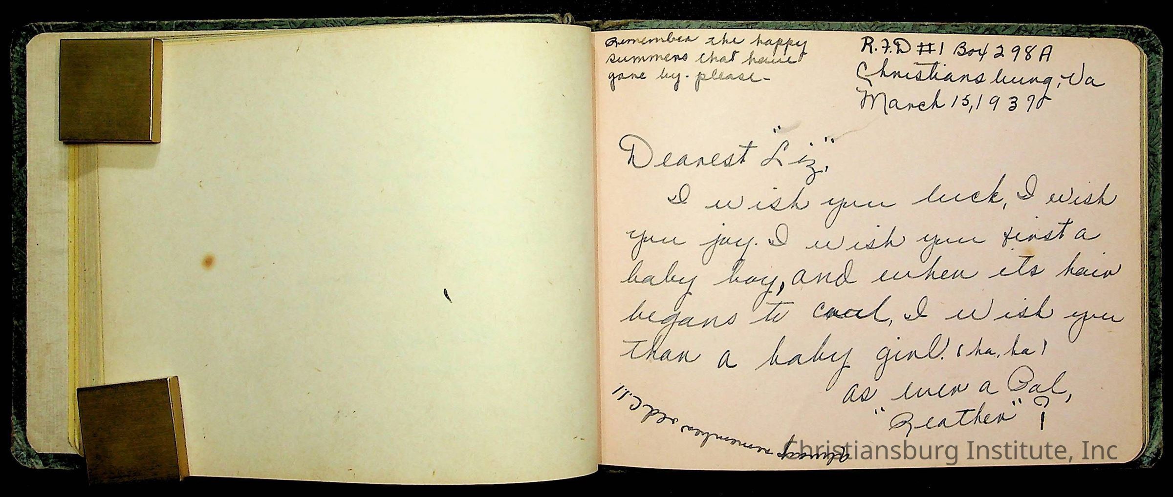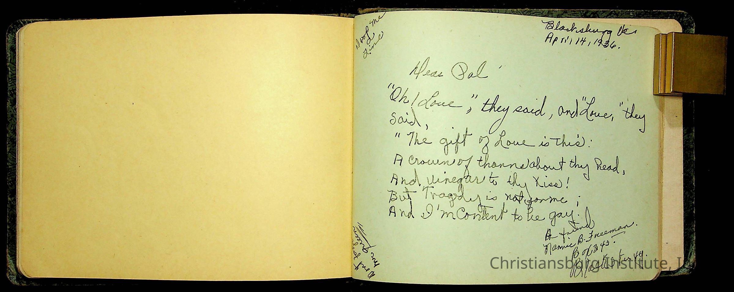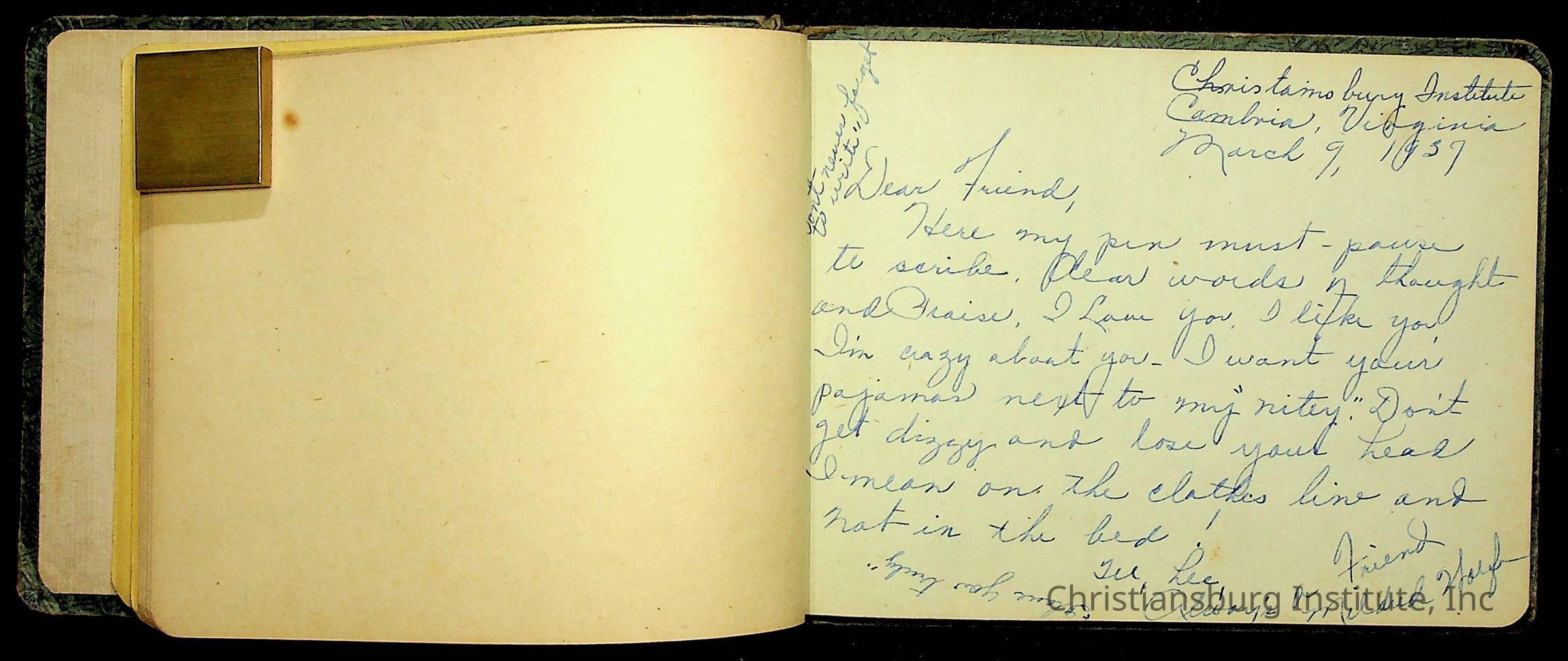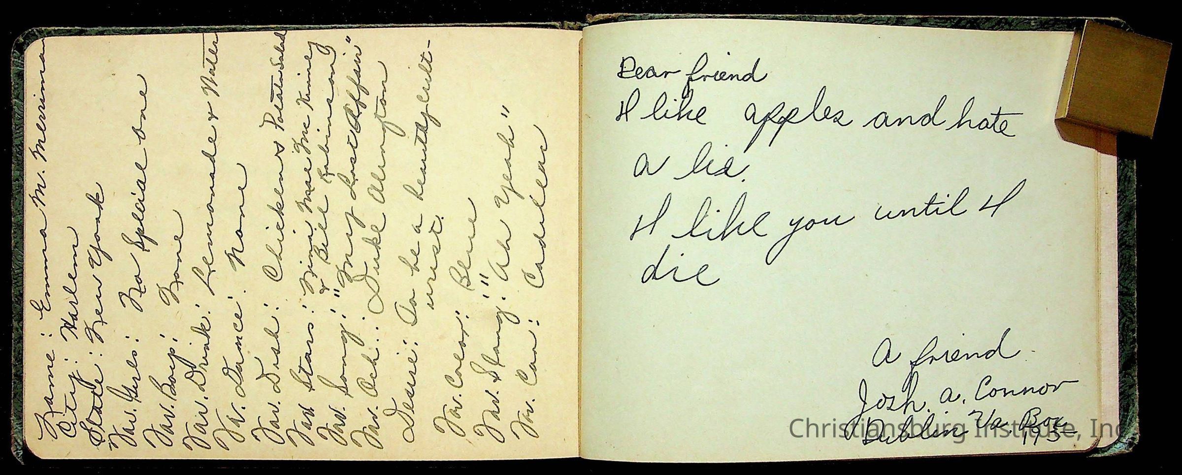 A Christiansburg Industrial Institute autograph book for Elizabeth Toliver, class of 1937.