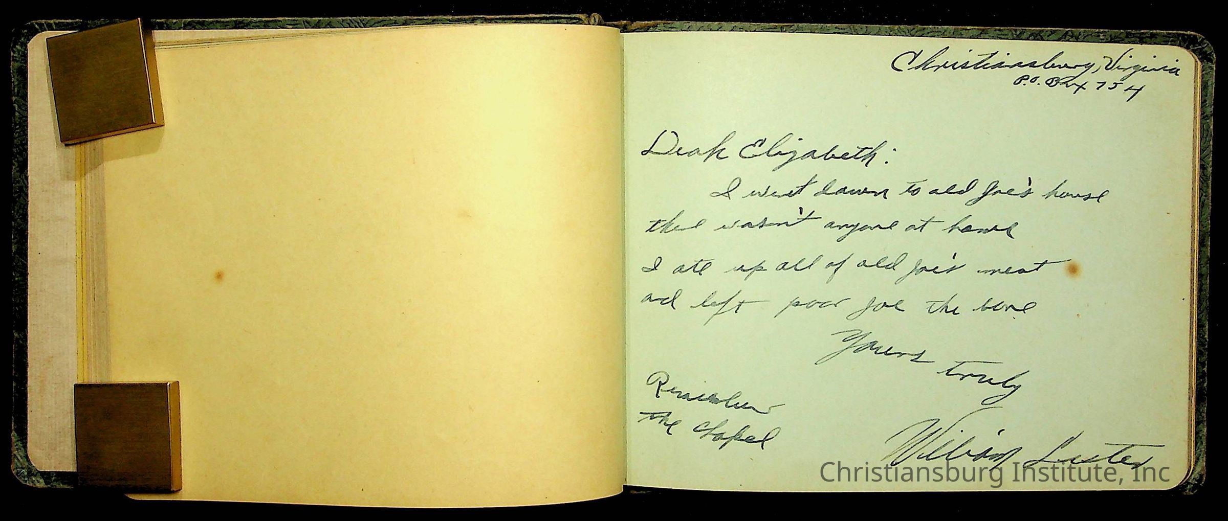 Copyright has been assigned to Christiansburg Institute Museum & Archives by Amanda DeHart. For permission to publish materials created by the donor, contact CIMA@christiansburginstitute.com. Materials not created by Amanda DeHart may still be under copyright.