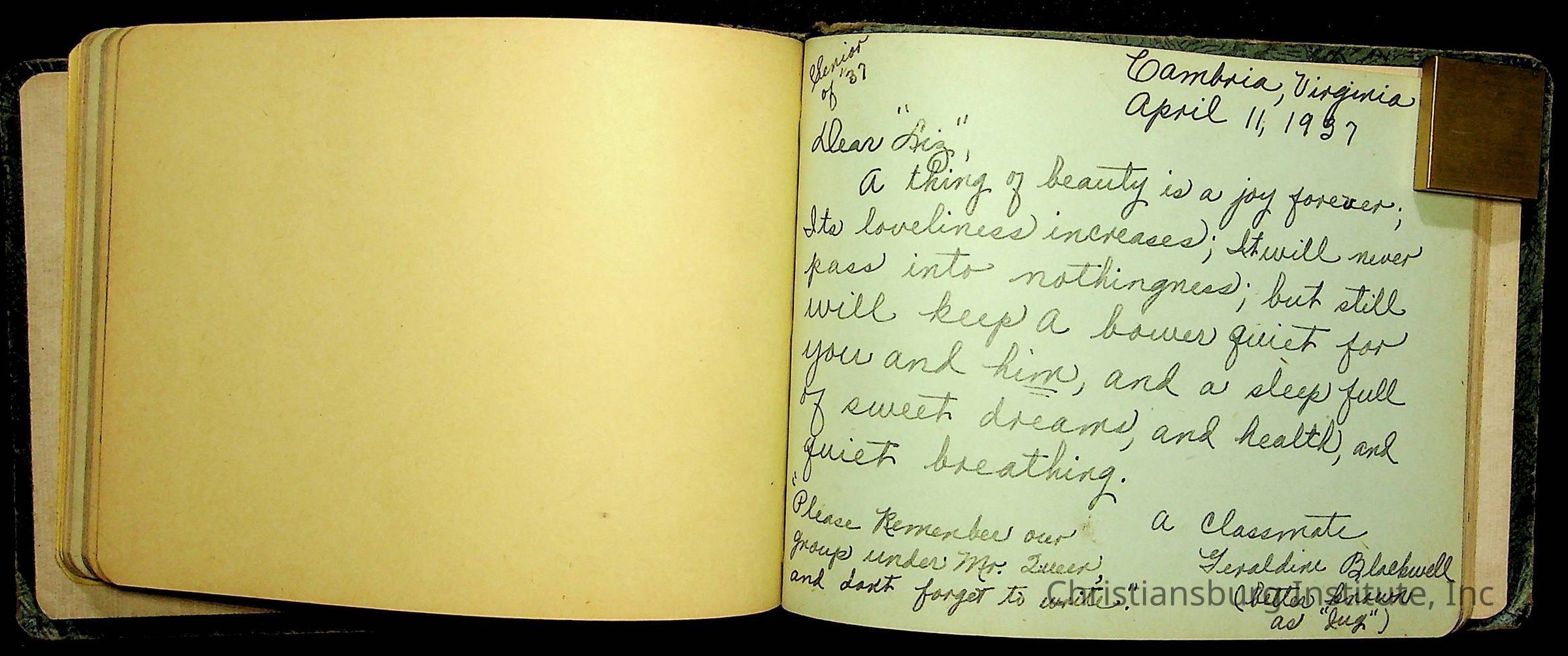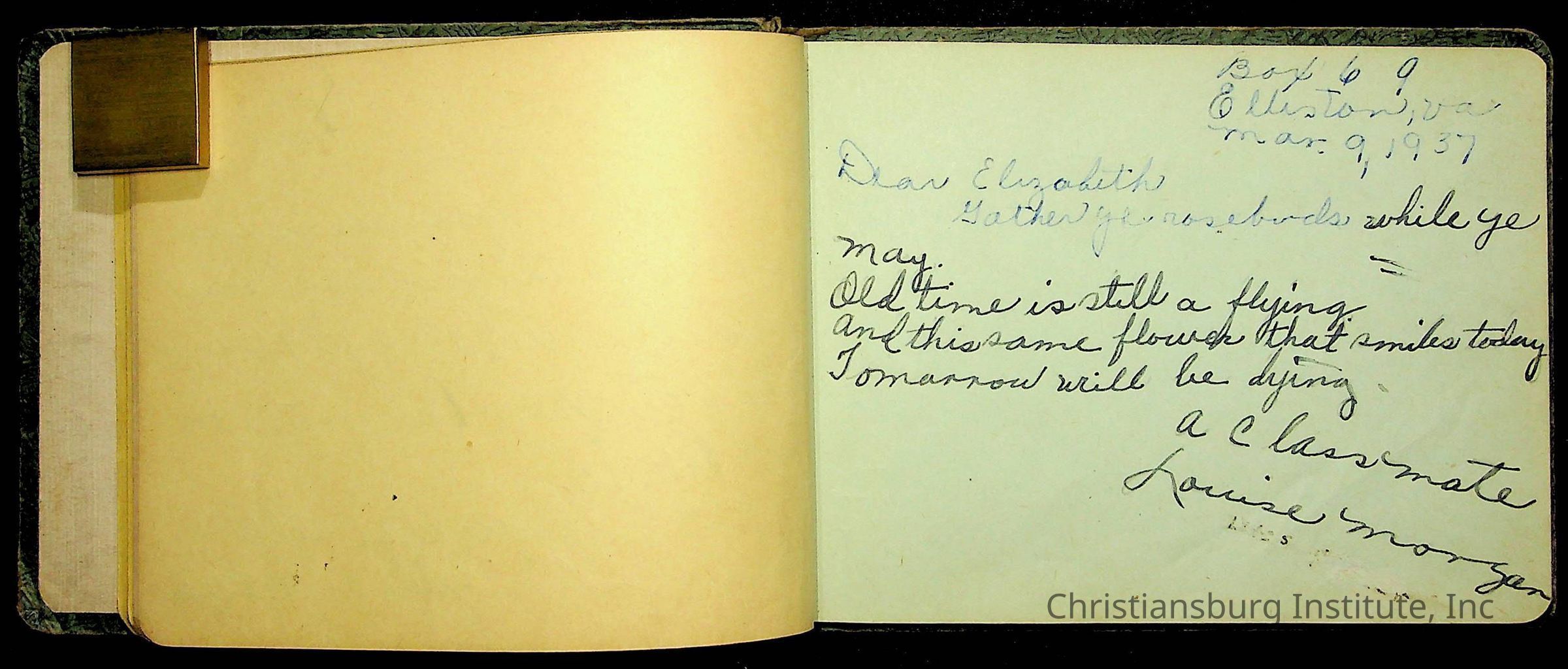Elizabeth Toliver, Class of 1937, autograph book