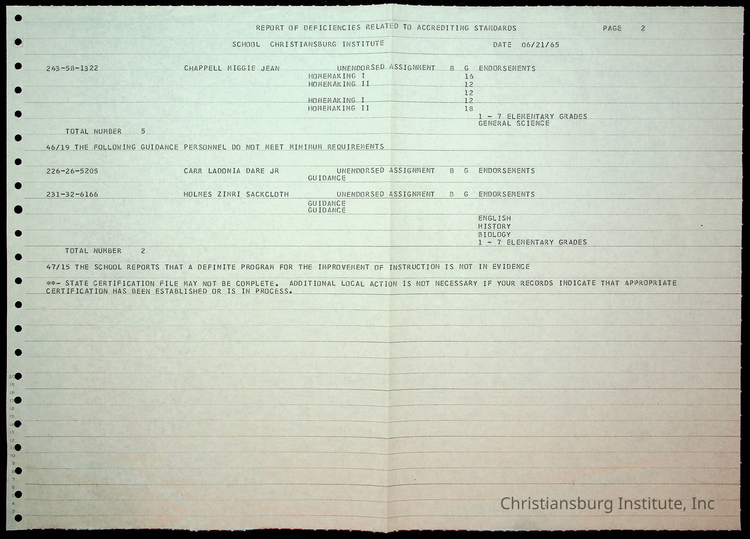 The second folder of an archive of administrative correspondence with people associated with Christiansburg Institute, dated 1959-1965.