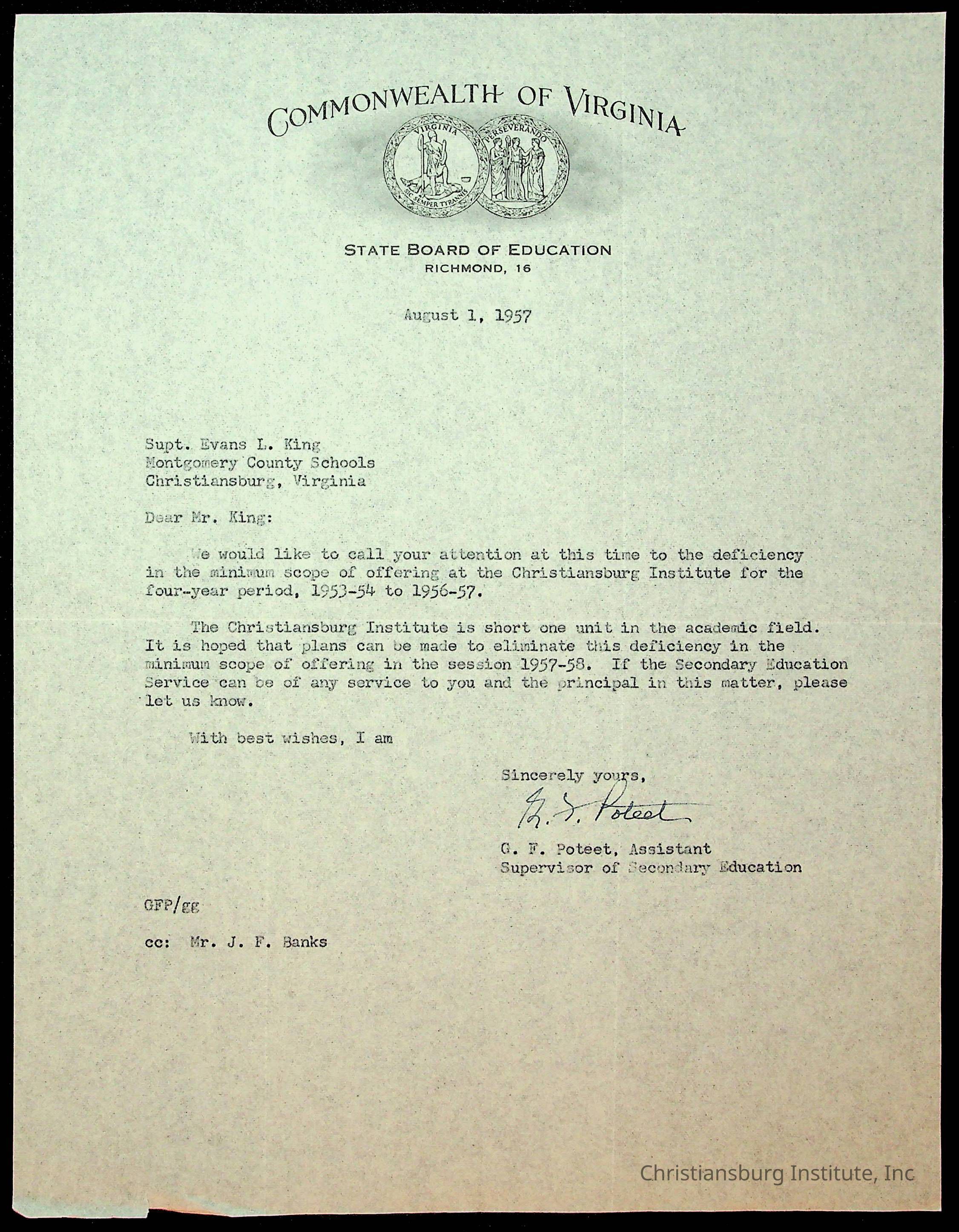 Christiansburg Institute, King, E. L., Montgomery County School Board, Banks, John F., Commonwealth of Virginia