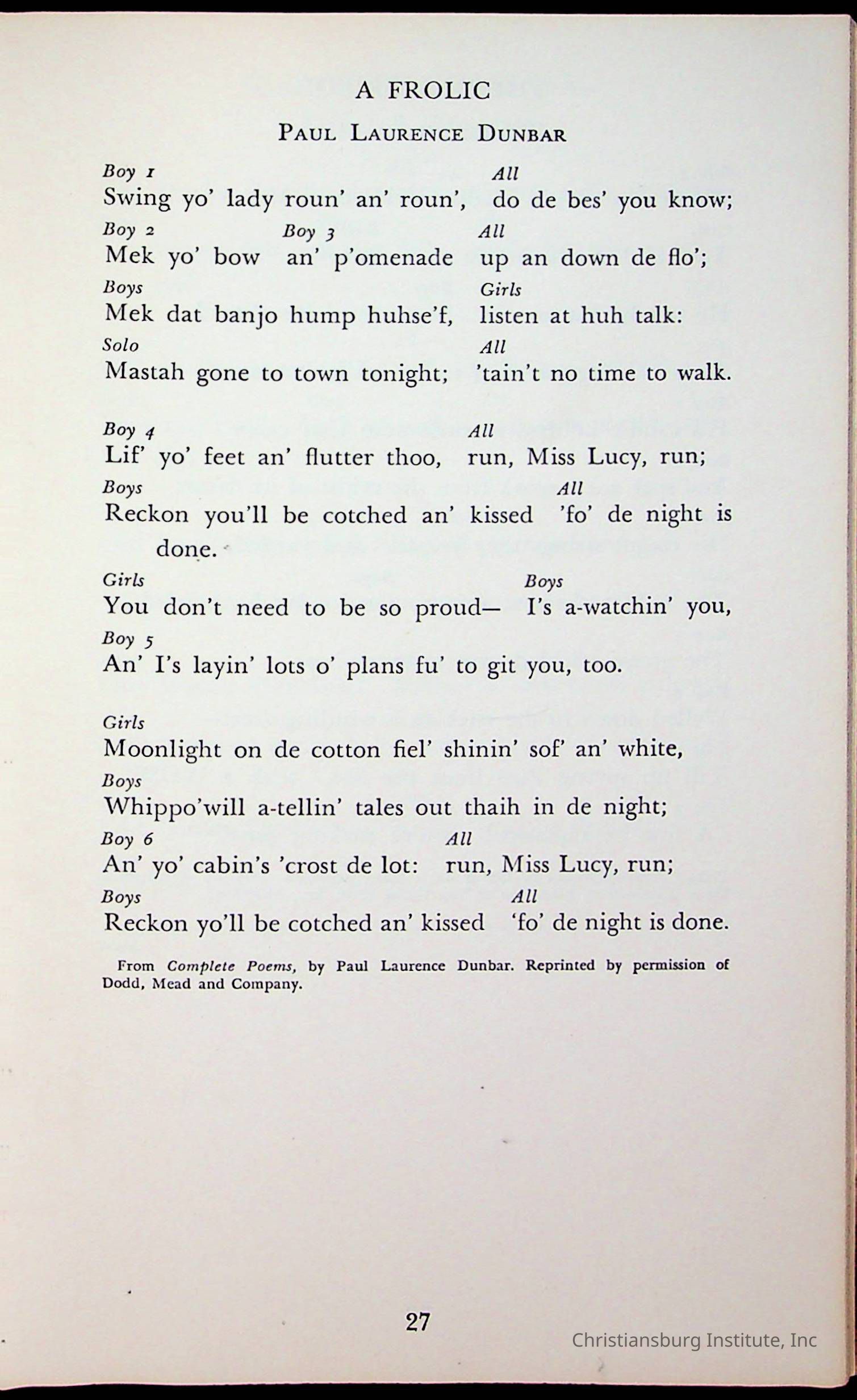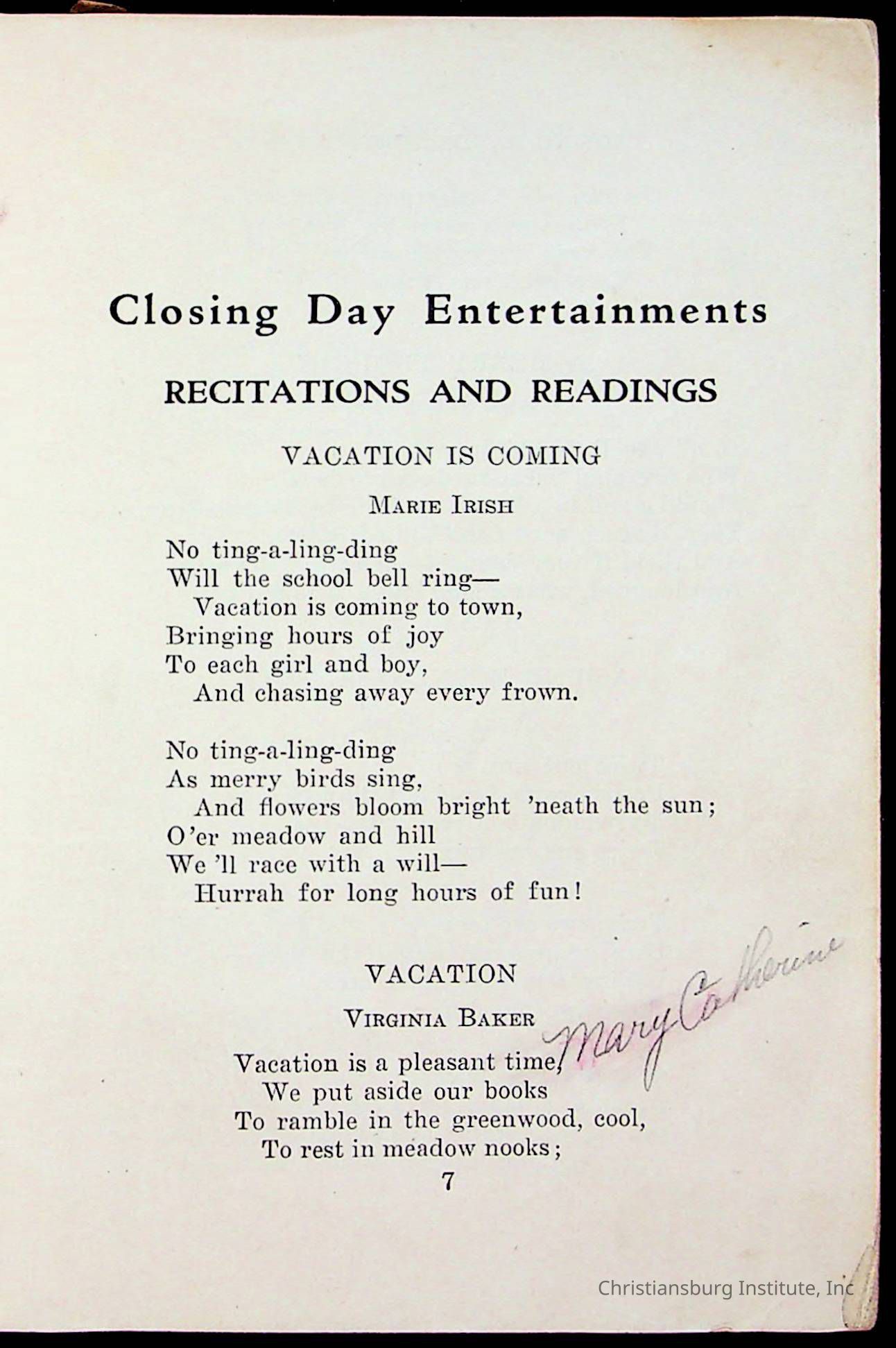 An archive of literature materials collected from Calfee Training School including a play and a book of poems, undated.