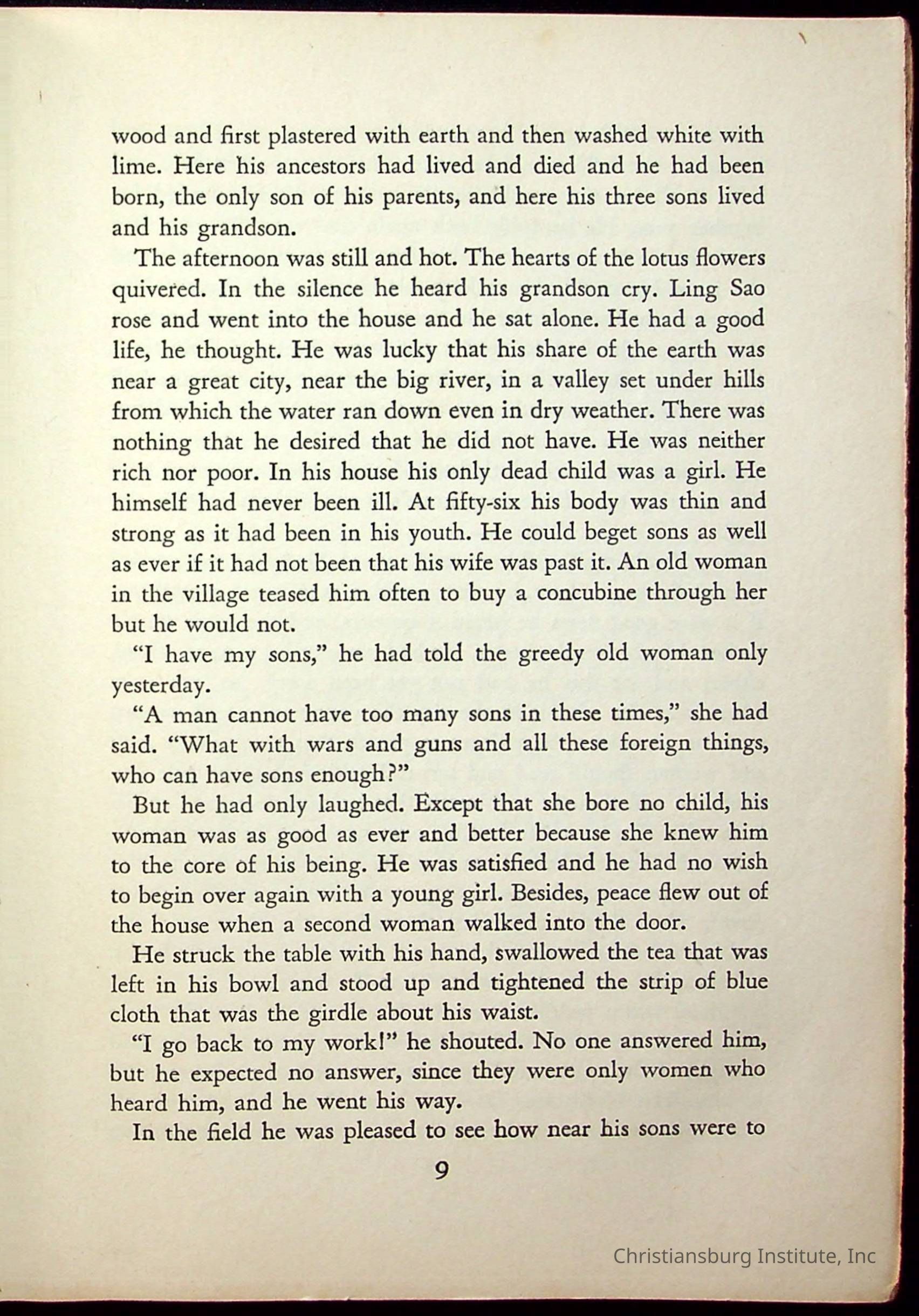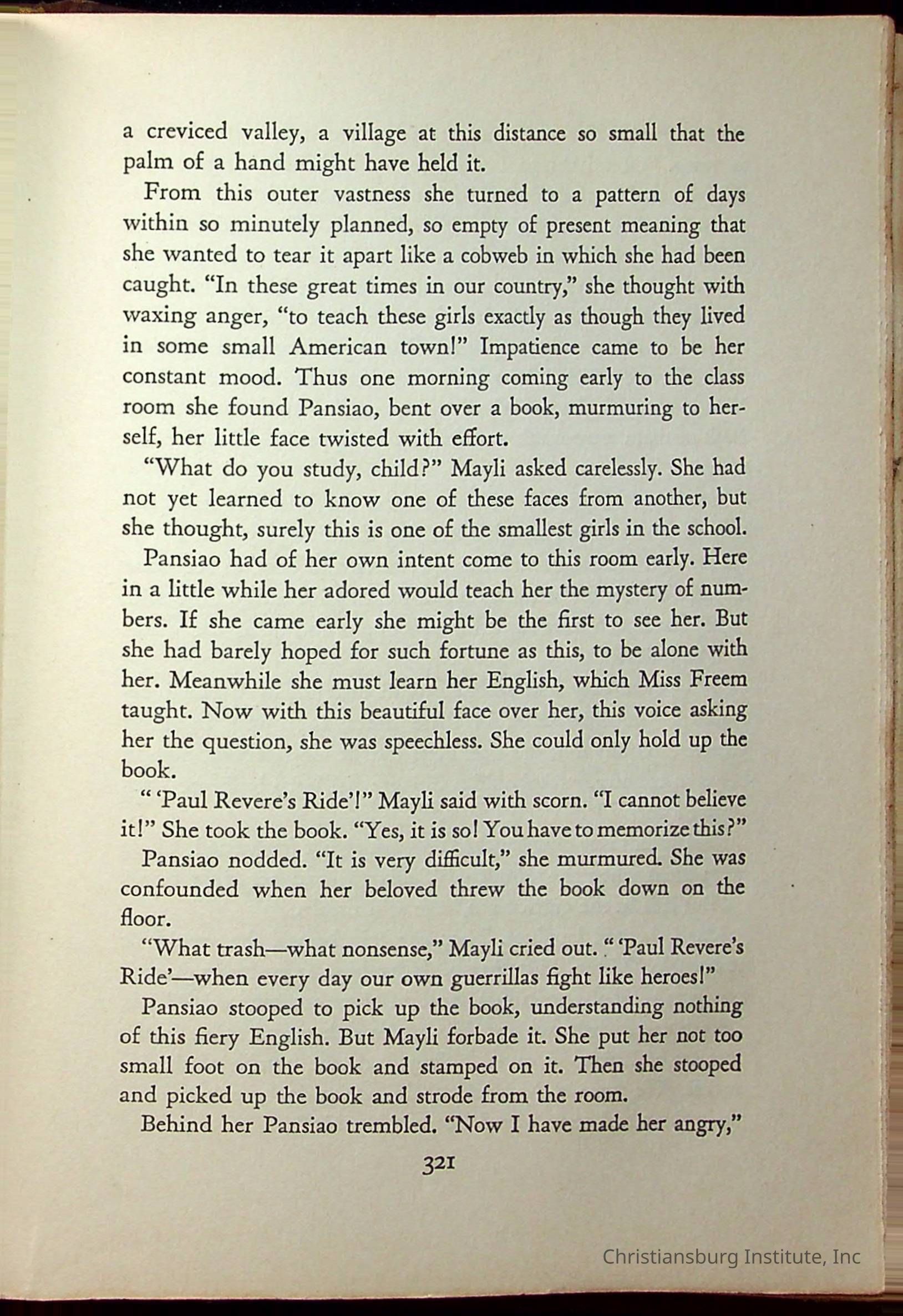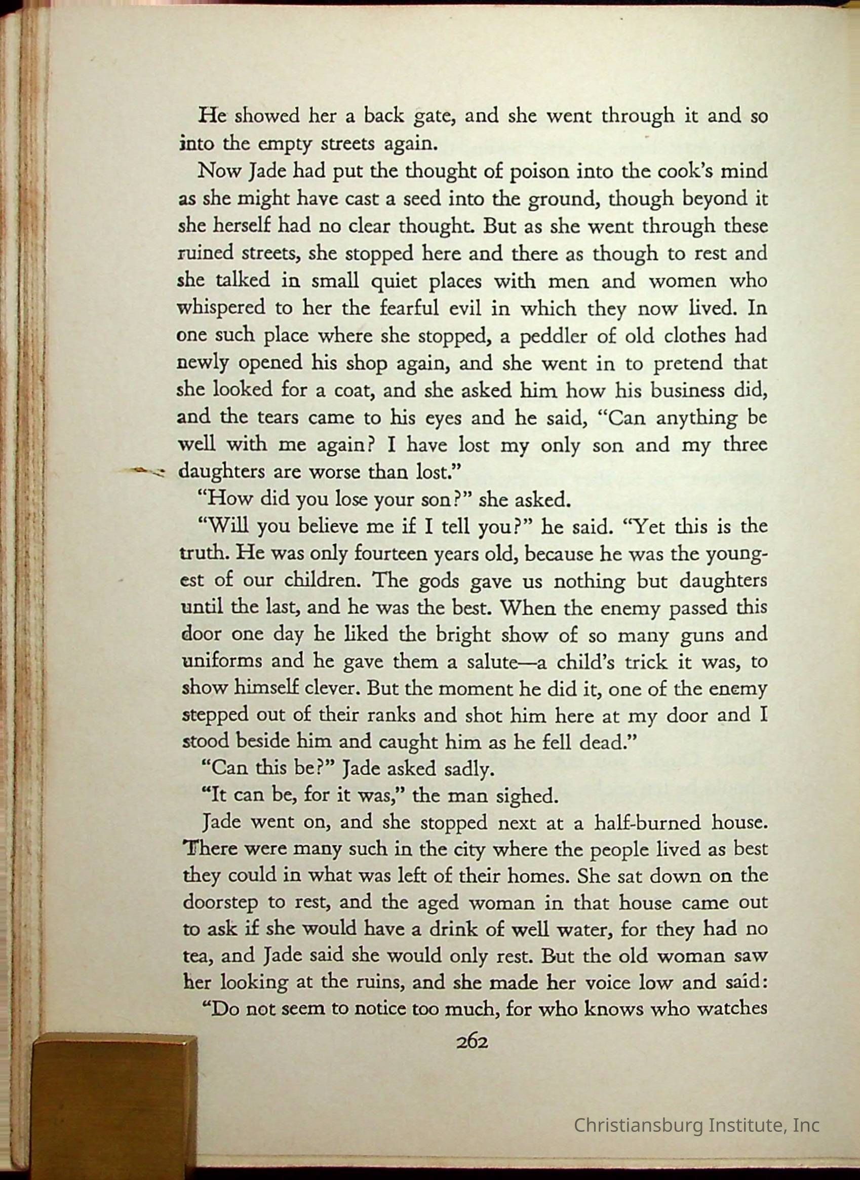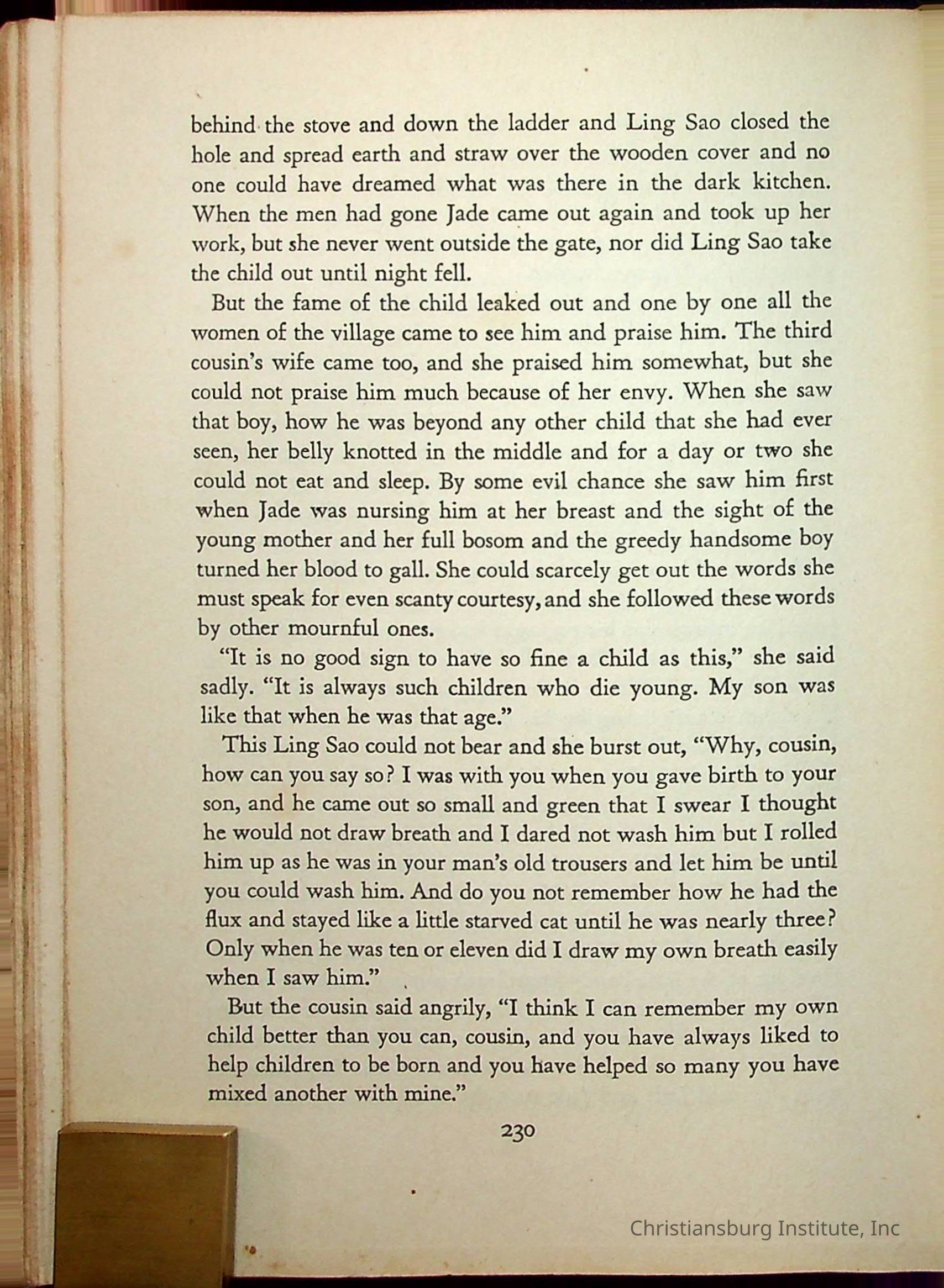 Dragon Seed, written by Pearl S. Buck and published in the year 1942. This book was used by Christiansburg Institute teacher, Viola Charlton in her class.Collection