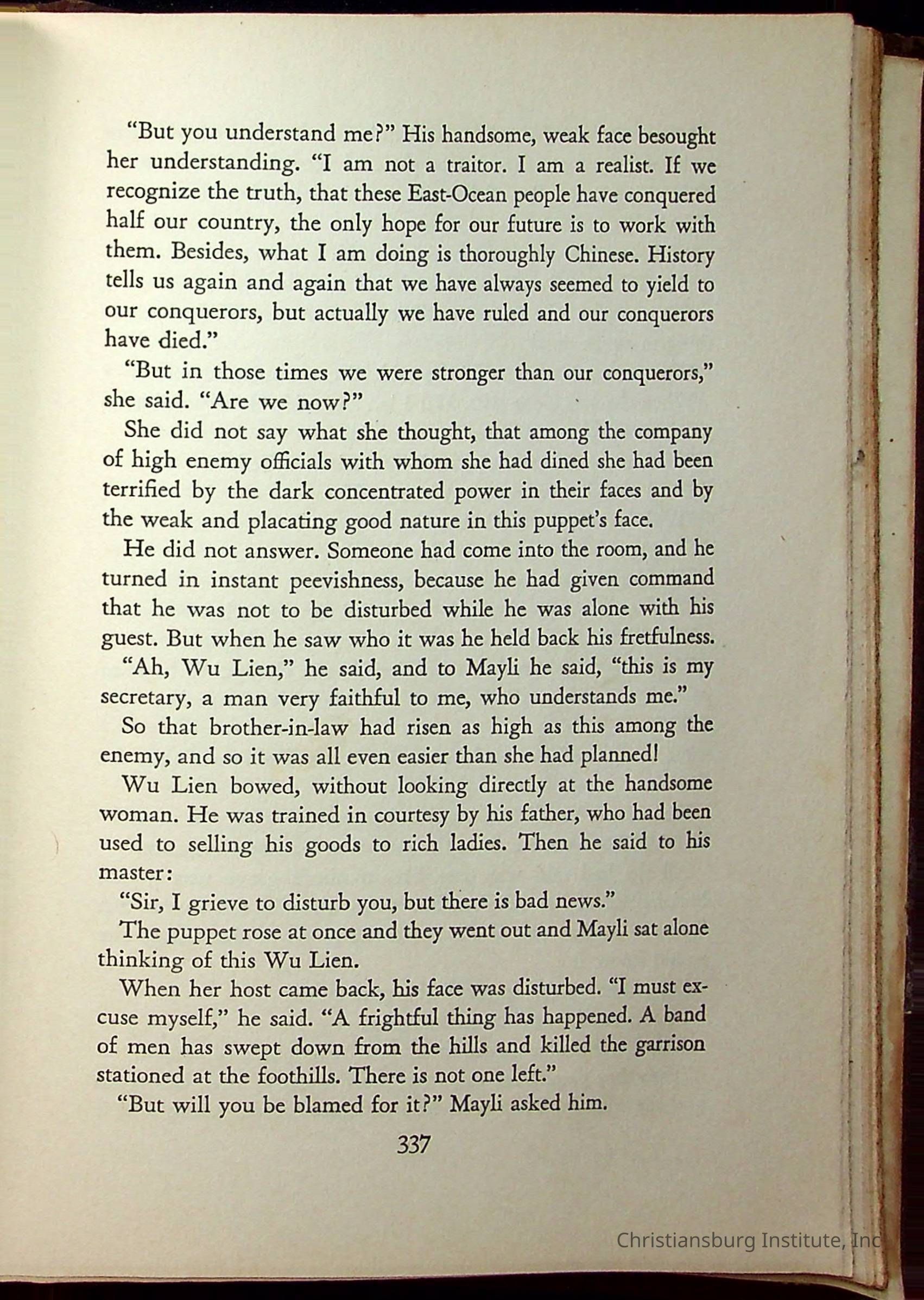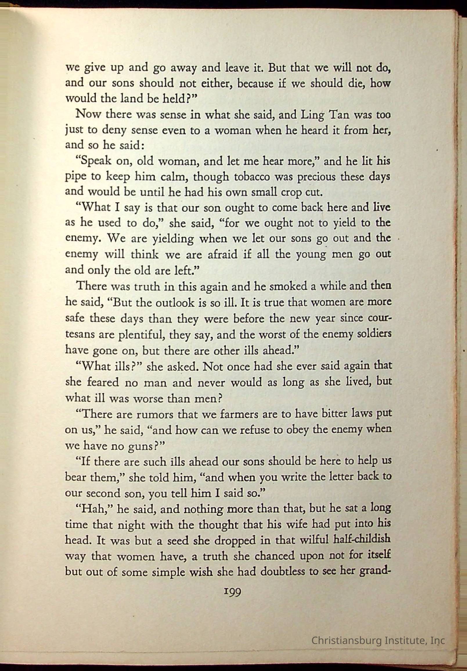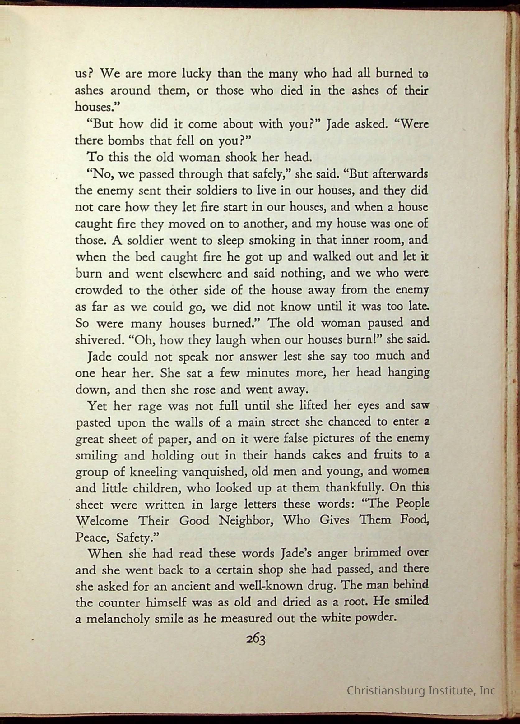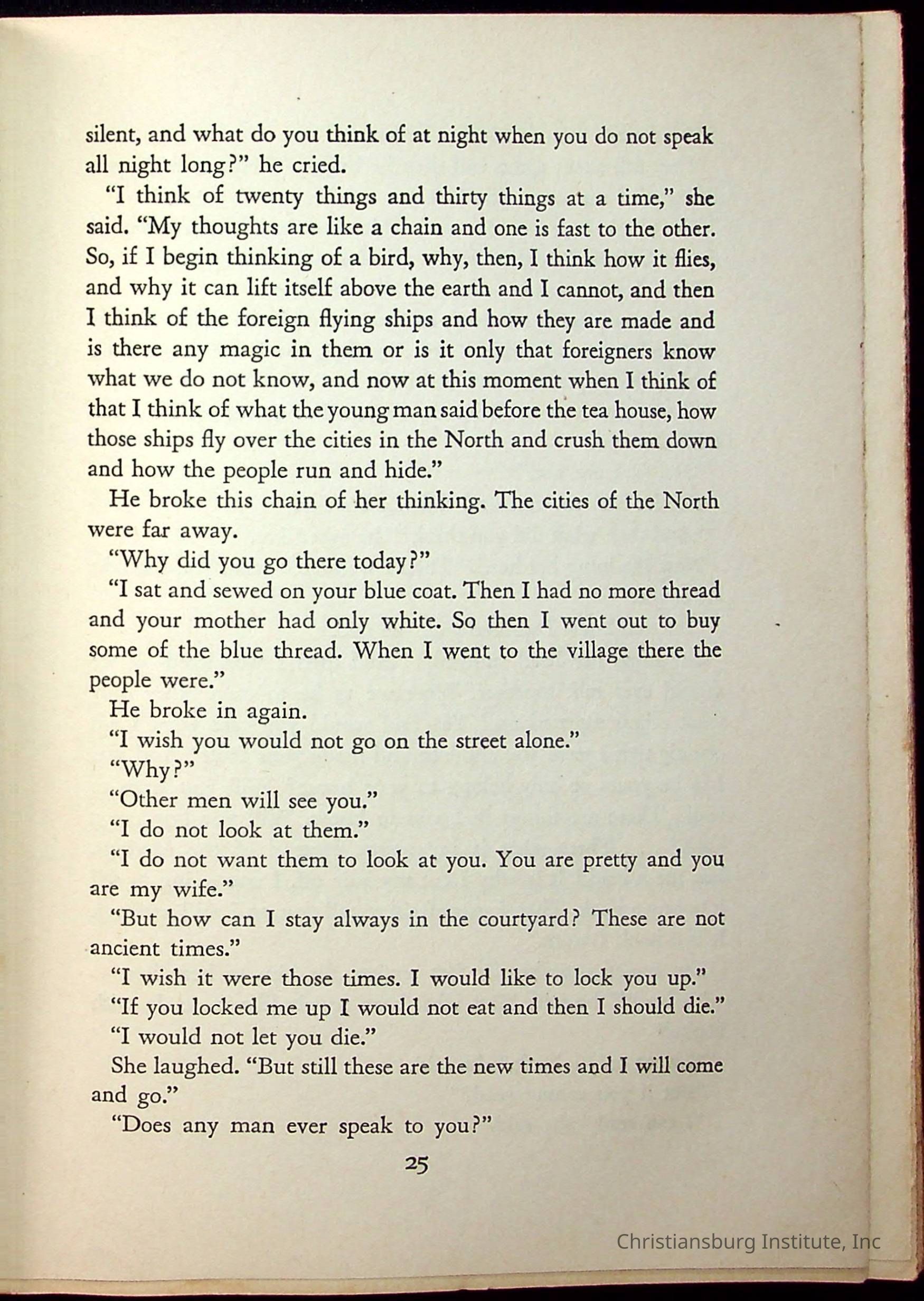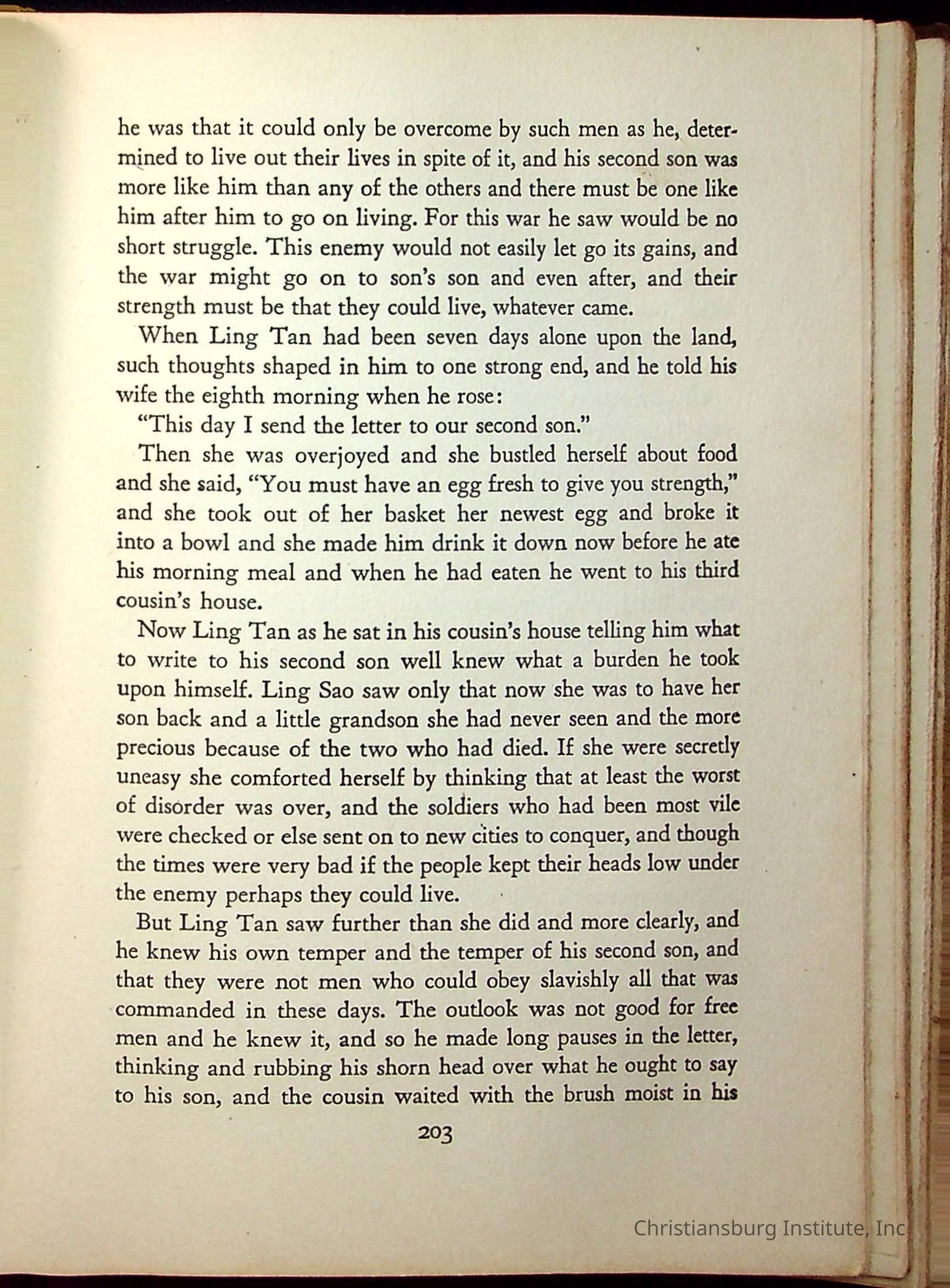 Dragon Seed, written by Pearl S. Buck and published in the year 1942. This book was used by Christiansburg Institute teacher, Viola Charlton in her class.Collection