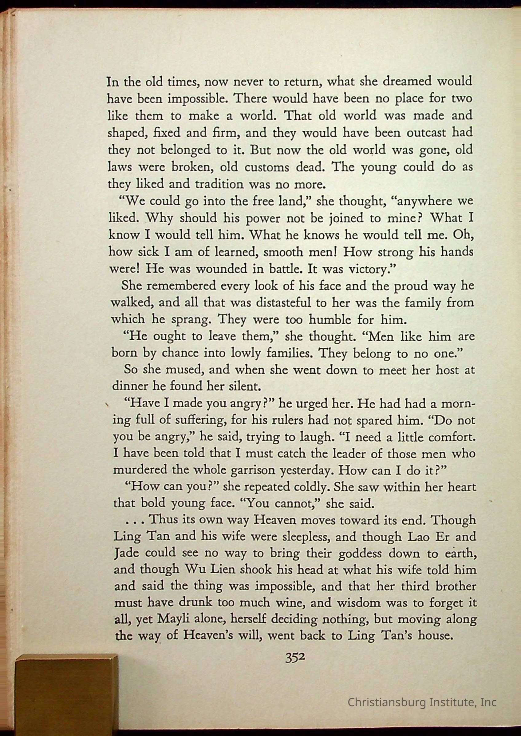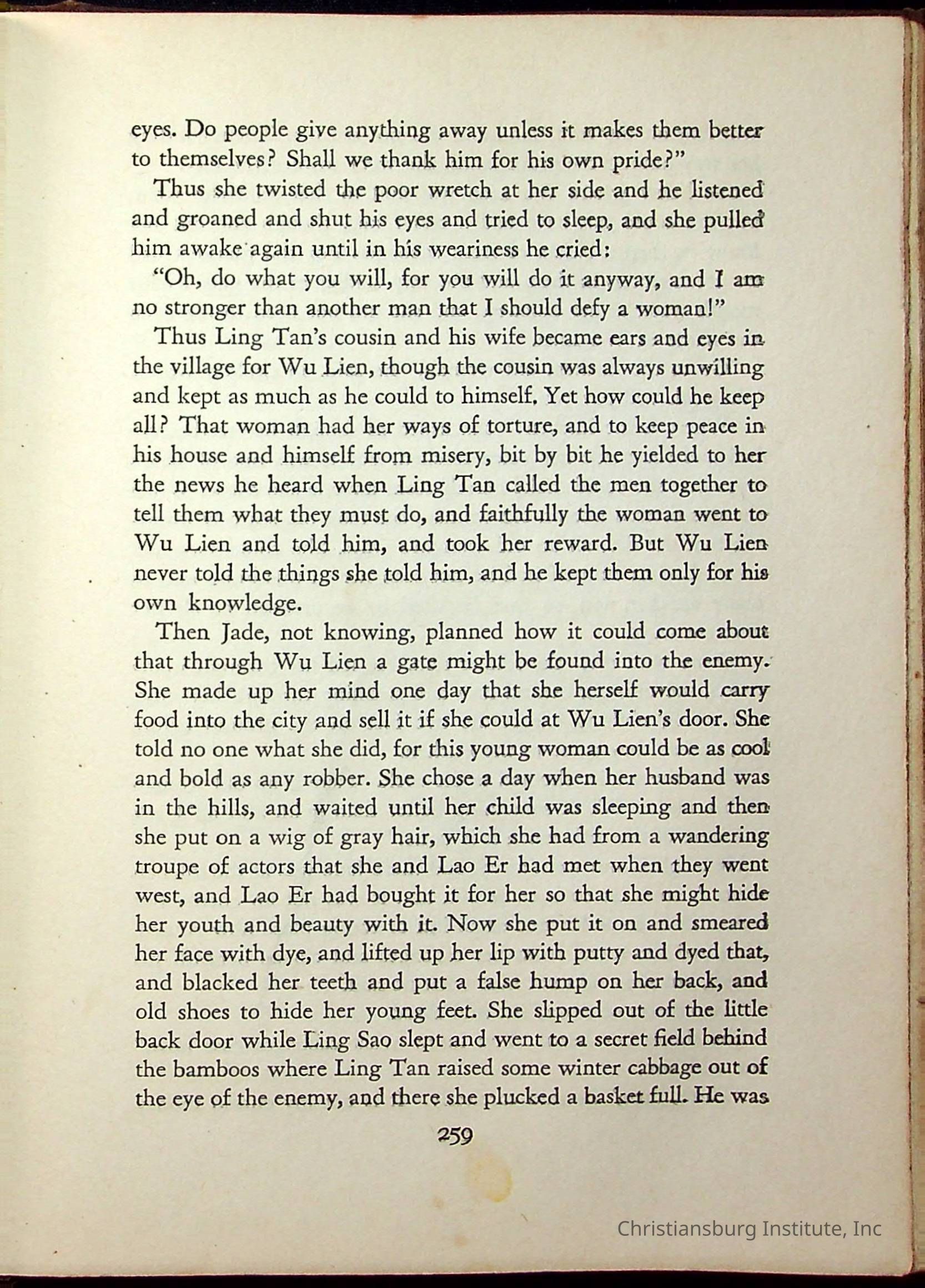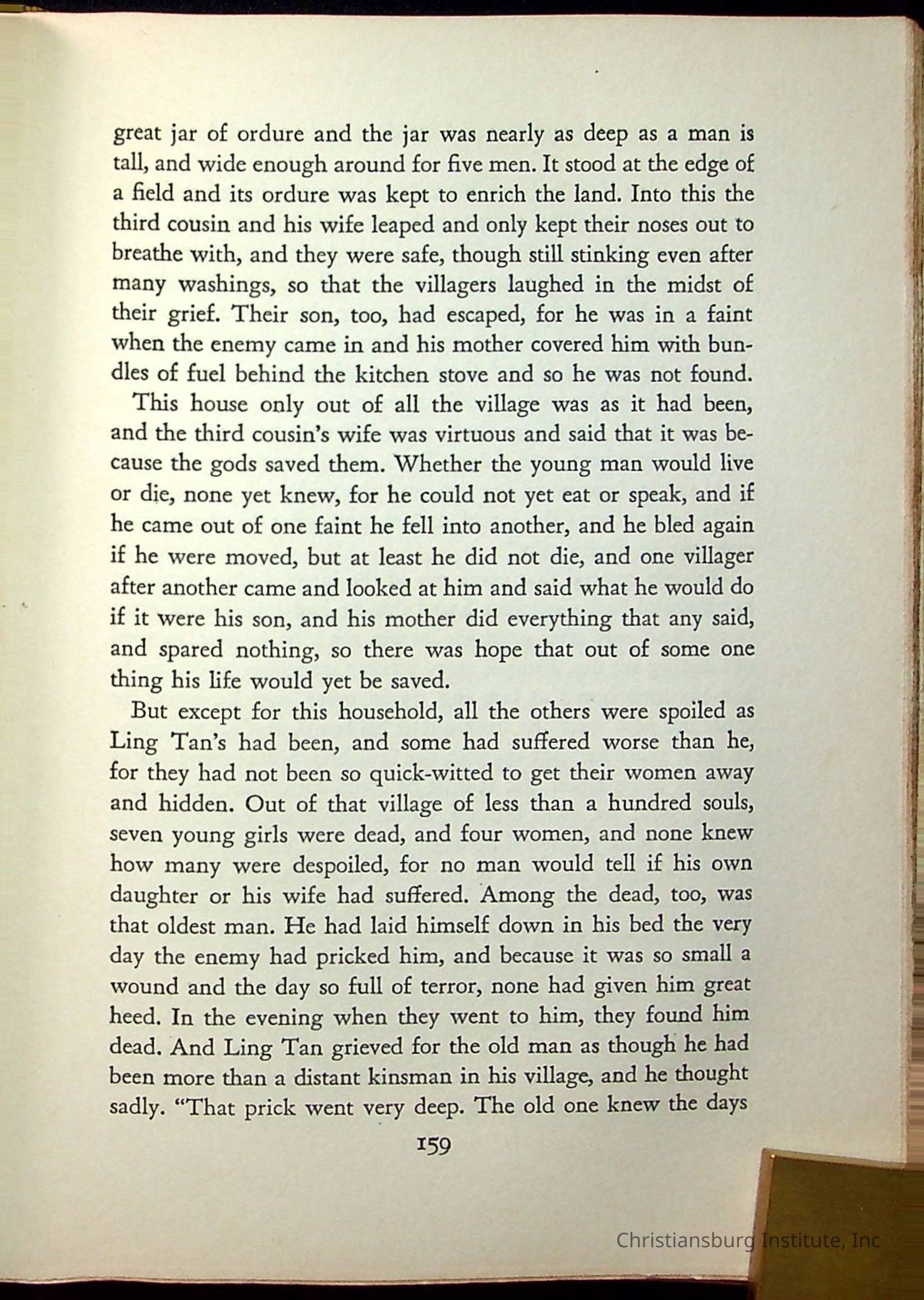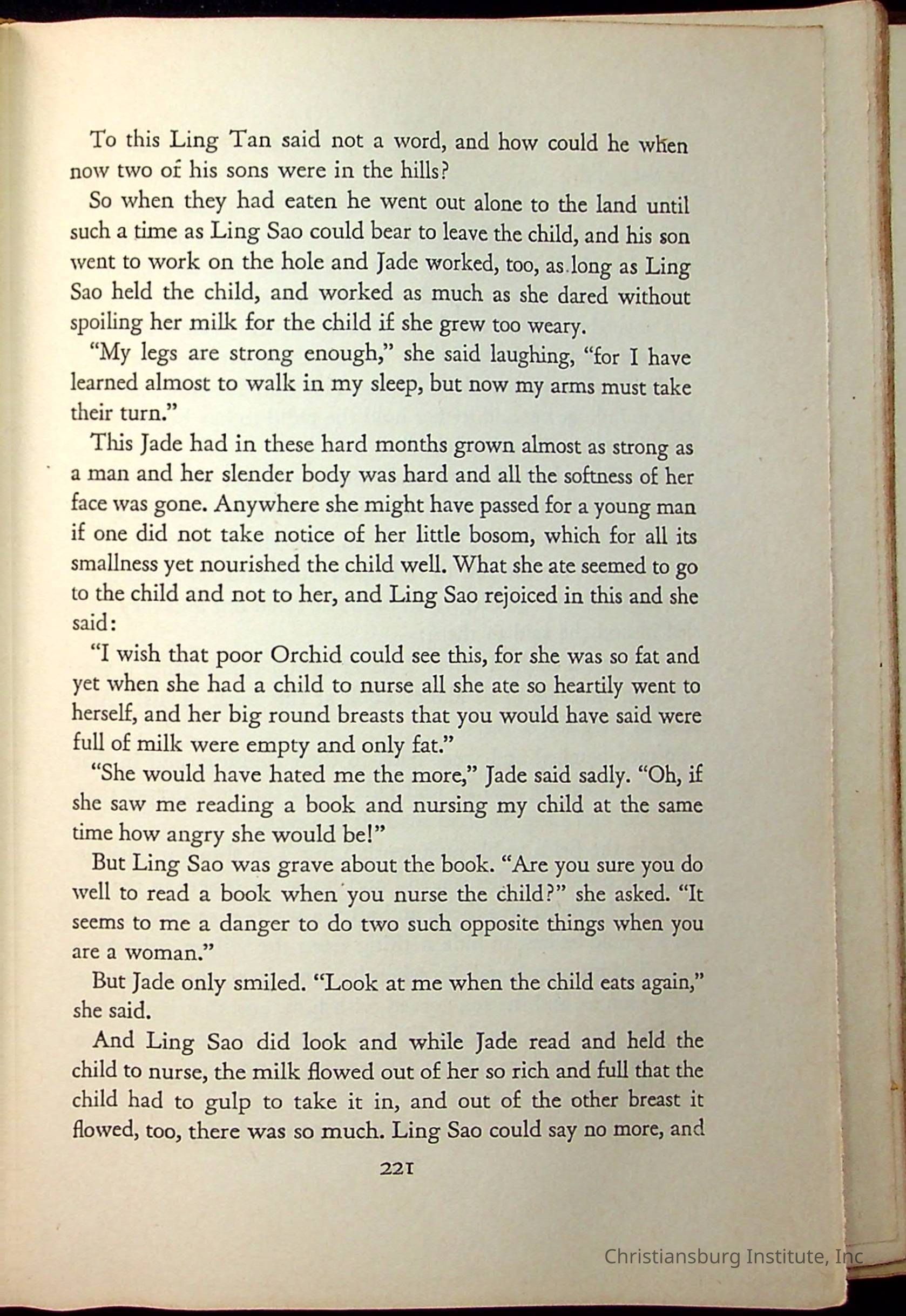 Dragon Seed, written by Pearl S. Buck and published in the year 1942. This book was used by Christiansburg Institute teacher, Viola Charlton in her class.Collection