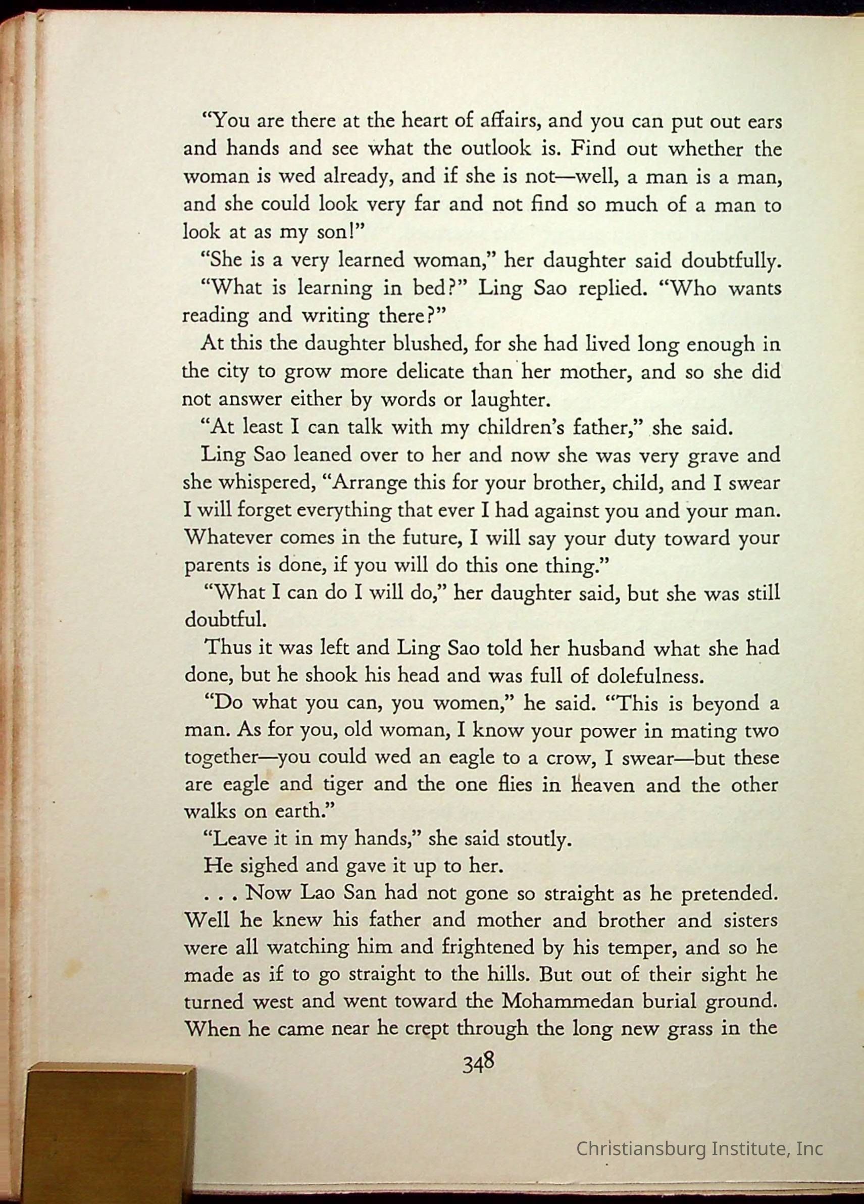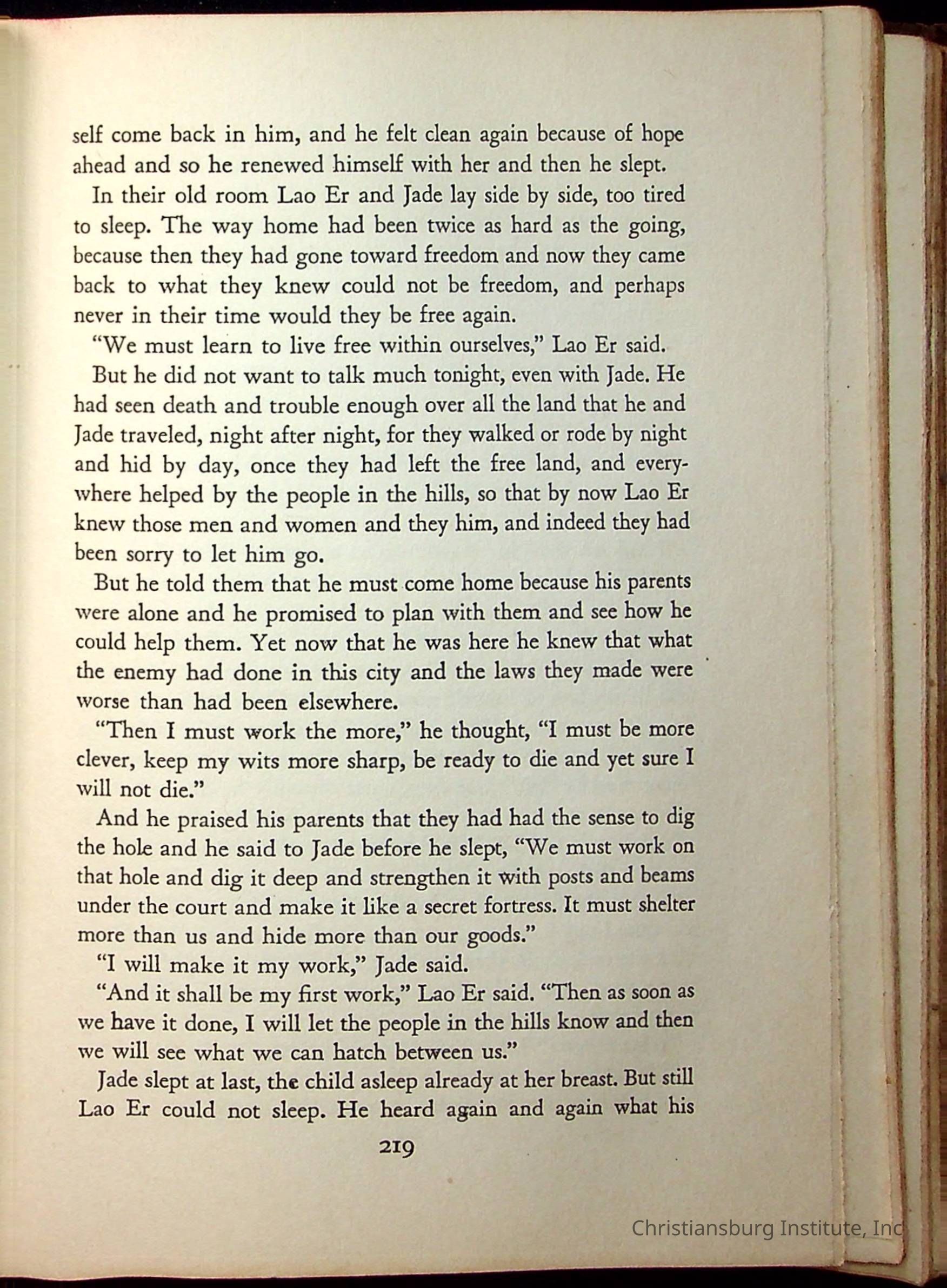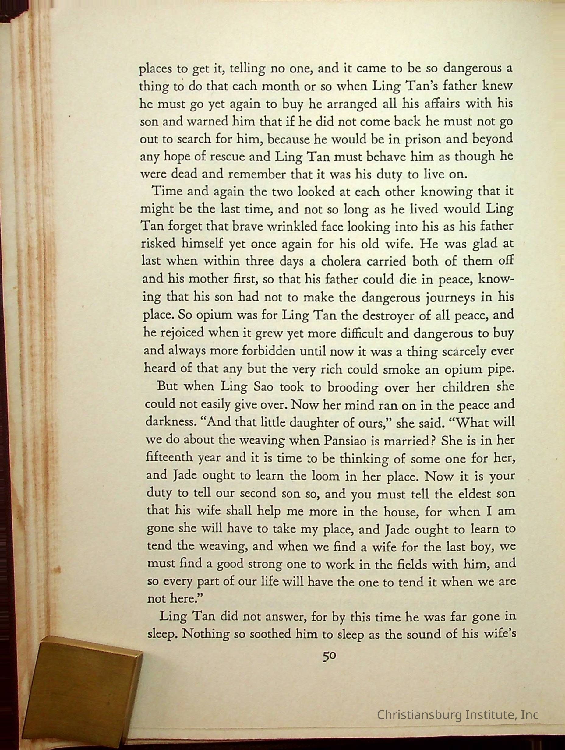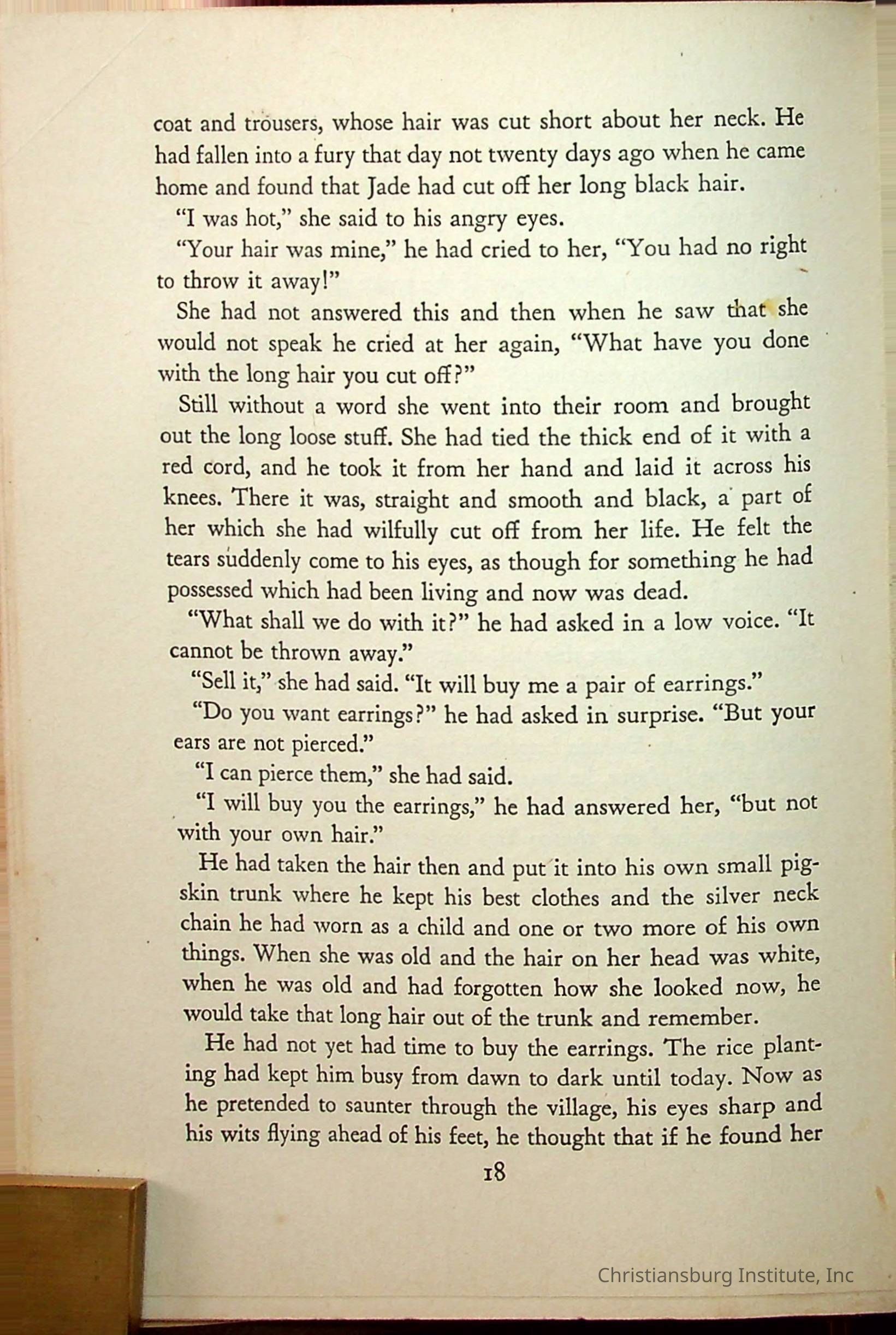 Dragon Seed, written by Pearl S. Buck and published in the year 1942. This book was used by Christiansburg Institute teacher, Viola Charlton in her class.Collection