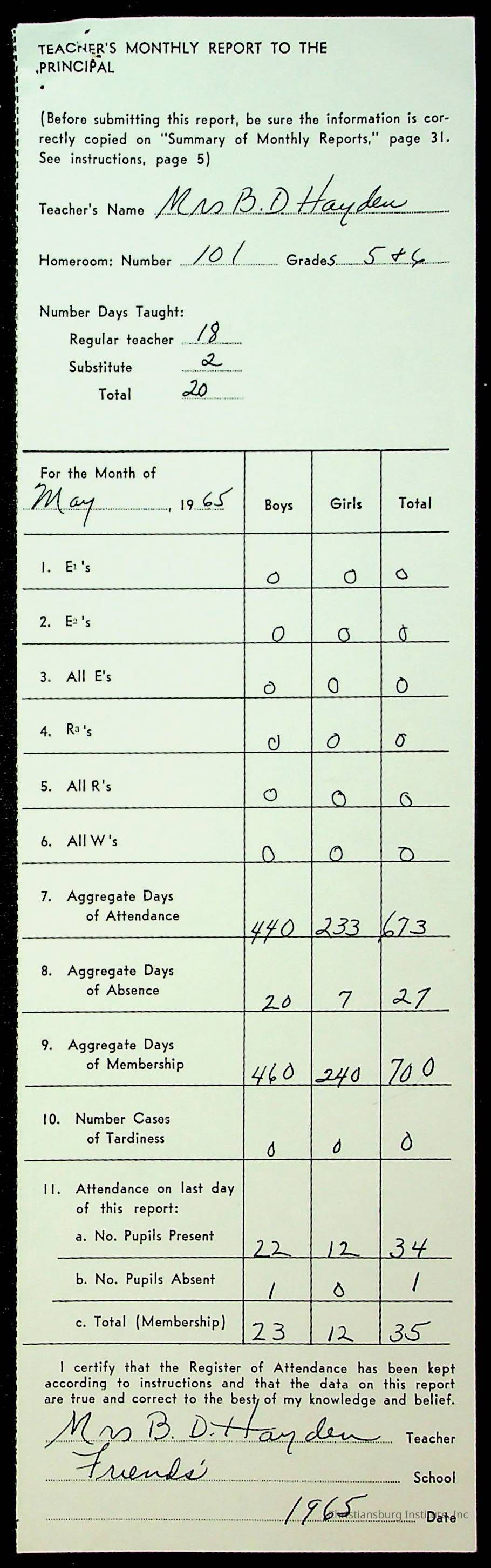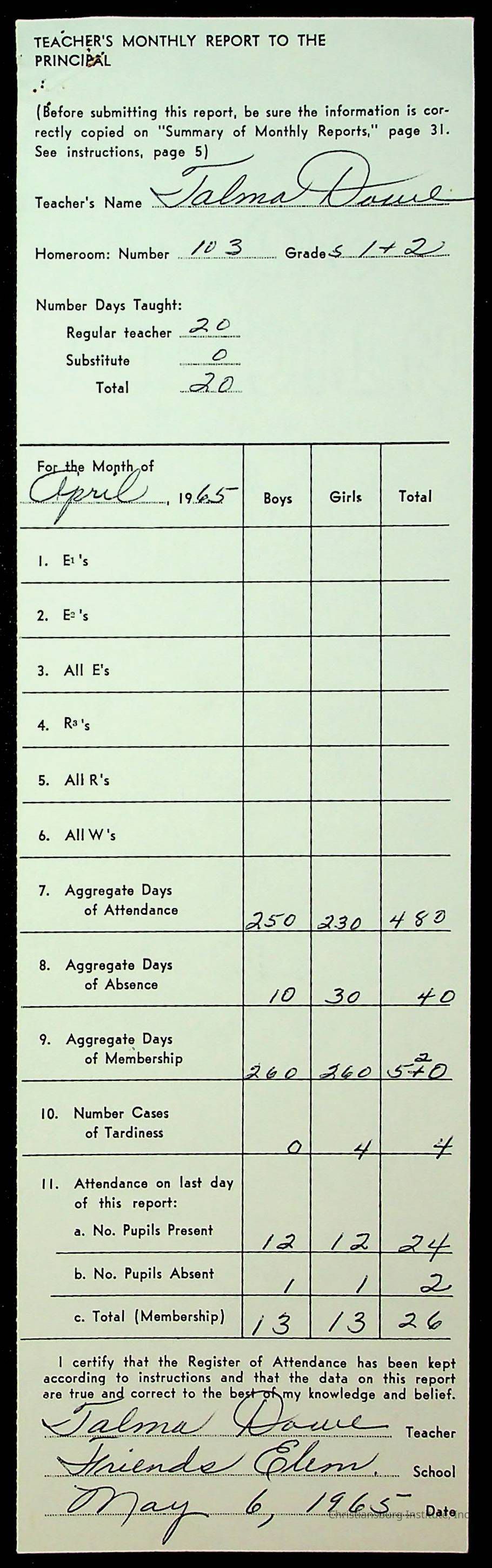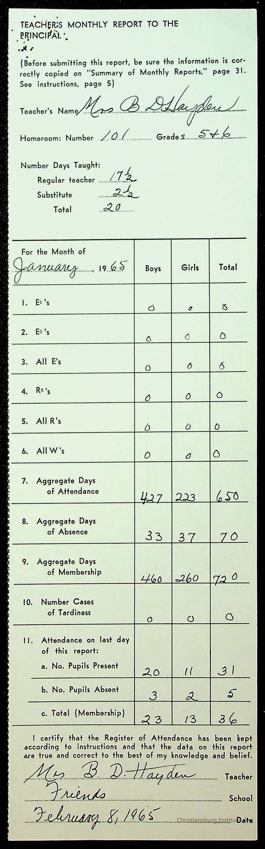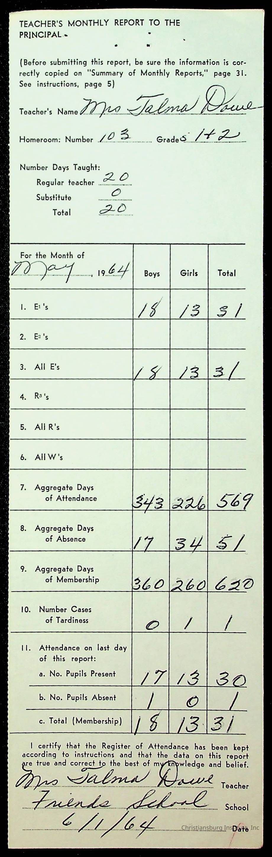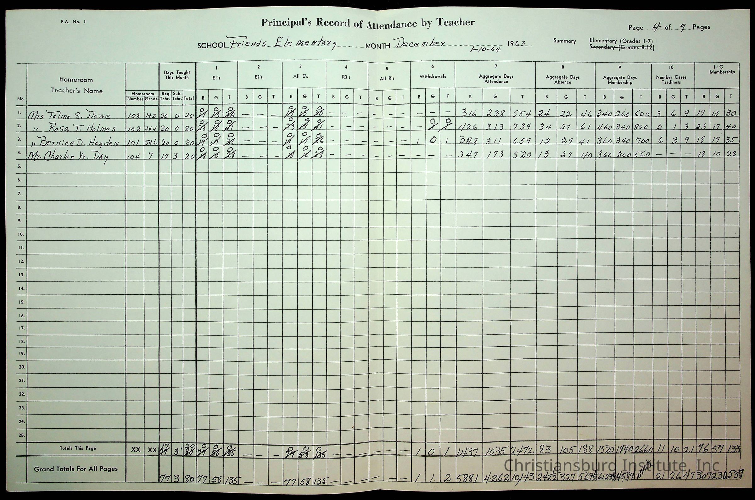 An archive of monthly principal reports for Christiansburg Institute and Friends Elementary School from 1963 through 1964.