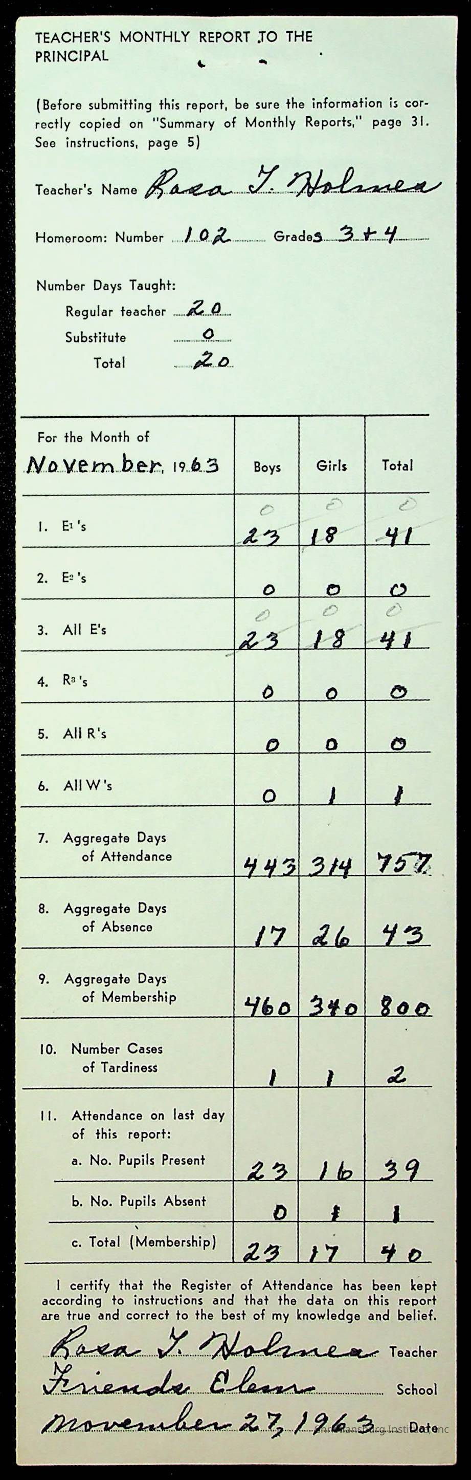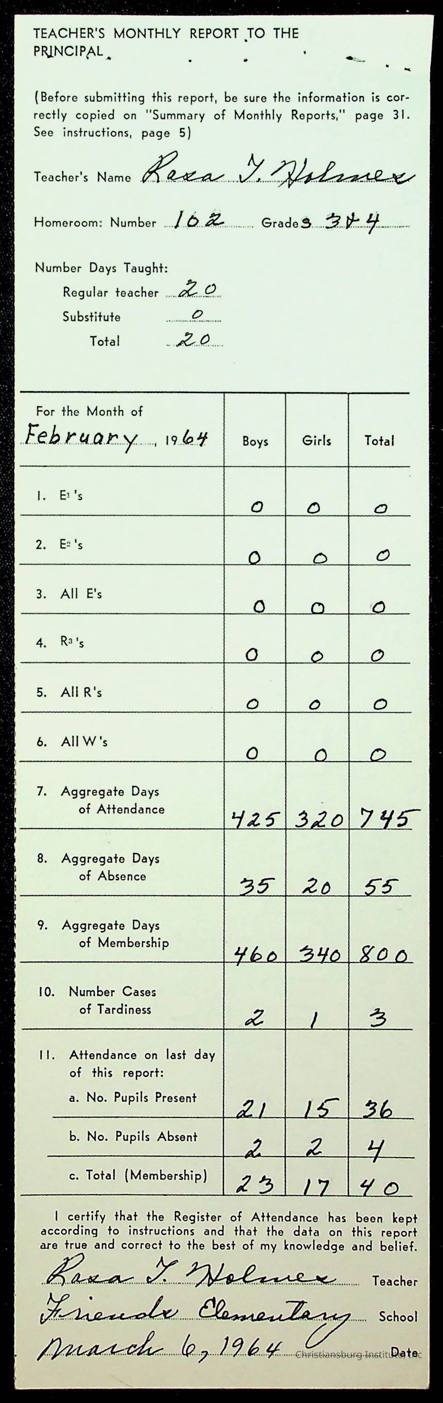 Monthly Principal Reports, 1963-1964