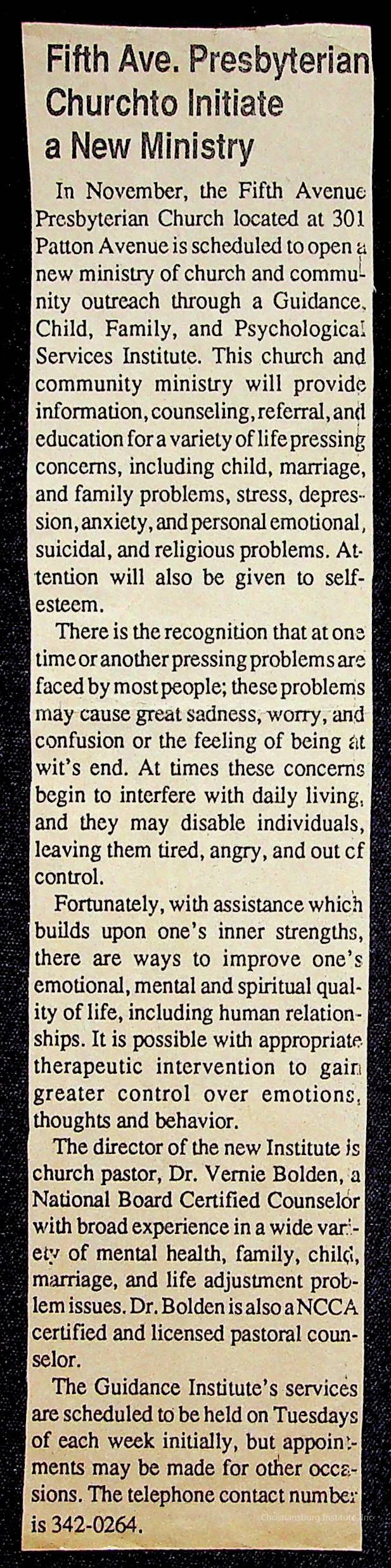 A collection of materials that pertain to Reverend Dr. Vernie L. Bolden Senior and to events that happened during the time he served at the church. He served as a reverend at Fifth Avenue Presbyterian Church.Collection