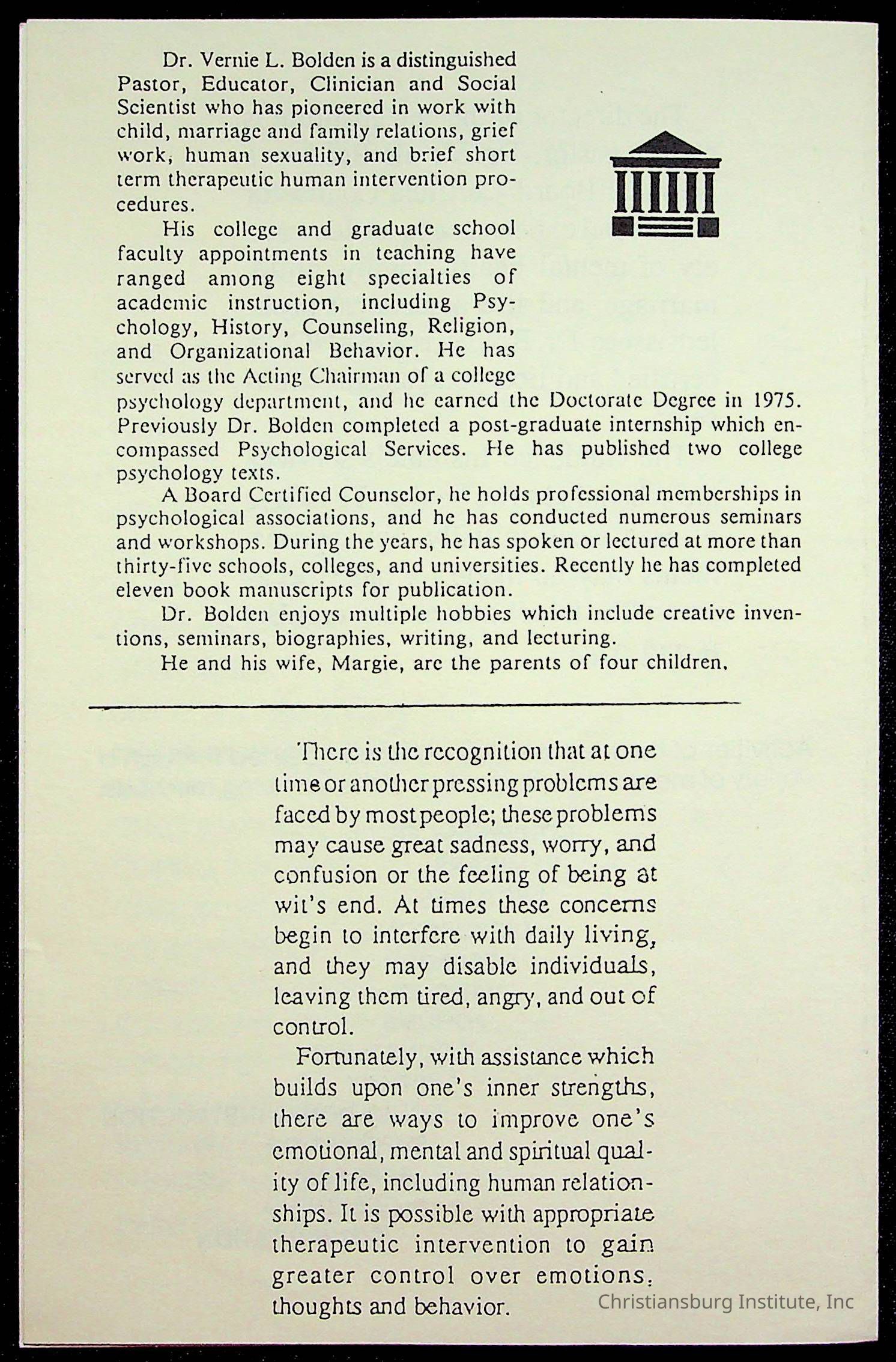 Rev. Dr. Vernie L. Bolden Sr.Scope and Content