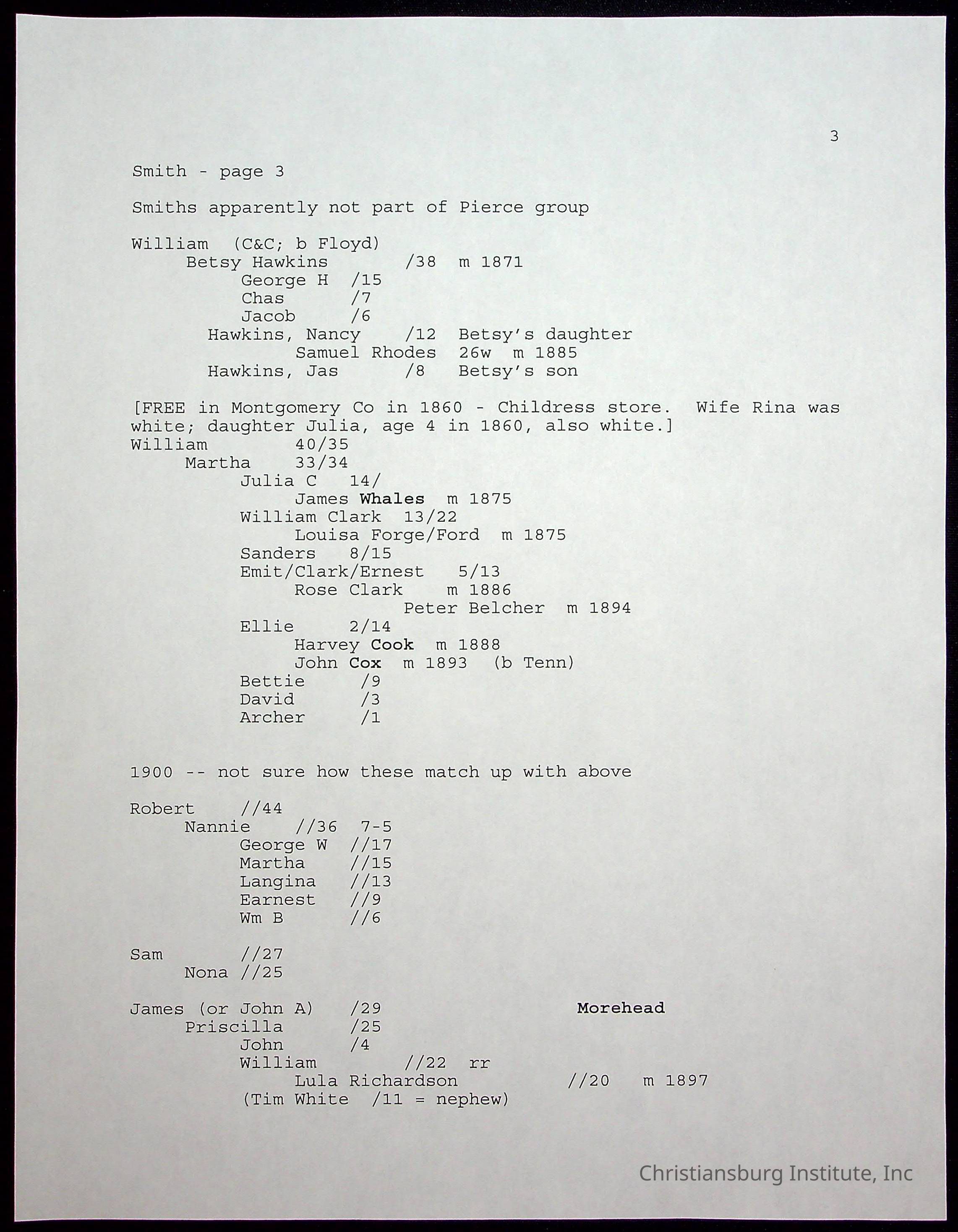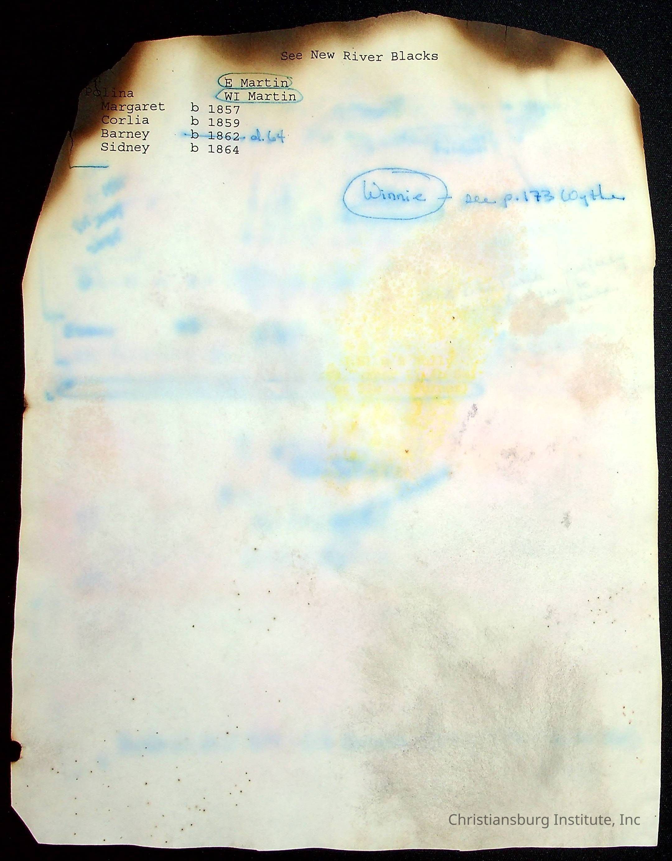 Farm Land, Boom Town, Village: A History of Belspring, Virginia, 1750-1940, The Reports of Charles S. Schaeffer from the Virginia counties of Montgomery and Pulaski, with additional information on the counties of Floyd, Giles, Craig, Wythe, and Roanoke., Ingles Ferry Ledgers (1840s-1880s), These people lived in a pleasant valley, Making their mark: Black Families of New River Depot, 1870-1940., Whartons’ Town New River Depot, 1870-1940., Radford’s Early Black Residents, 1880-1925