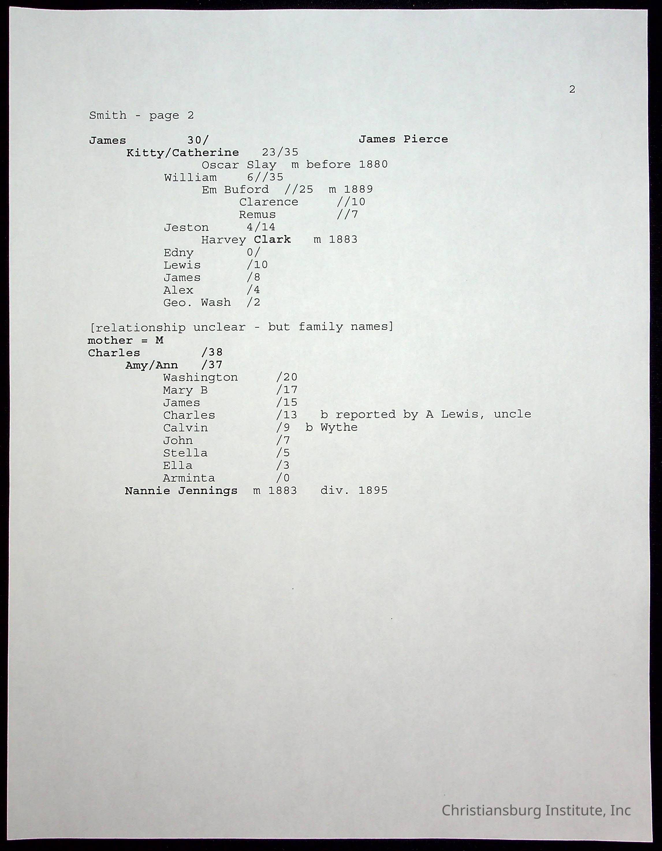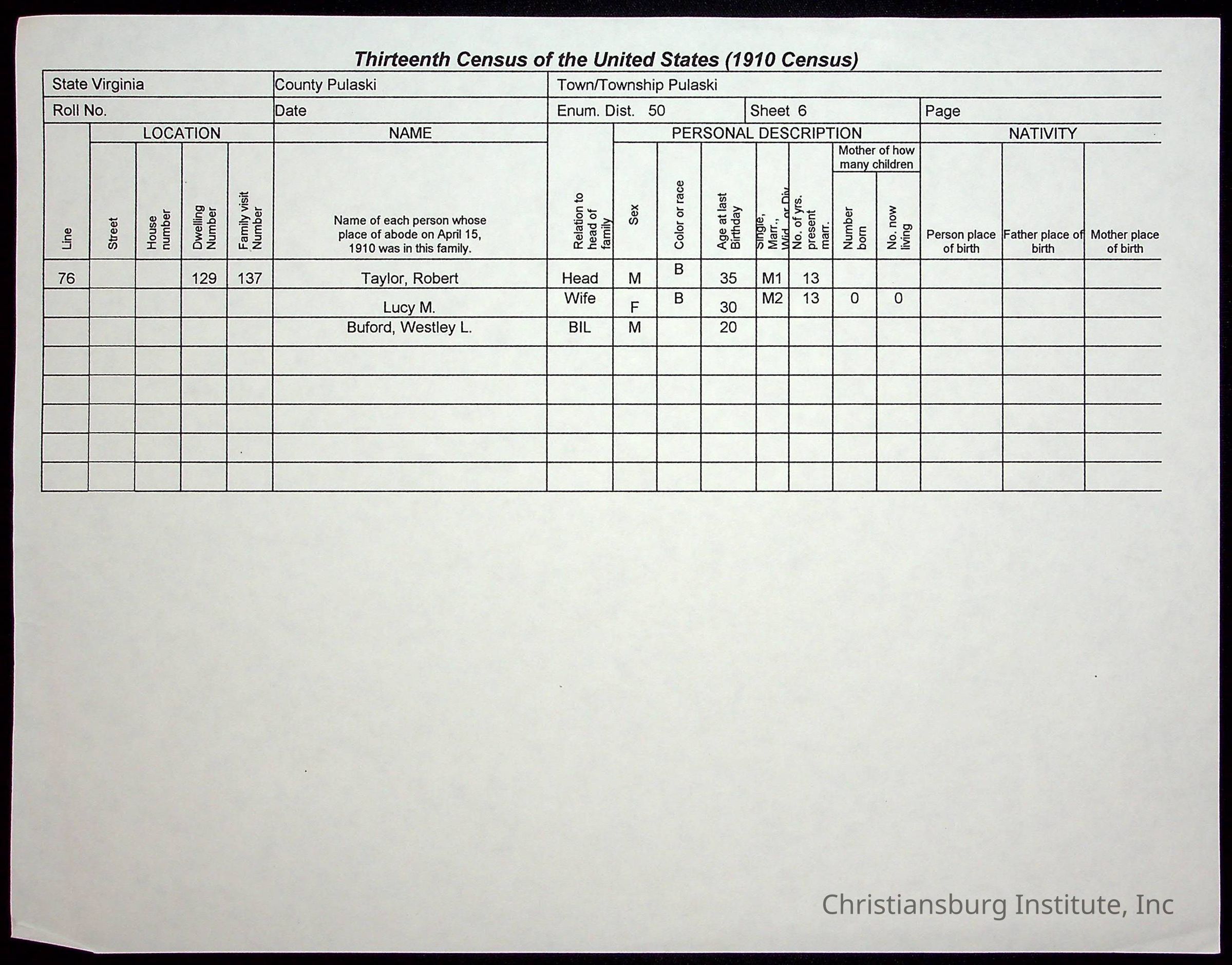 A folder of research materials collected by Radford University professor, Dr Linda Killen. This folder is titled 'R & S & T' and includes Killen's research on the R, S, and T families names of Pulaski County, Virginia. This folder includes genealogy records, marriage licenses, photographs, and census records. Please note: some of the documents have been damaged due to fire.