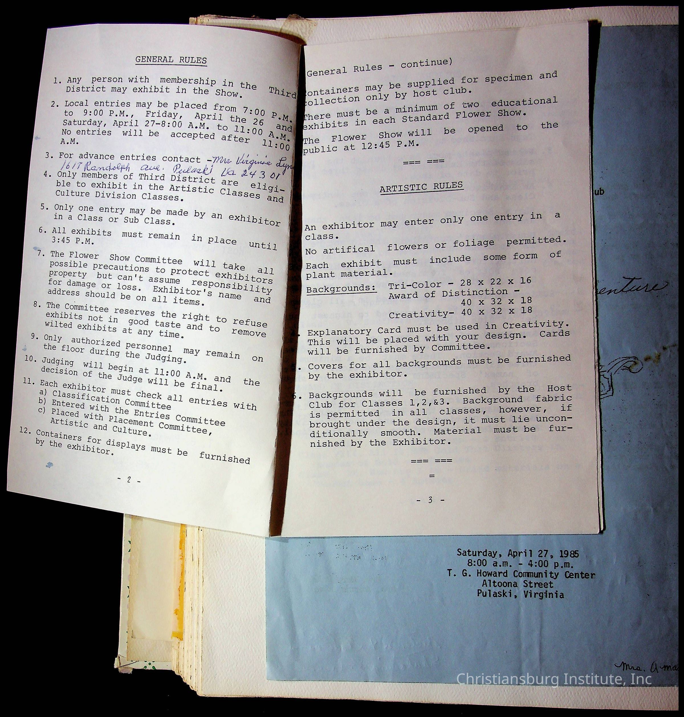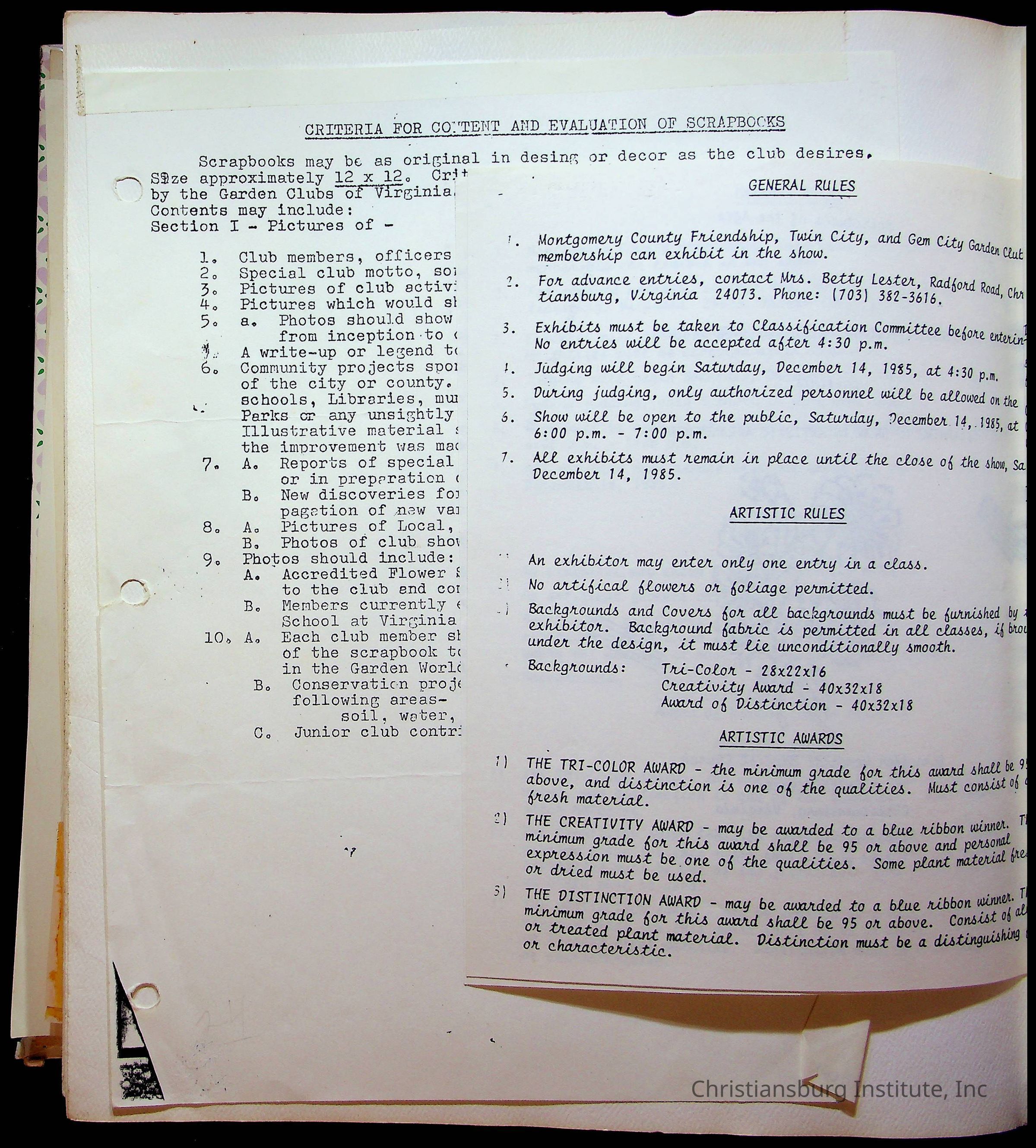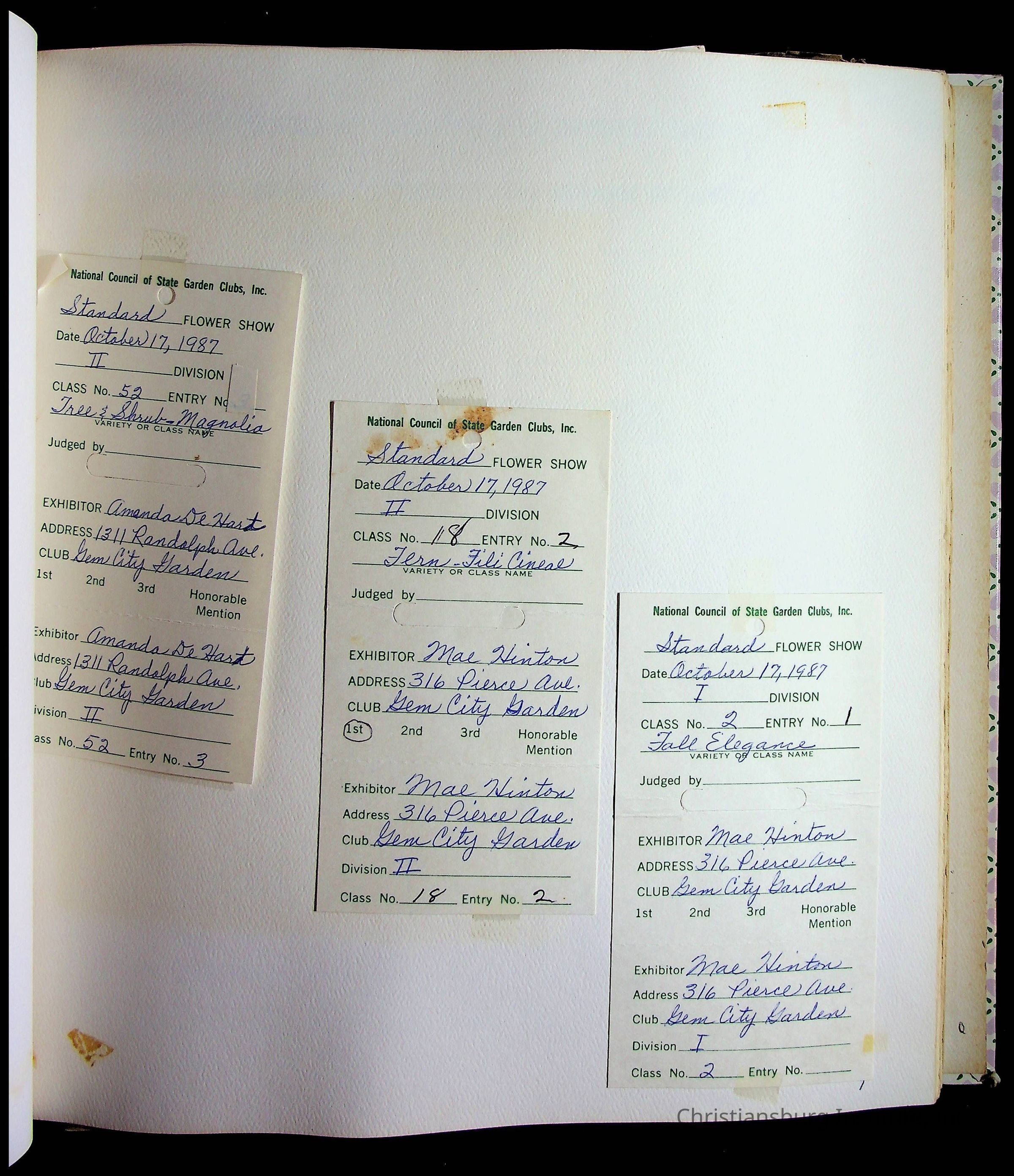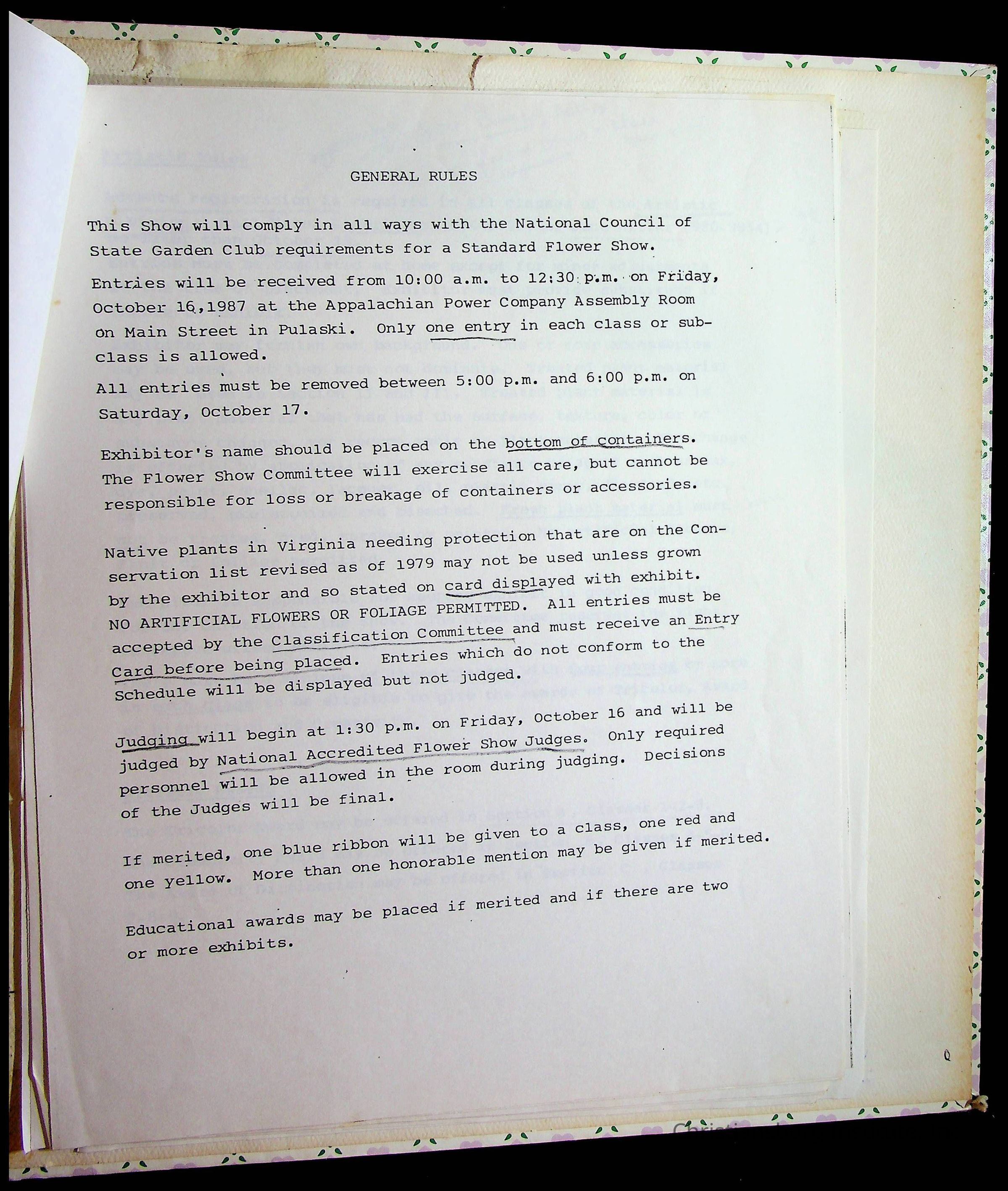 A scrapbook compiled by Amanda DeHart for the Gem City Garden Club of Pulaski, Virginia dated 1985-1989.