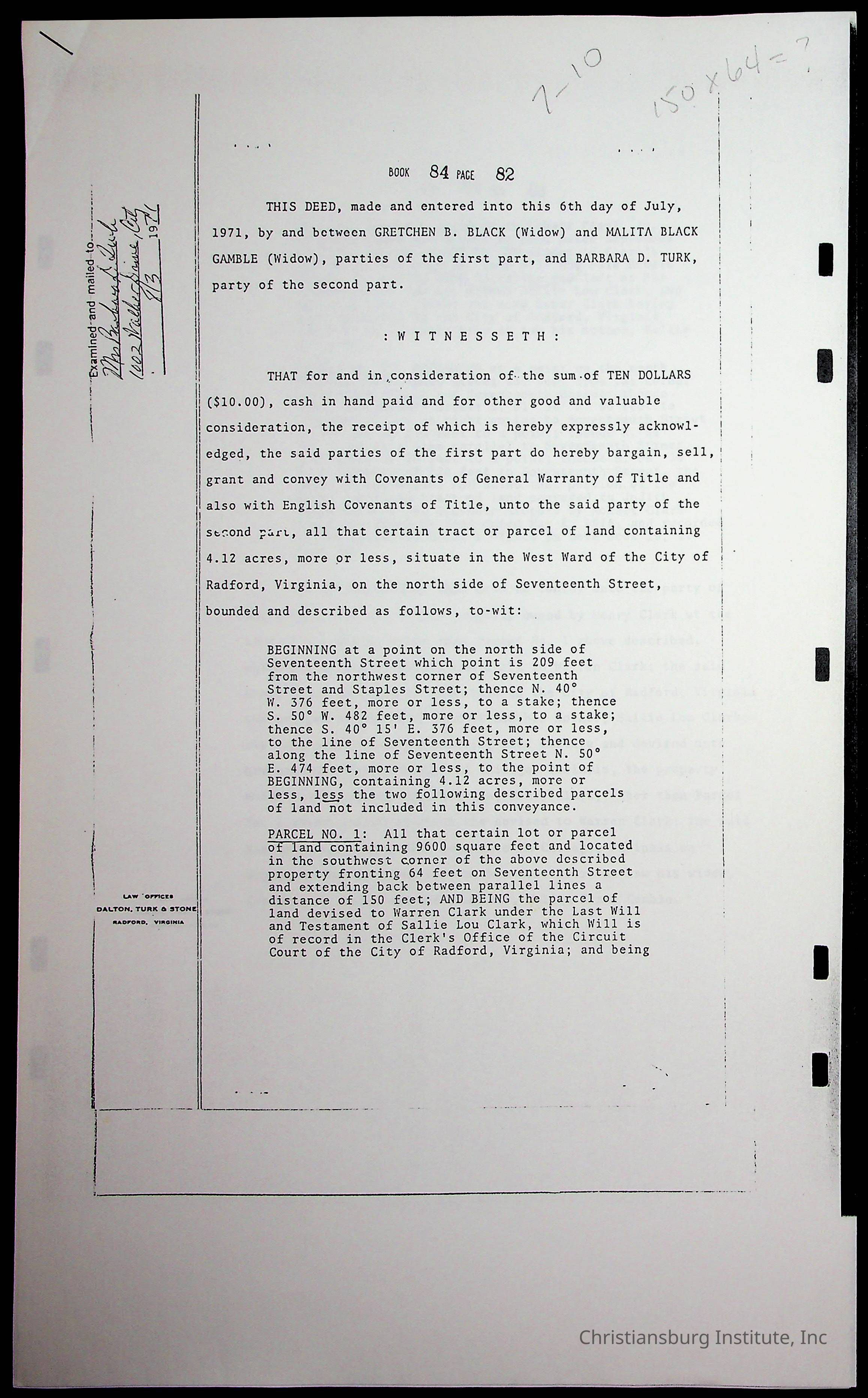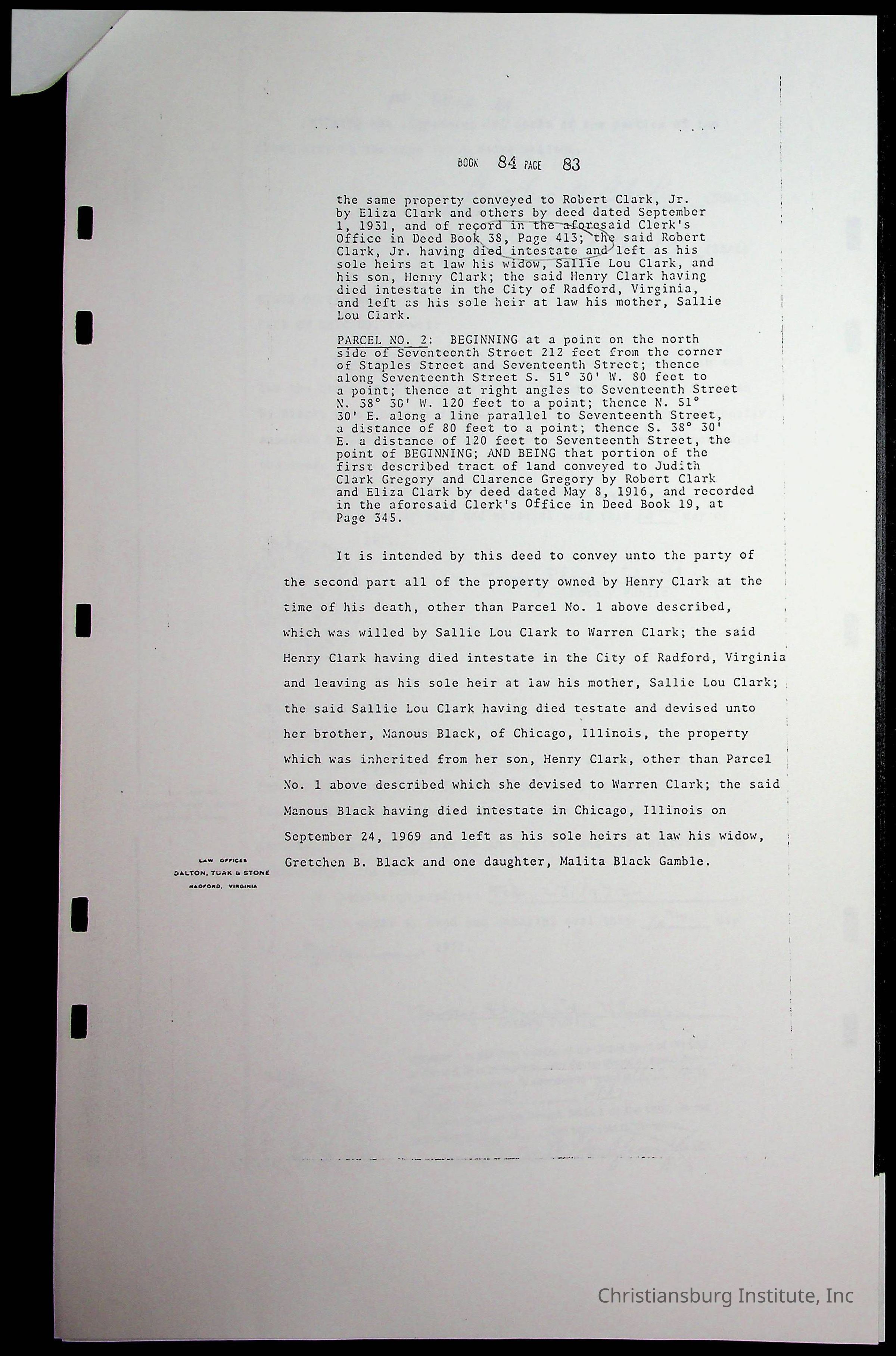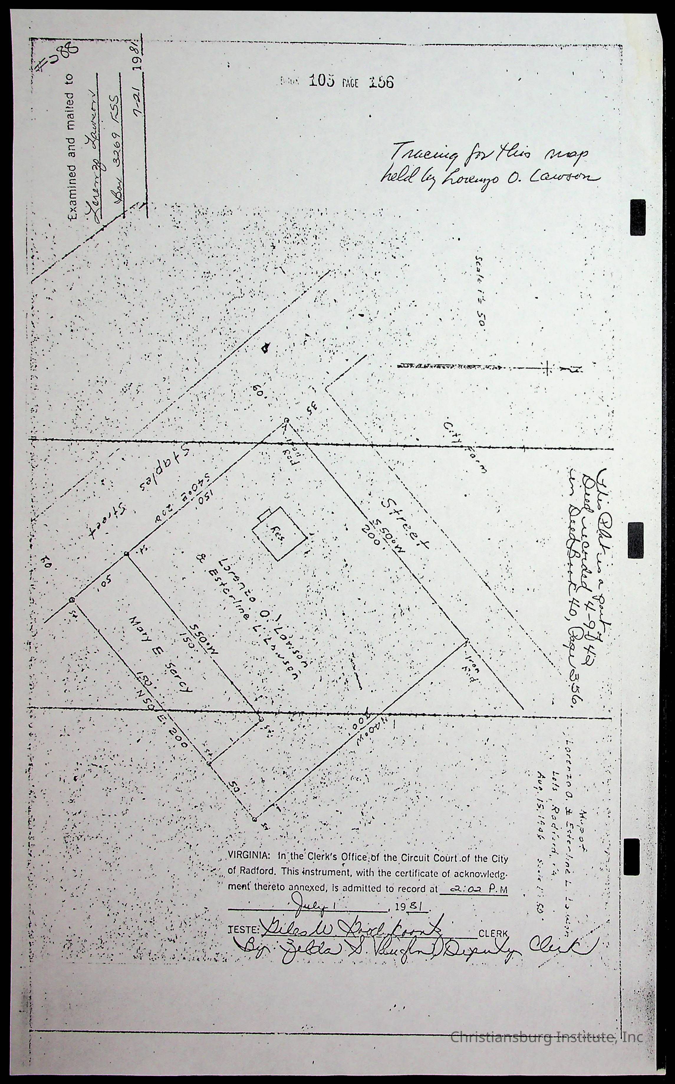 A folder of research materials collected by Radford University professor, Dr. Linda Killen. This folder is titled 'Land/Genealogy Research' and includes various research conducted in Radford, Virginia. This folder includes genealogy records, Dr Killen's notes, and plat maps.