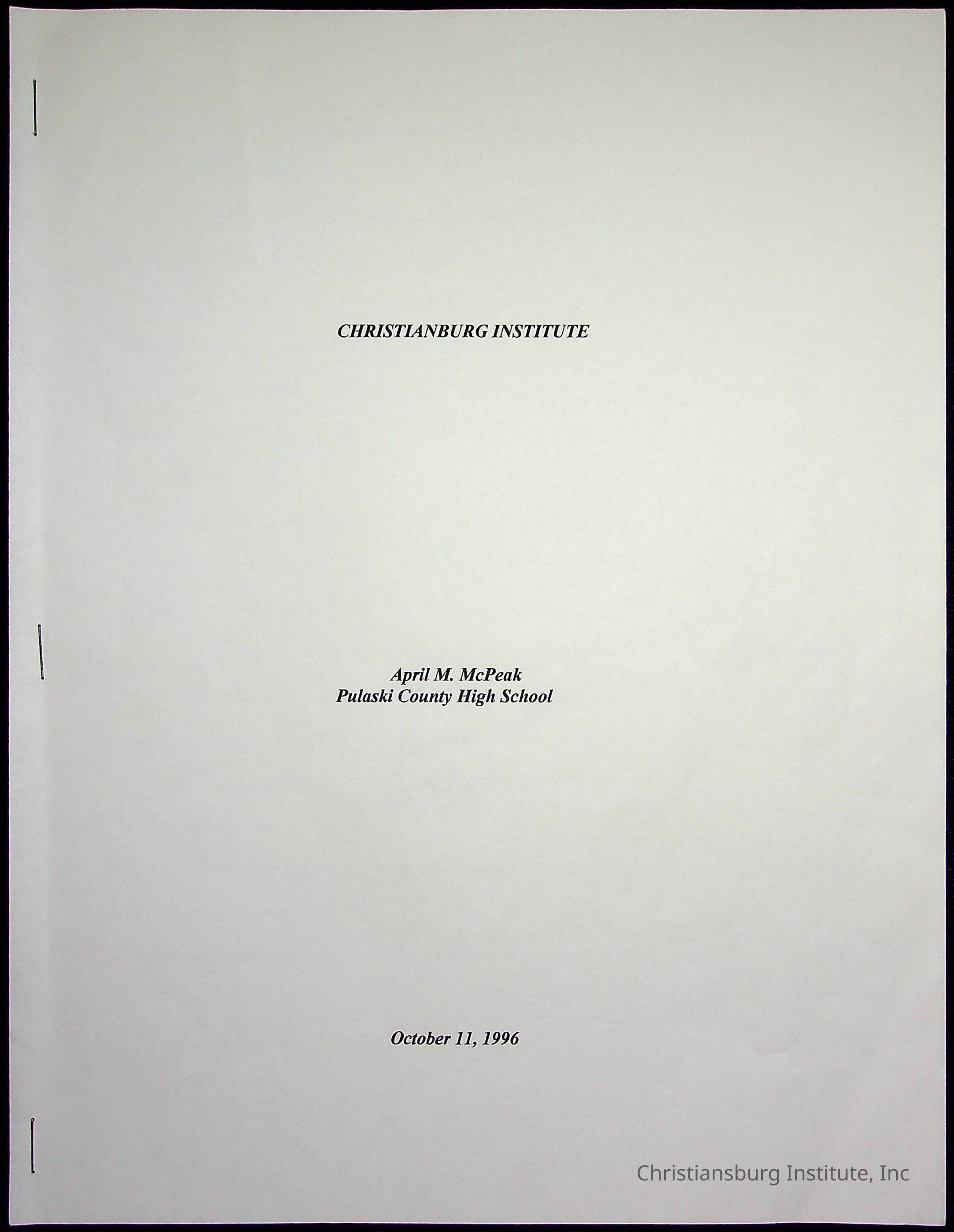 April McPack, "Christiansburg Institute," 1996Scope and Content