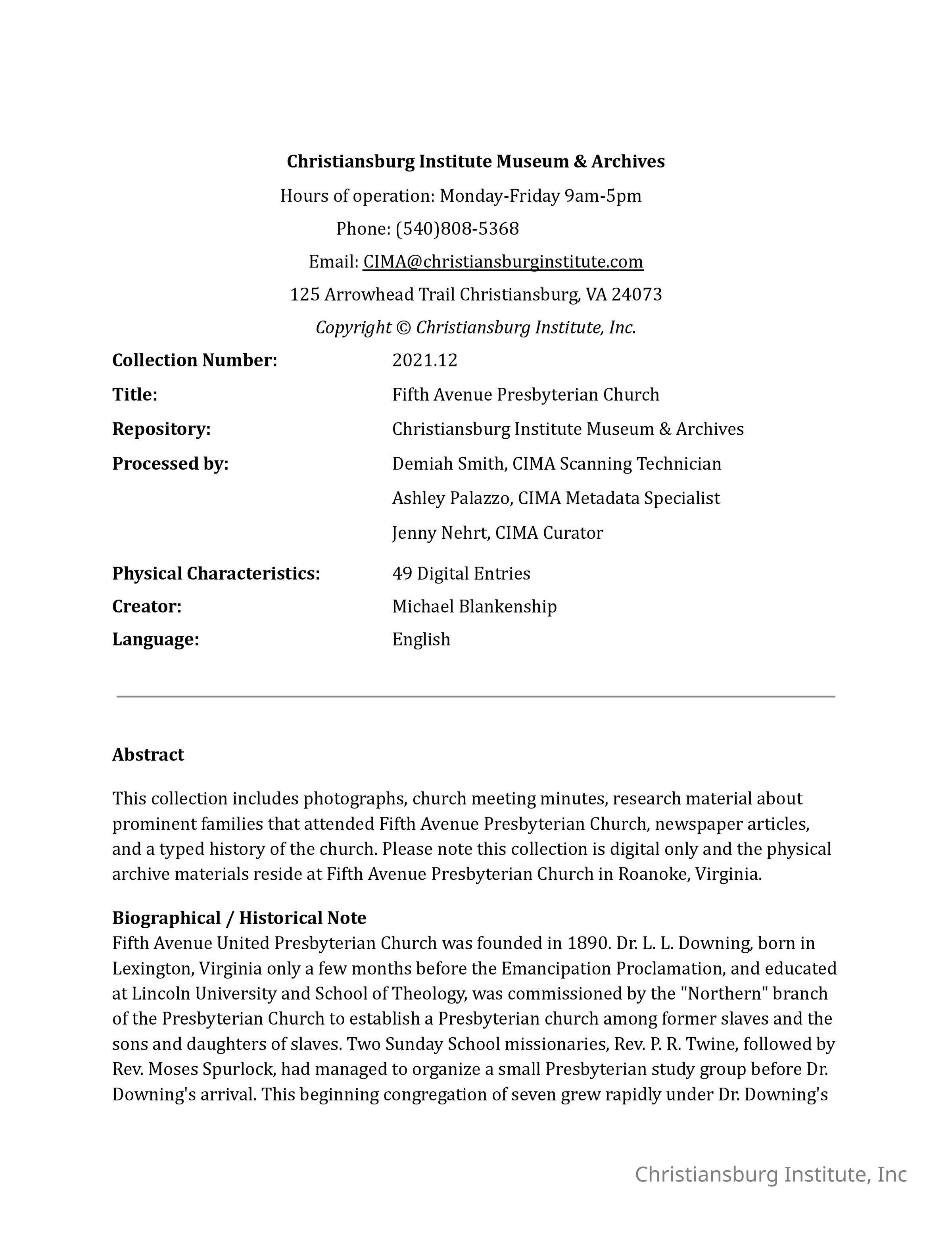 Fifth Avenue Presbyterian Church Collection Finding Aid