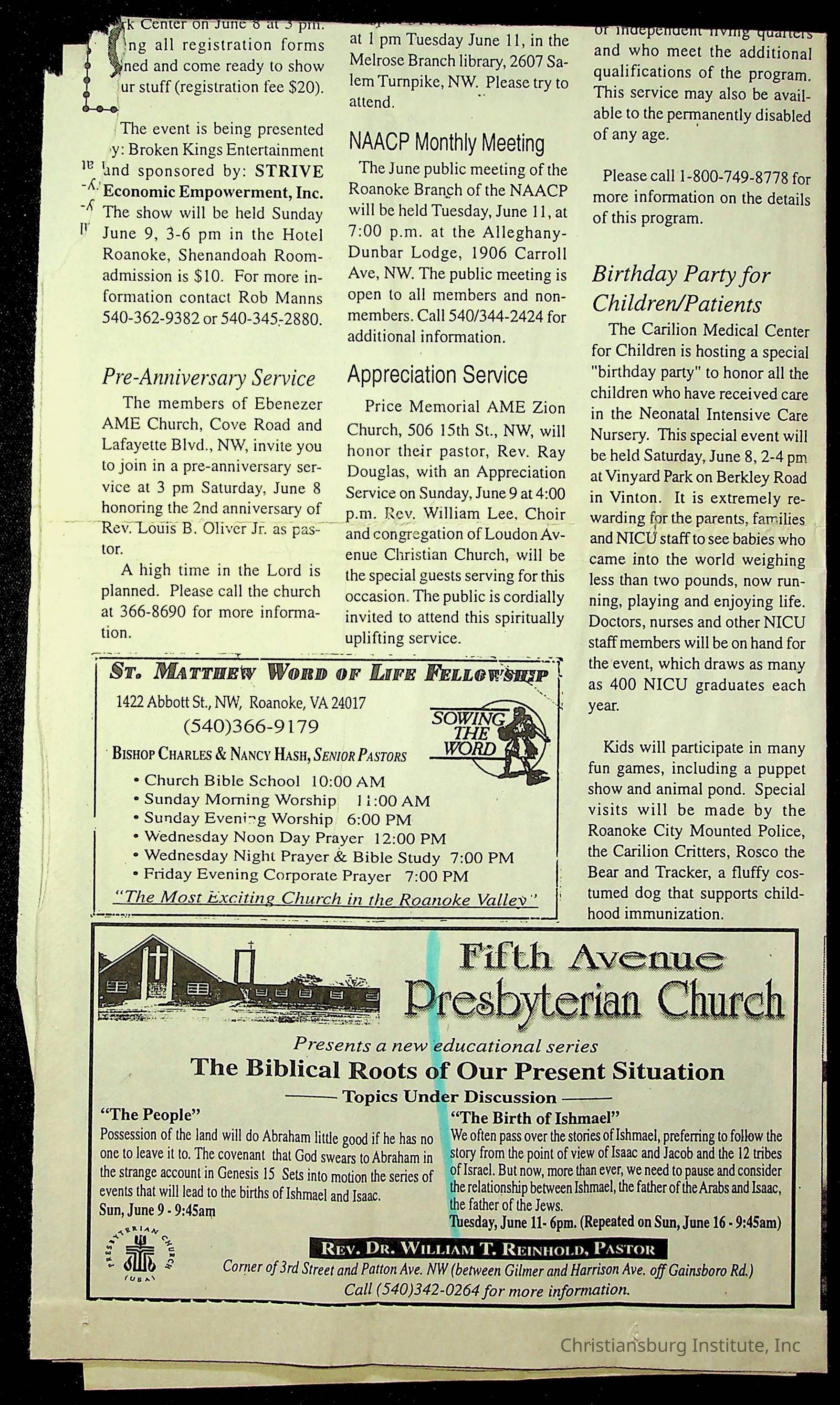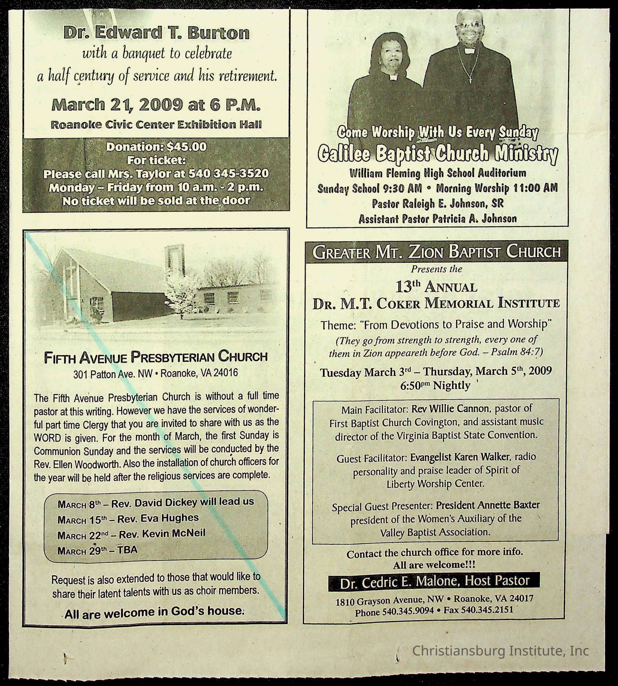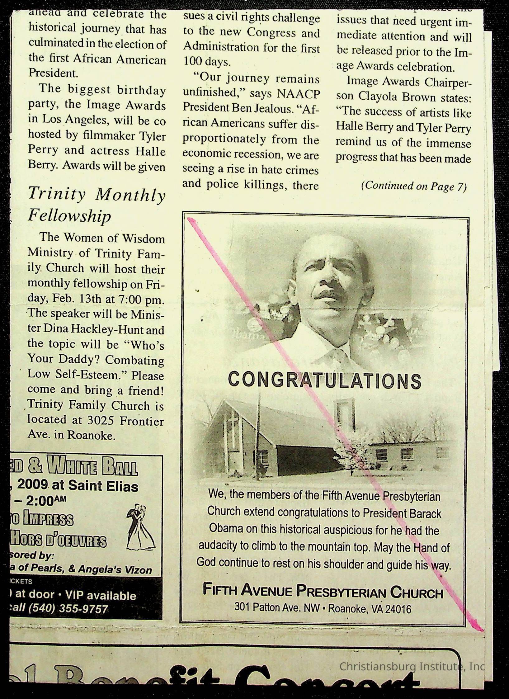 Copyright has been assigned to Christiansburg Institute Museum & Archives by Fifth Avenue Presbyterian Church. For permission to publish materials created by the donor, contact CIMA@christiansburginstitute.com. Materials not created by Fifth Avenue Presbyterian Church may still be under copyright.