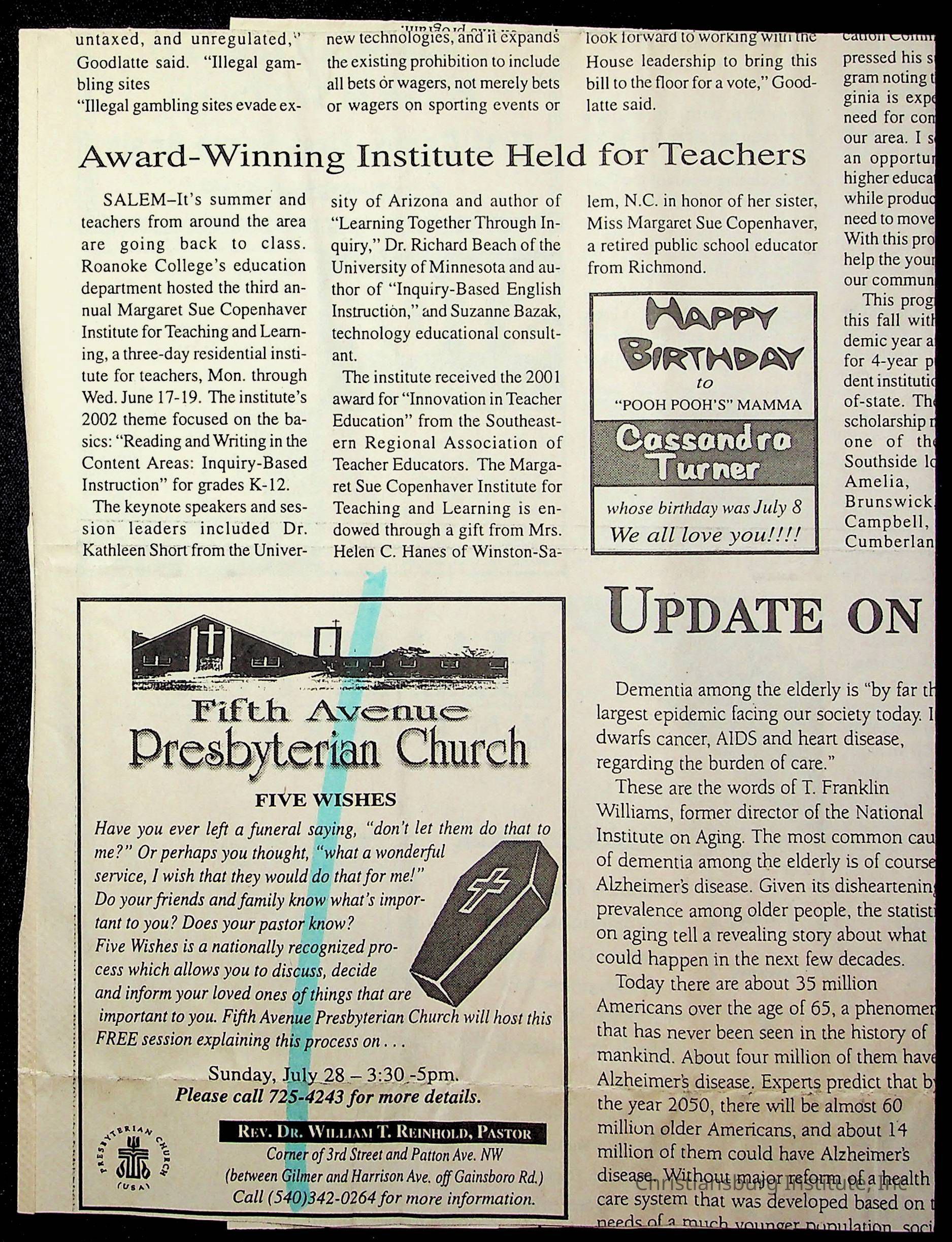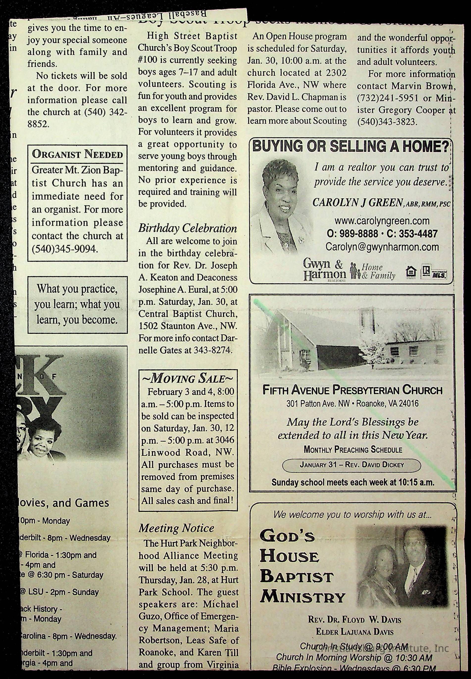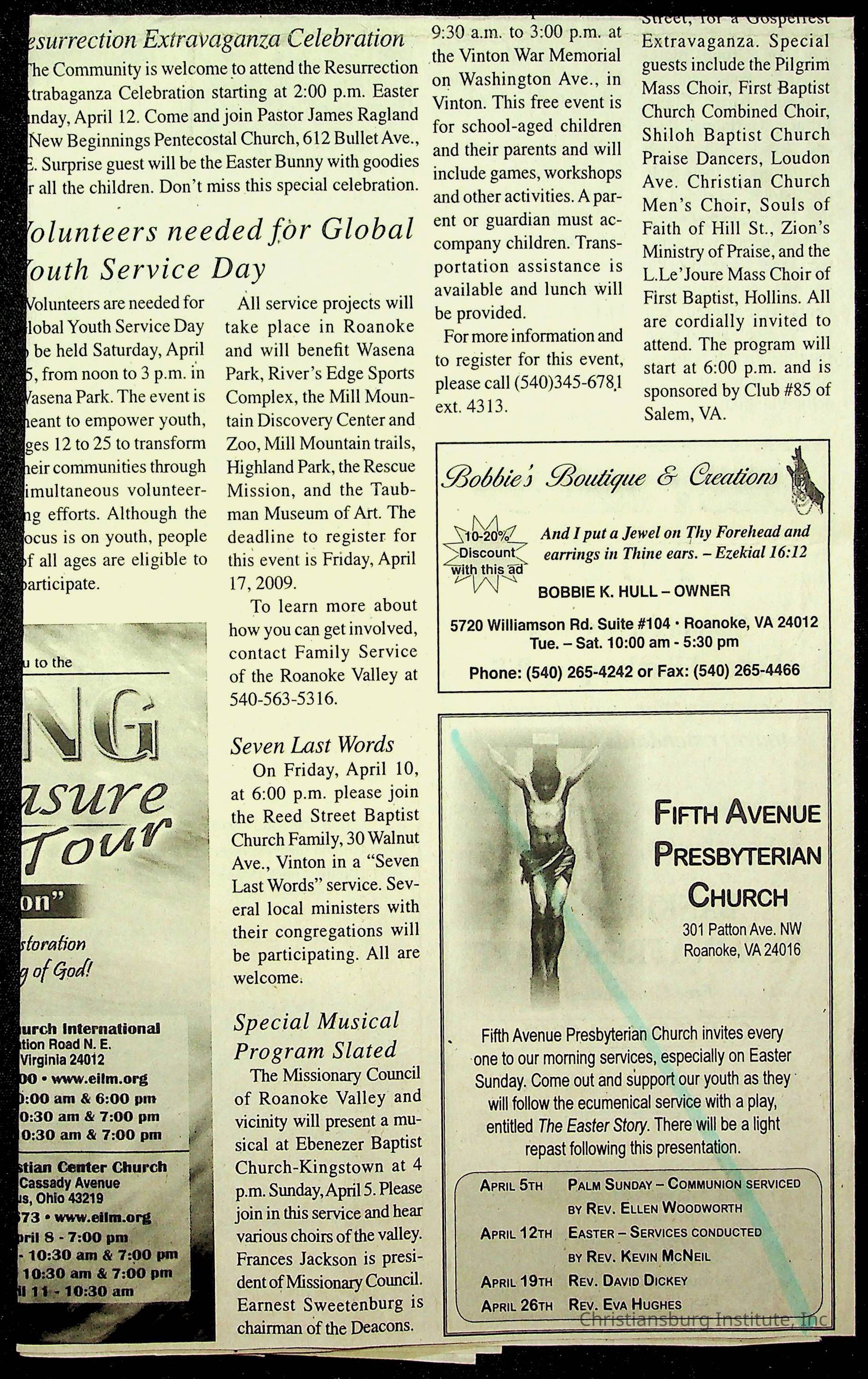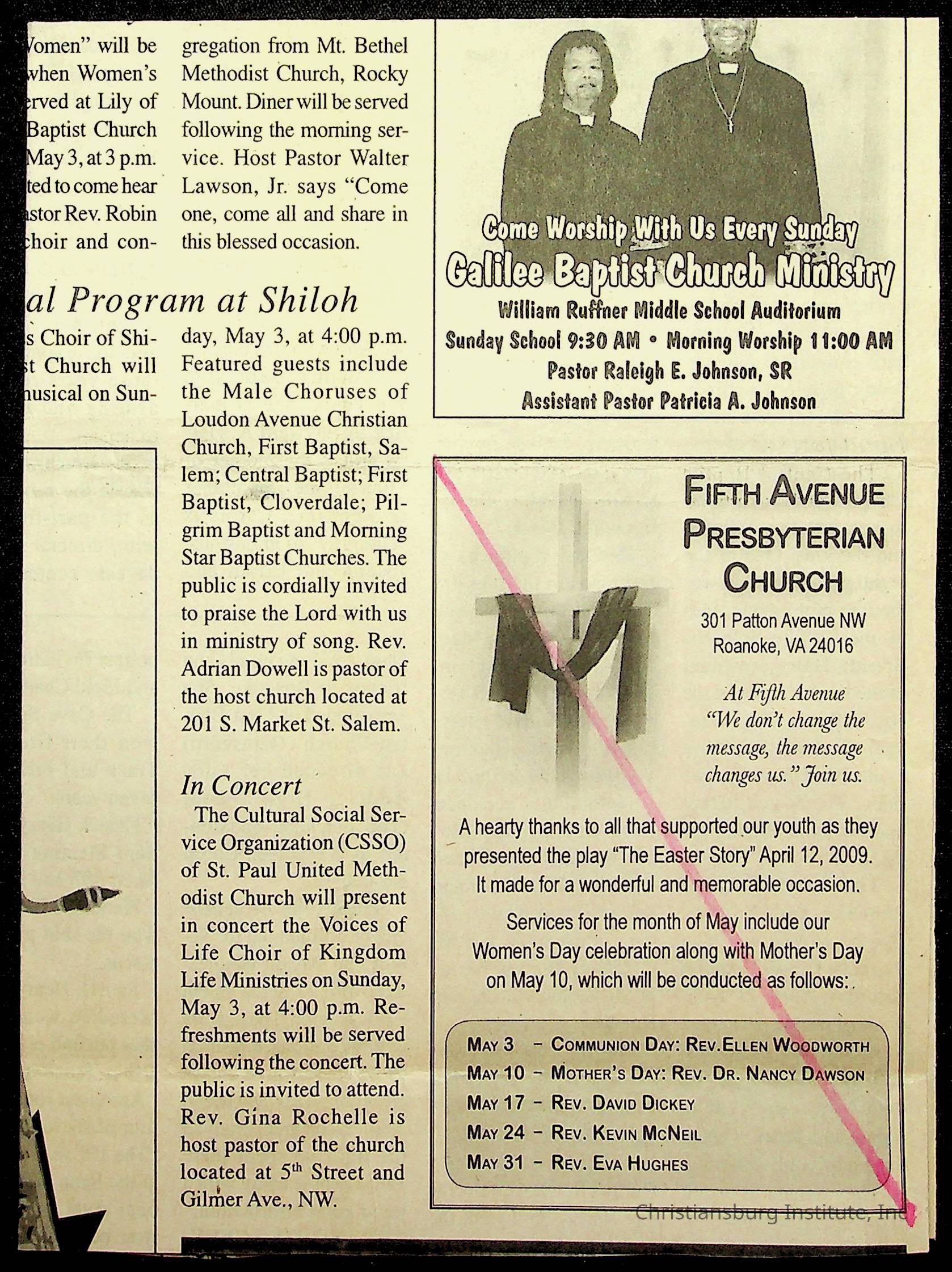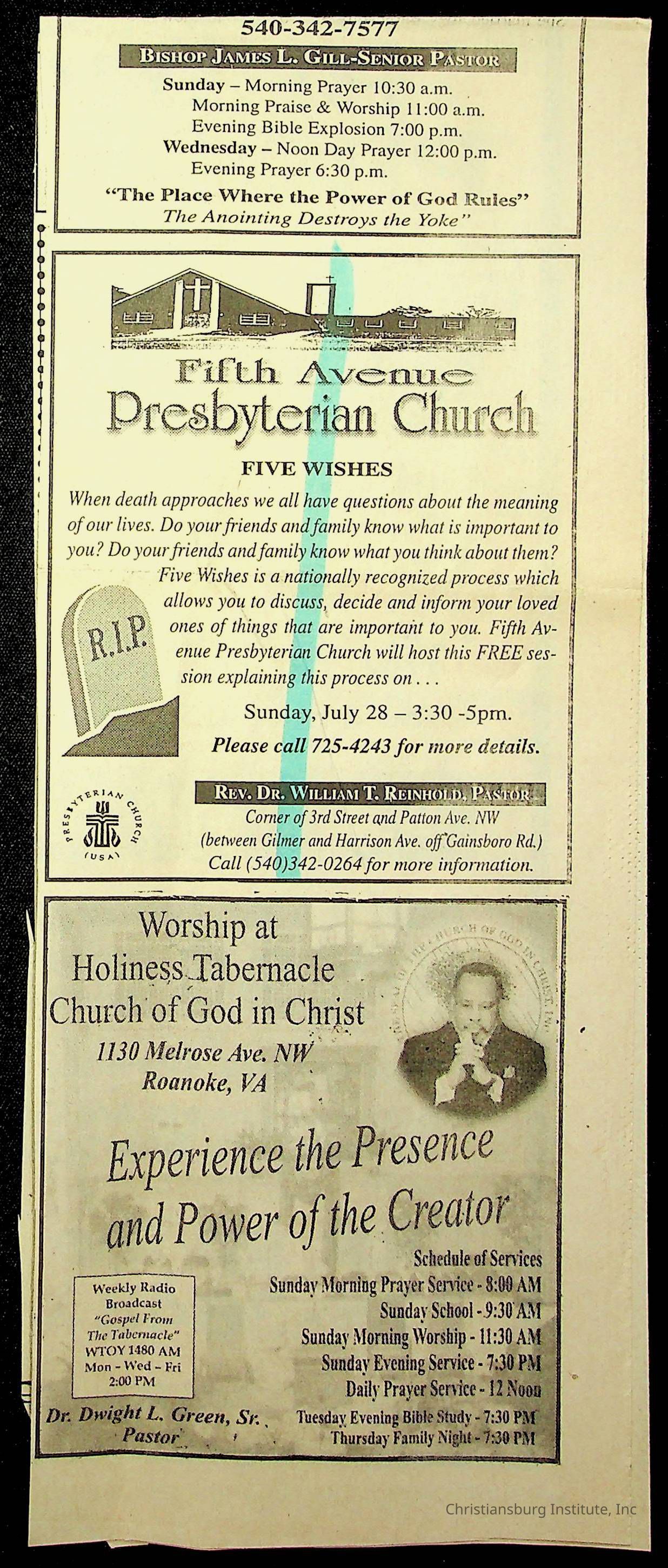 A small archive of newspaper clippings that feature an advertisement for Fifth Avenue Presbyterian Church.Collection