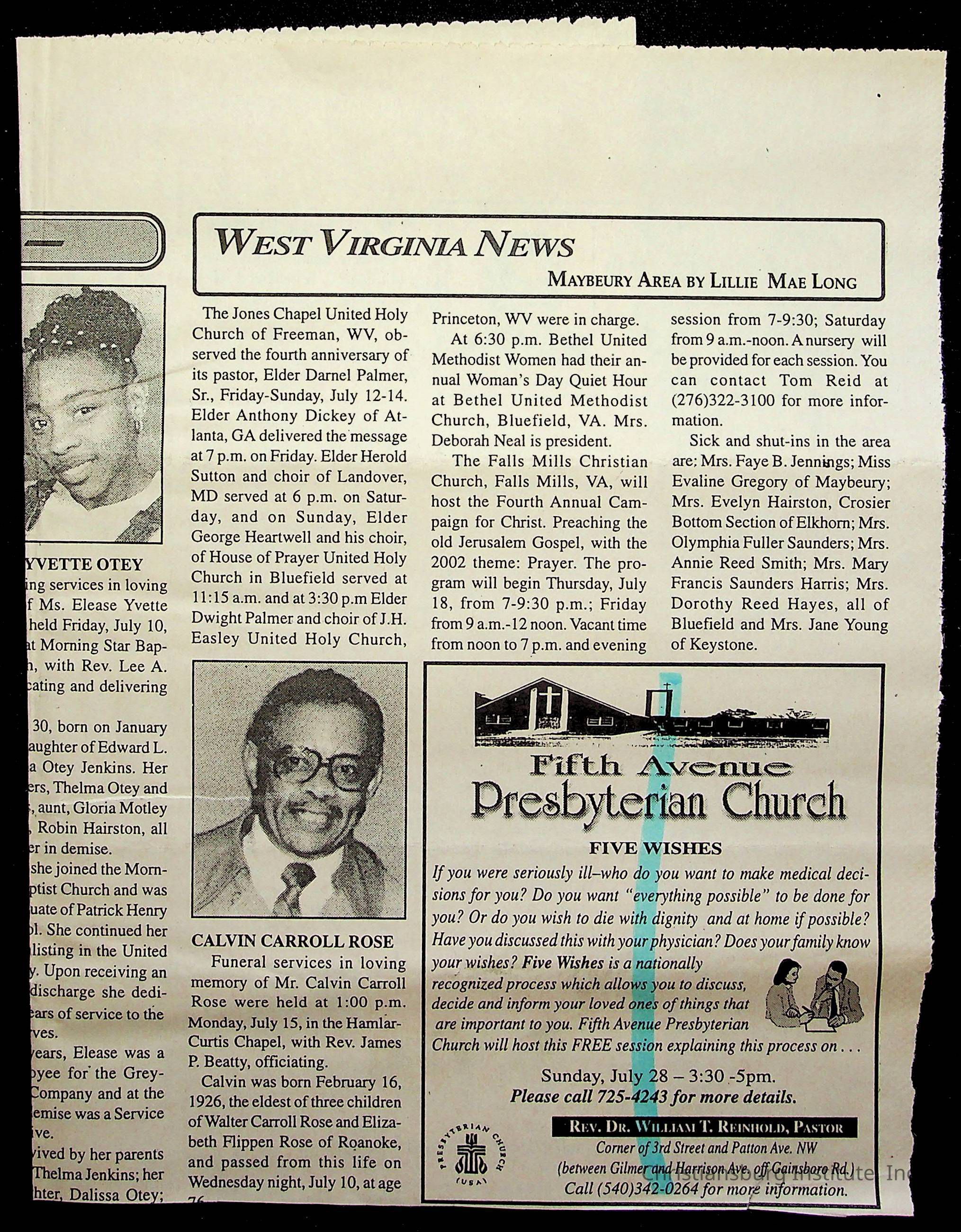 Fifth Avenue Presbyterian Church Newspaper ClippingsScope and Content