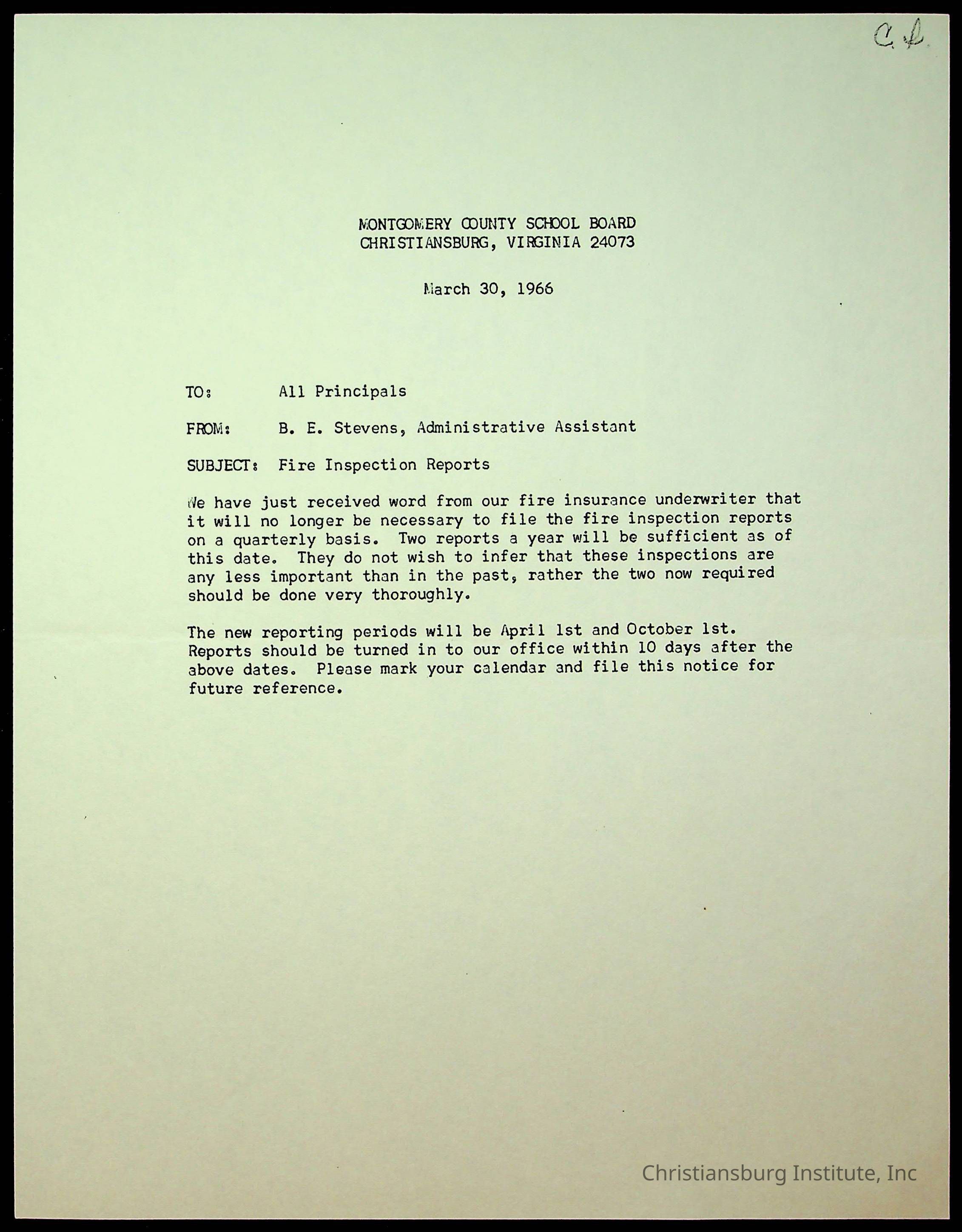 Copyright has been assigned to Christiansburg Institute Museum & Archives by Montgomery County Public Schools. For permission to publish materials created by the donor, contact CIMA@christiansburginstitute.com. Materials not created by Christiansburg Industrial Institute may still be under copyright.
